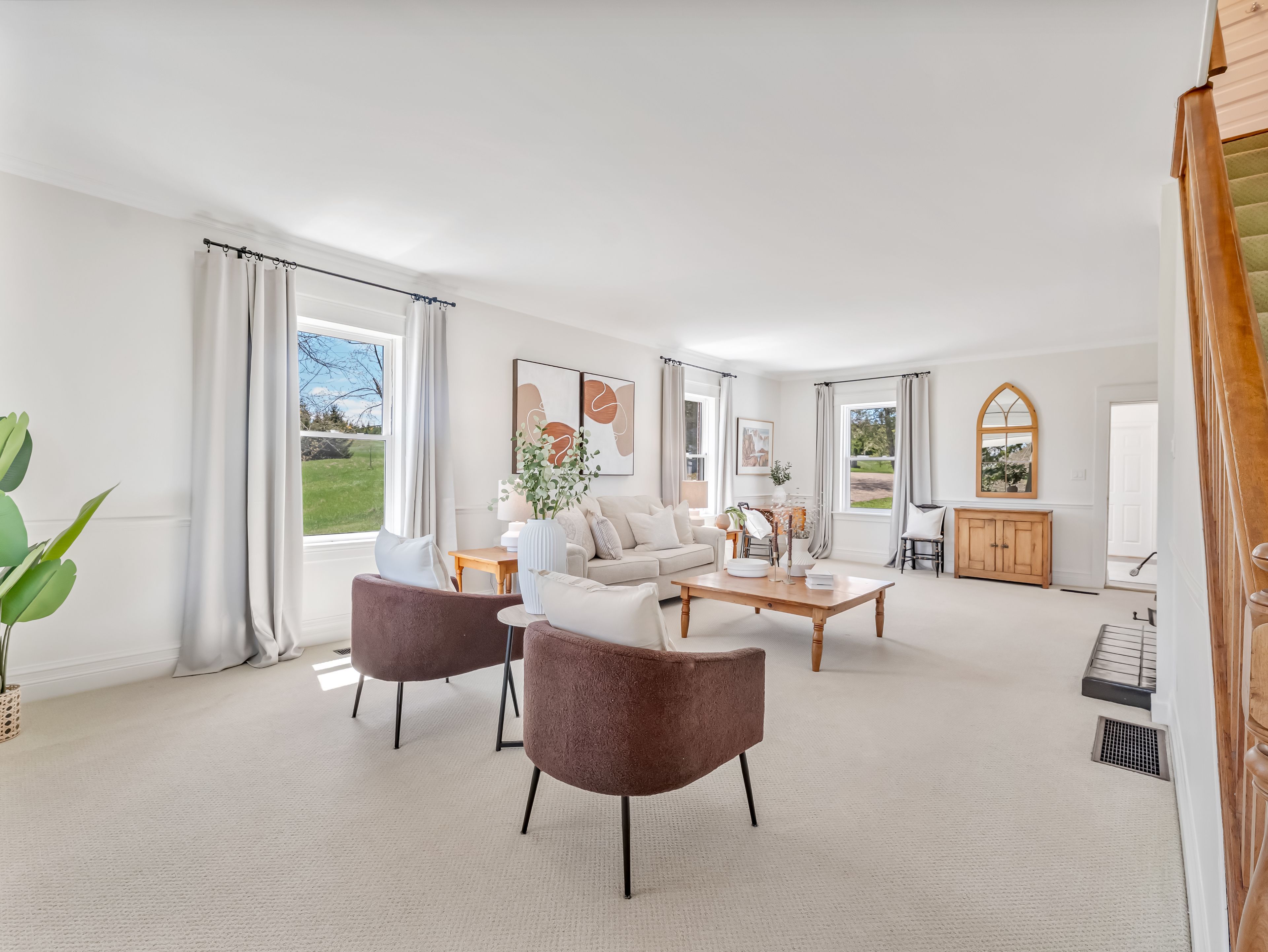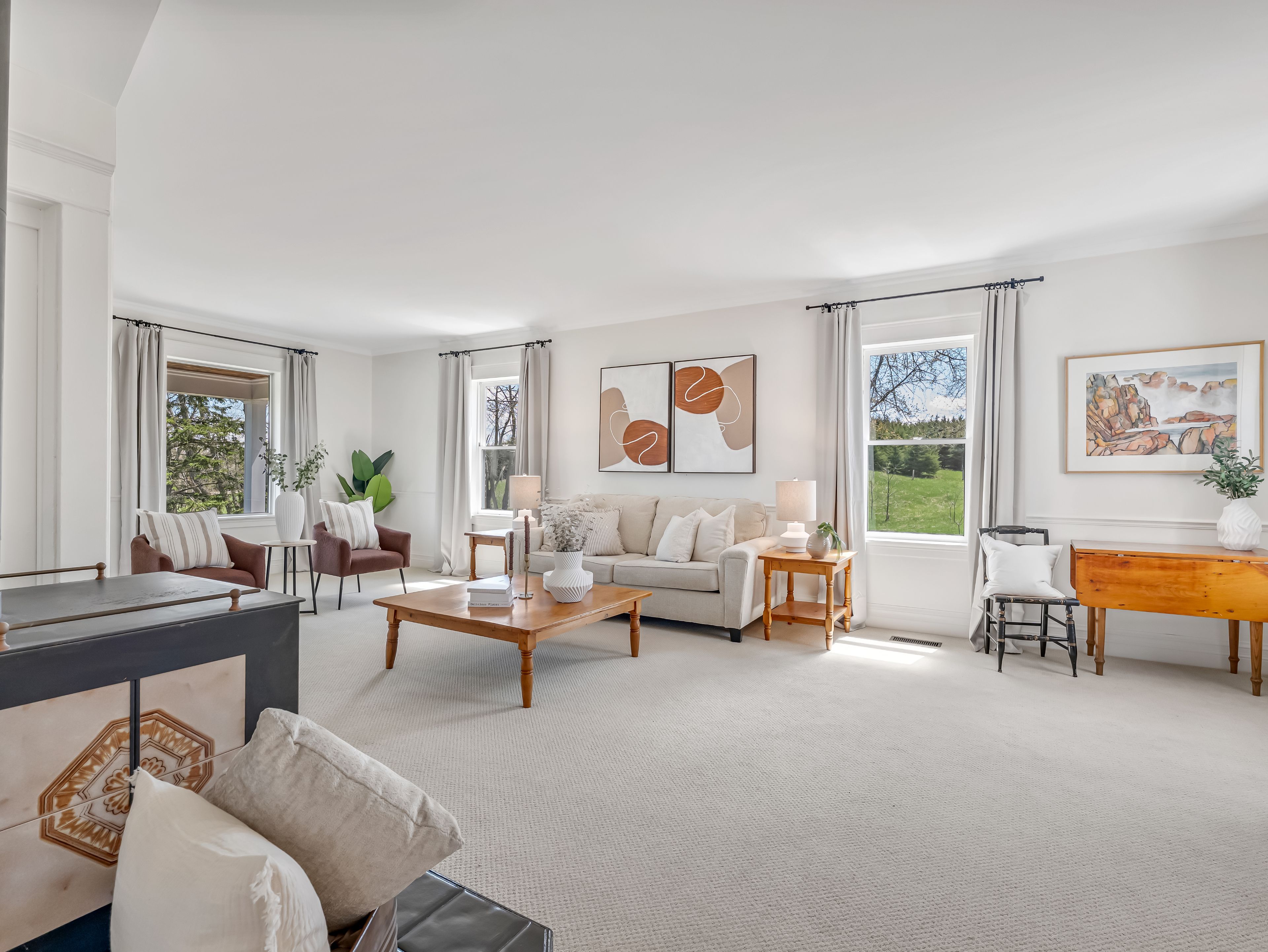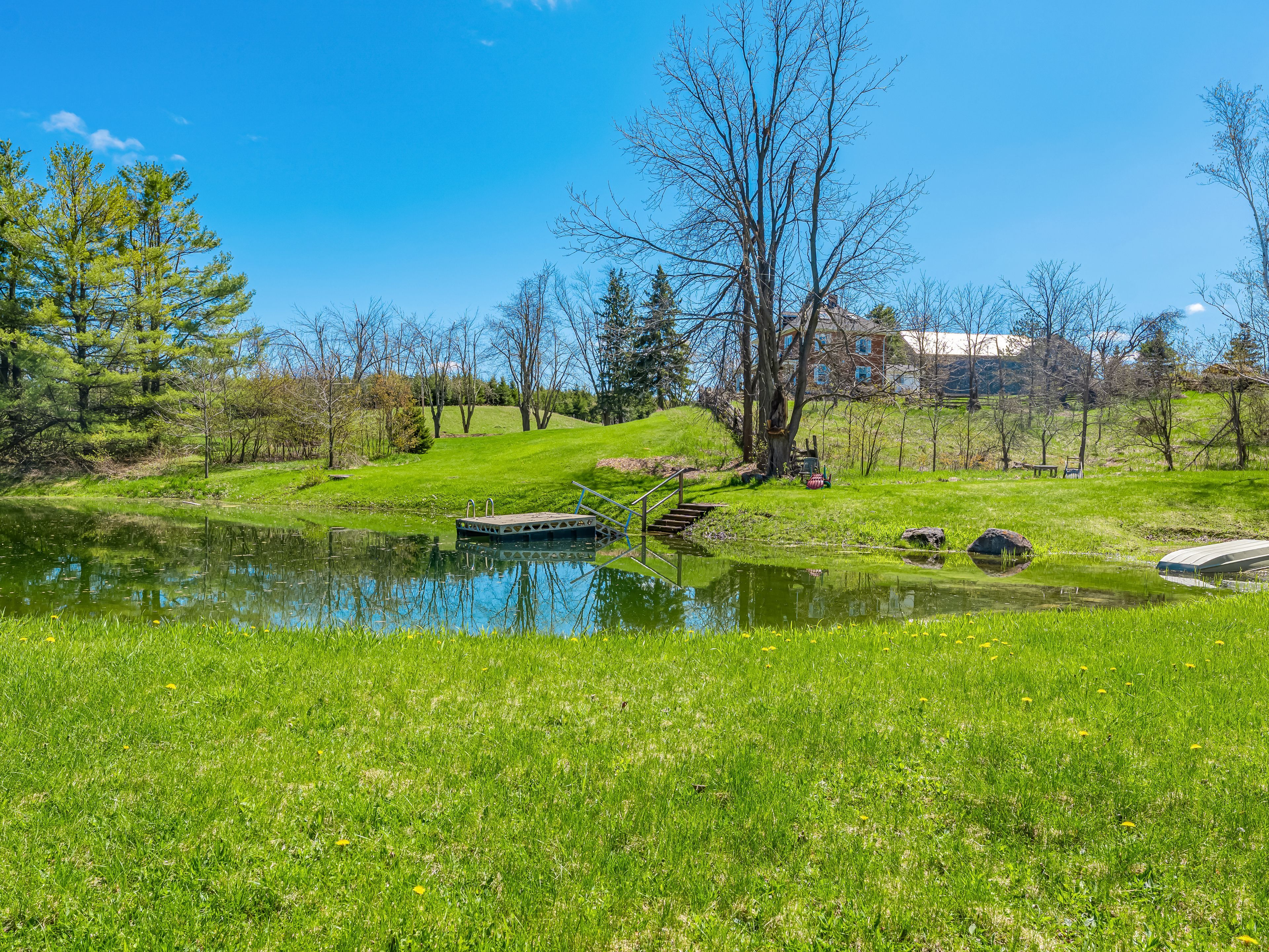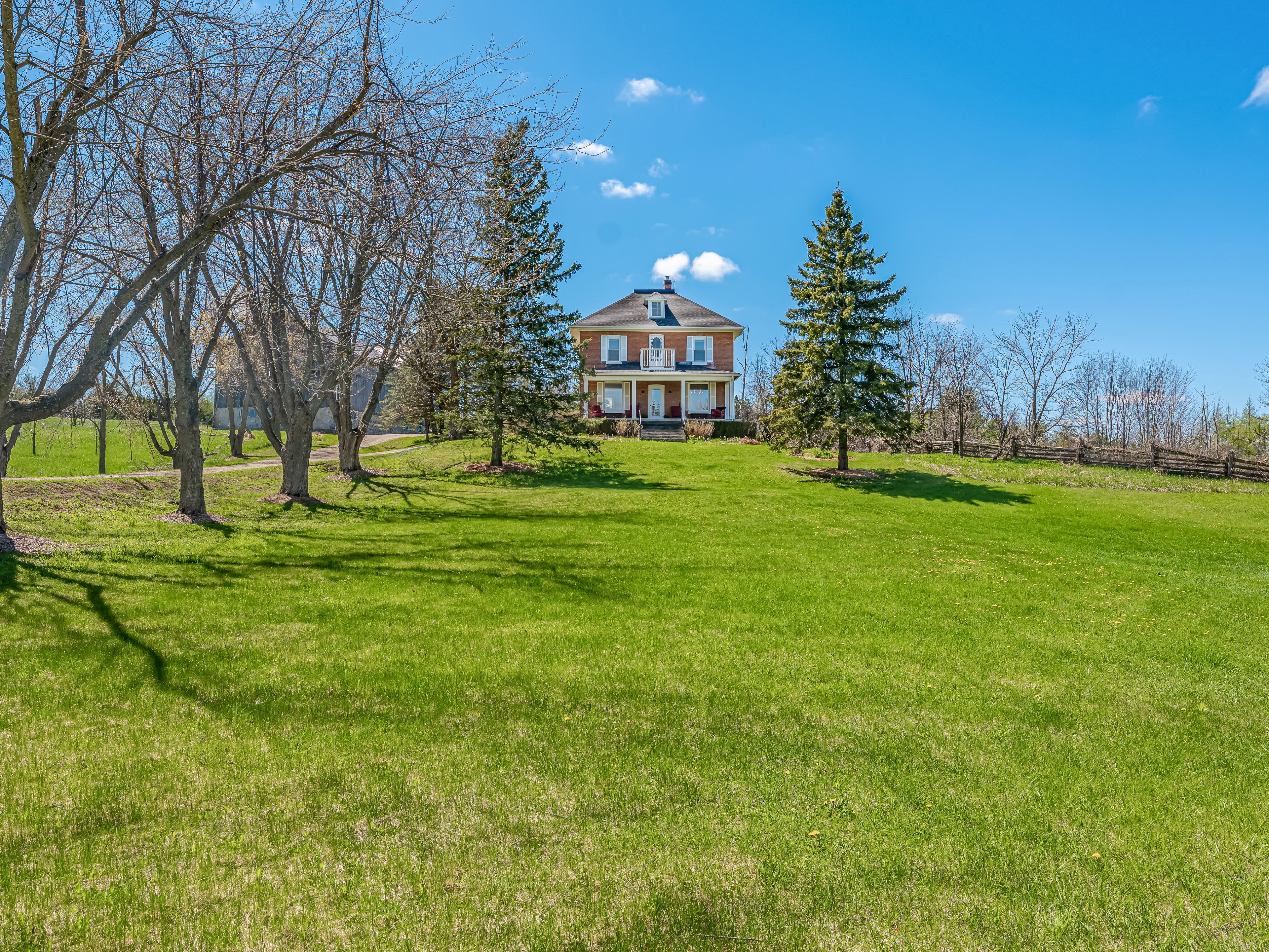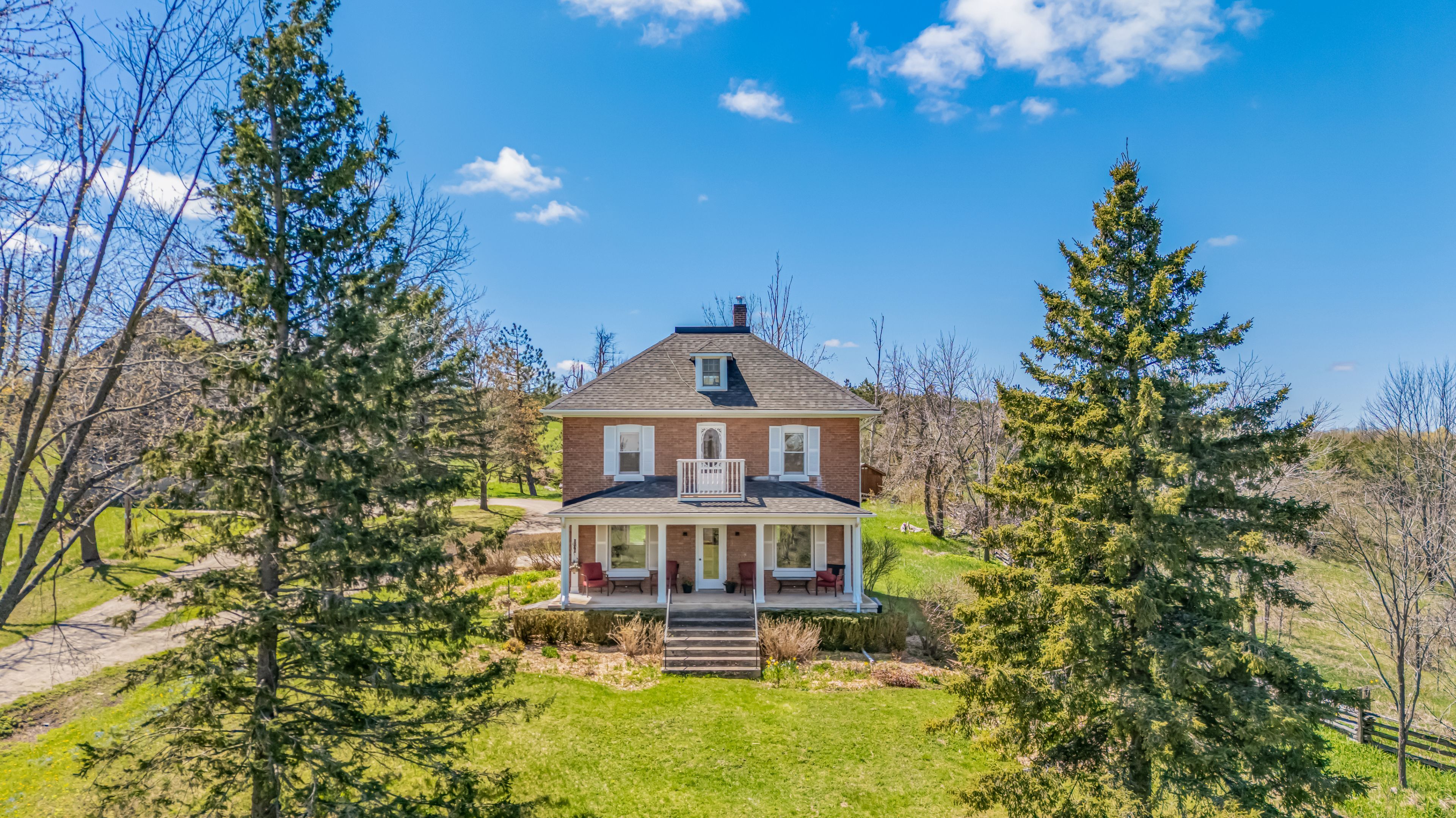 Escape to the rolling hills of mulmur and discover this beautifully preserved three-storey brick farmhouse set on 88 acres of pristine countryside and wonderful private walking trails through pastures and forests. Rich in character and lovingly maintained, the home exudes warmth and timeless charm offering a rare opportunity to embrace the very best of country living. Enter through the welcoming front veranda or opt for the side foyer with direct access from the driveway. The main floor is filled with natural light and features a spacious living room with original wood trim and a cozy wood-burning fireplace, a formal dining room with hardwood floors and tranquil pond views, and an upgraded kitchen with stainless steel appliances. A powder room, full four-piece bath, and laundry room add comfort and convenience. Upstairs, four bright bedrooms share another four-piece bath. The third floor unveils a sunlit open loft with cathedral ceiling, its own bathroom, and endless versatility ideal as a fifth bedroom, home office, art studio, or serene yoga retreat. The natural surroundings are truly exceptional, with sweeping vistas, a spring-fed pond ideal for swimming, and private trails winding through mature forests. Approximately 50,000 trees have been thoughtfully planted, enhancing the property's privacy and year-round appeal. Outdoor highlights include a large classic bank barn, tennis court, and ample open space for recreation or relaxation. A long driveway leads to a circular drive with parking for 15+ vehicles perfect for hosting gatherings. Tucked away on a quiet country road with breathtaking views and unmatched seclusion, this exceptional property is just minutes from mansfield ski club, mono cliffs provincial park, the bruce trail, 20 minutes to mad river golf, devil's glen ski and the charming village of creemore.