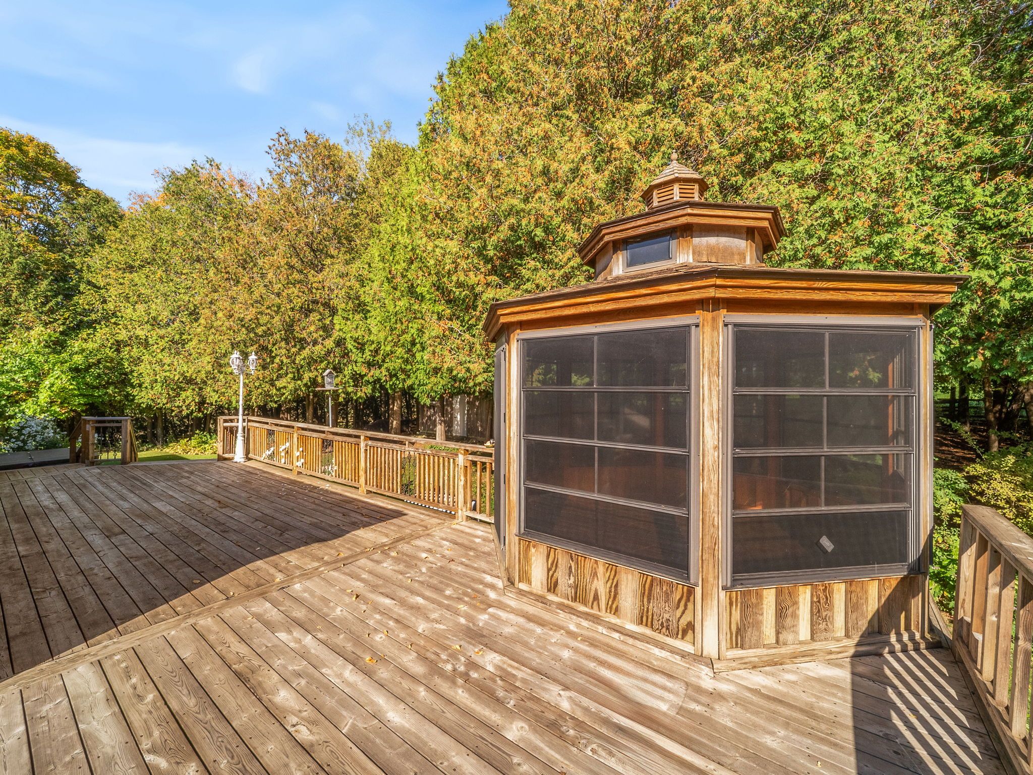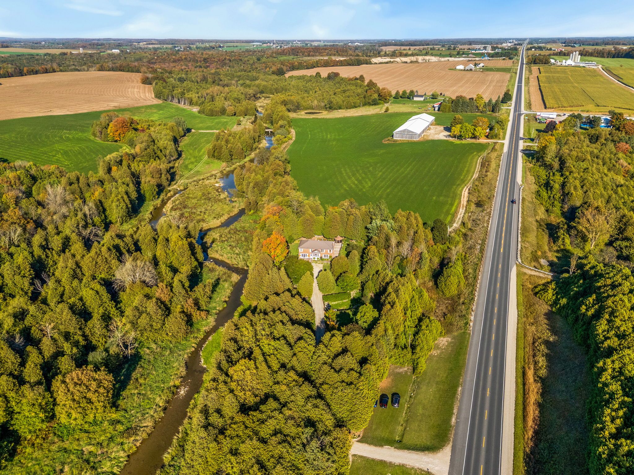 Your countryside sanctuary awaits. Nestled on 3. 5 acres along the saugeen river, this mount forest estate is where tranquility meets possibility. Surrounded by mature trees, open skies, and manicured gardens, the home offers a retreat from the city while remaining just minutes from local amenities. The first floor features three generous bedrooms and a sunlit living area that flows seamlessly into a fully equipped modern kitchen with a walkout to the deck - perfect for morning coffees, bird-watching, and summer barbecues. Downstairs, you'll find a bright family room anchored by a cozy propane fireplace, a luxurious ground-floor sauna with dual shower heads, and an additional bedroom that works beautifully as a home office, guest suite, or rental opportunity. A cold cellar provides additional storage for your canned goods, jams and preserves that you've likely bought from a mennonite farm. The property's outdoor spaces are equally inviting. A sprawling deck with a gazebo and hot tub overlooks the landscaped yard, offering plenty of room to relax or entertain. The heated workshop is ideal for hobbies or storage, and there is a small garden shed that was once a charming doll house. Located just five minutes from mount forest's main street, the town centre, retail stores, restaurants, and the local hospital, this home blends peaceful country living with everyday convenience. Here, life moves a little slower, feels a little lighter, and truly lives up to mount forest's old motto: high, happy, and healthy.