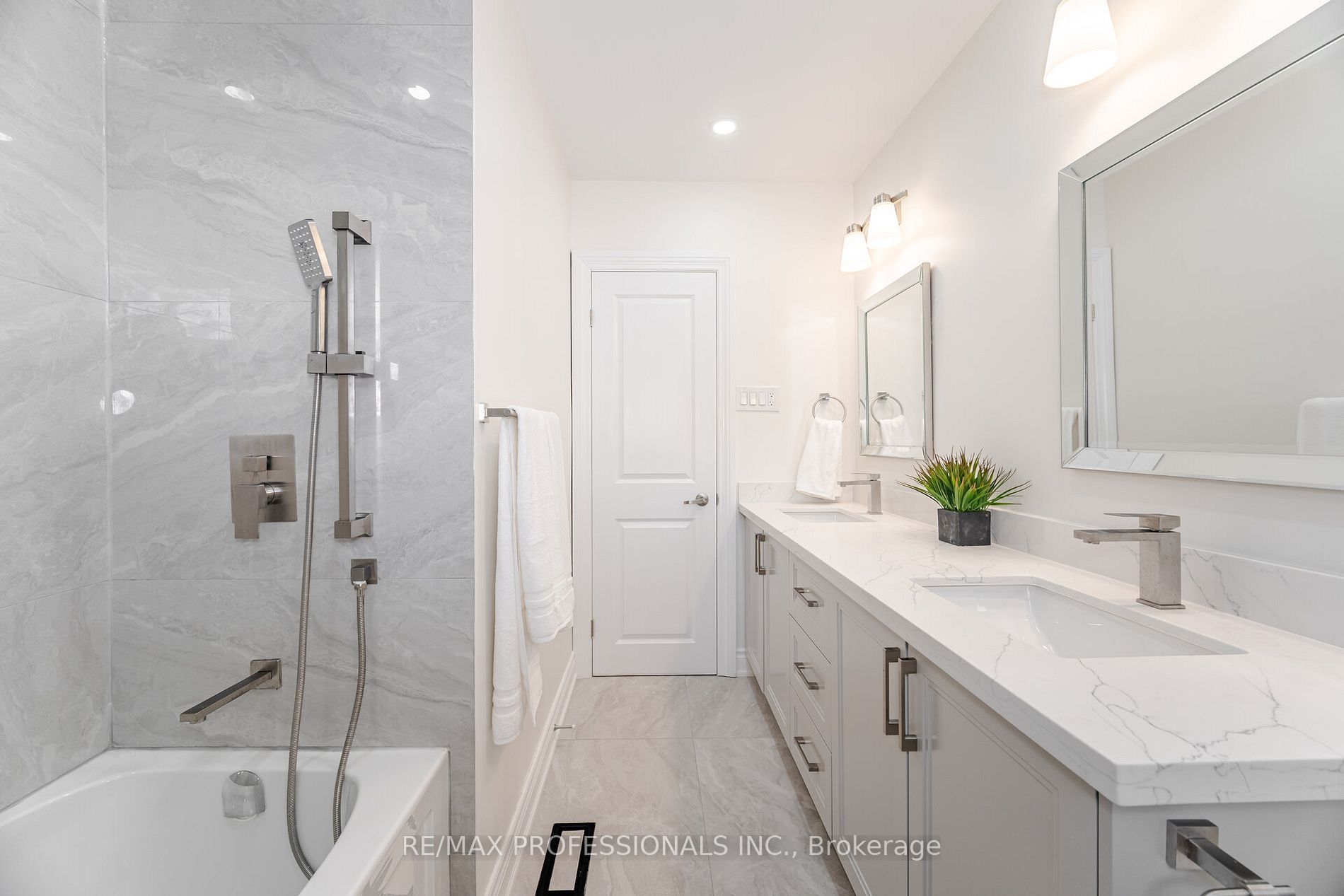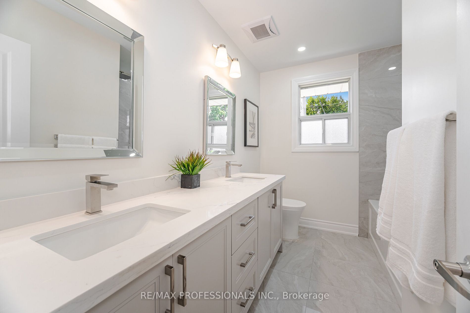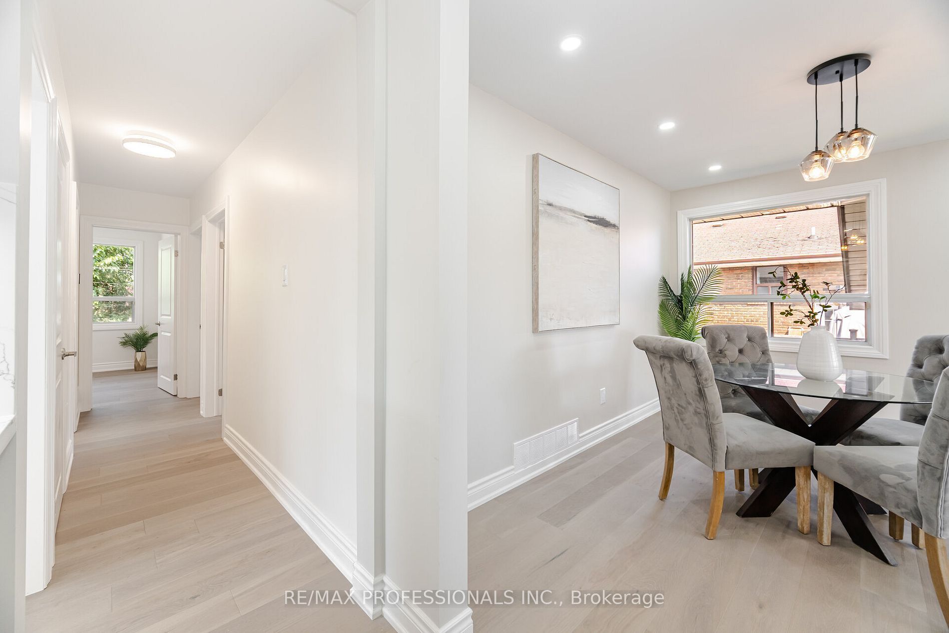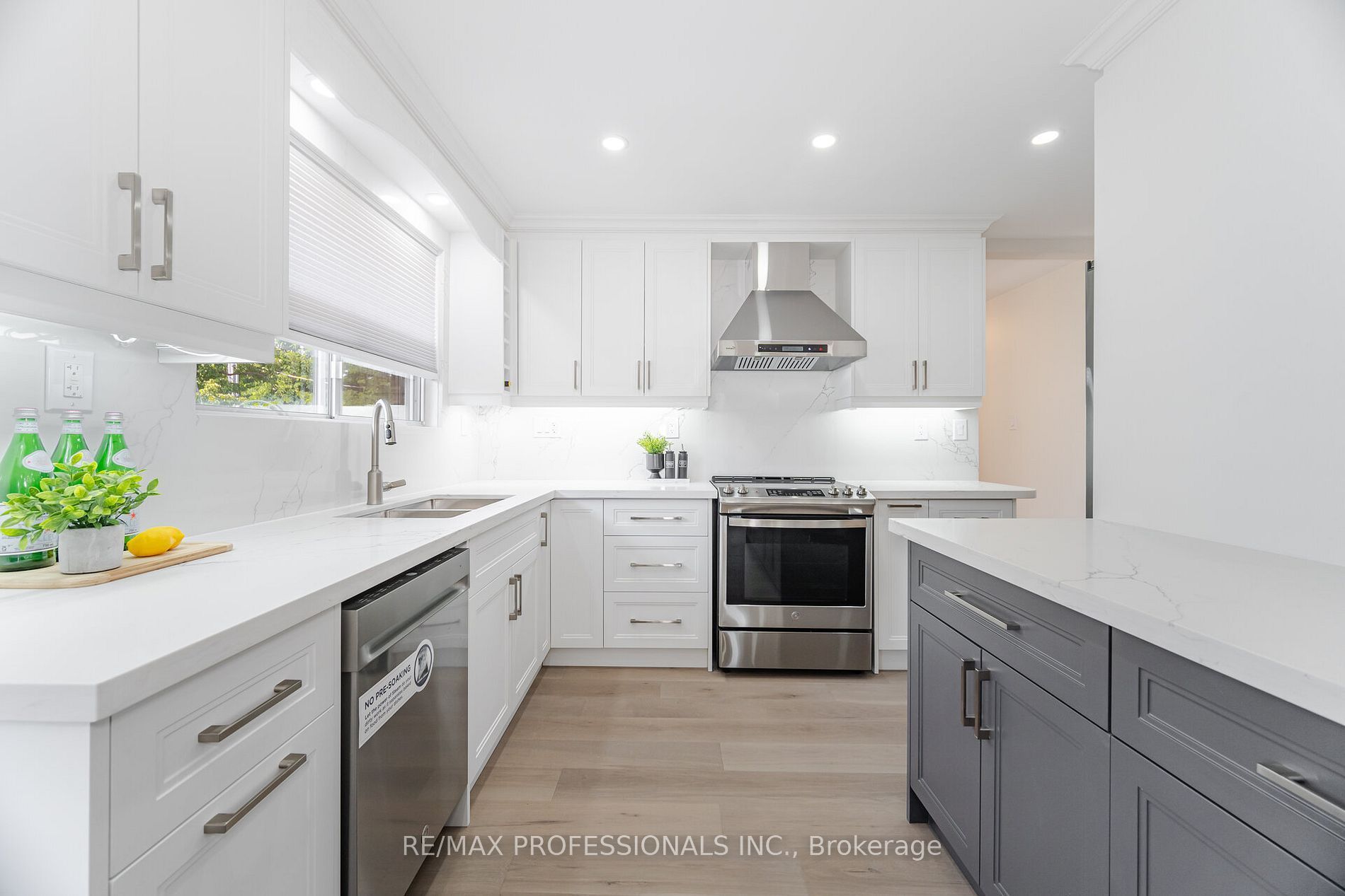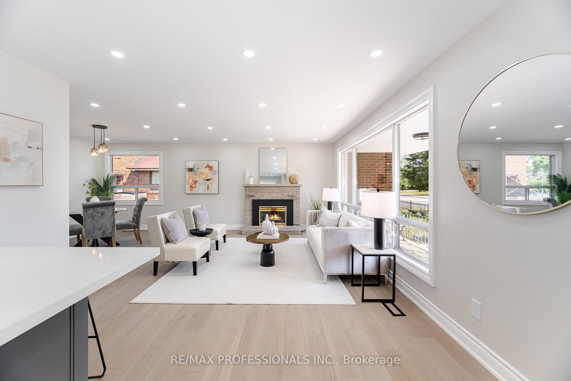 Newly renovated main level features a bright open-concept kitchen, living, and dining area with new hardwood flooring, pot lighting, a gas fireplace, and elegant light fixtures throughout. The stunning kitchen showcases a spacious island with breakfast seating. New stainless steel appliances, a stylish hood fan, picture window above the sink, and the main floor offers three spaciuos sun-filled bedrooms, each with double sliding-door closets the beautifully renovated 5-piece bathroom includes double sinks, a rainfall shower, and a deep soaker tub for ultimate relaxation. **the fully finished lower level with in-law suite with bright sun filled separate entrance provides exceptional flexibility, featuring a second kitchen, large family room, and a separate recreation room that could easily function as a fourth bedroom, along with a renovated 4-piece bath, renovated bright laundry area, and a spacious cold room with built-in shelving. Ideal for in-law or multi-generational living.. An attached single-car garage includes a convenient loft for additional storage. With a double car drive, this home seamlessly combines comfort, function, and style in a family-friendly layout. 10++ residents enjoy placement within the catchment of some of west toronto's top-rated schools and are just minutes from mimico creek trails, norseman community centre, and the tennis courts and skating paths of queensway park. The home offers excellent connectivity with easy access to downtown toronto, the bloor subway line, and mimico go station. Everyday conveniences are close at hand, including parks, playgrounds, a community pool, local shopping, and the renowned san remo bakery. Commuting is effortless with a quick bus ride to the subway and convenient access to major highways.