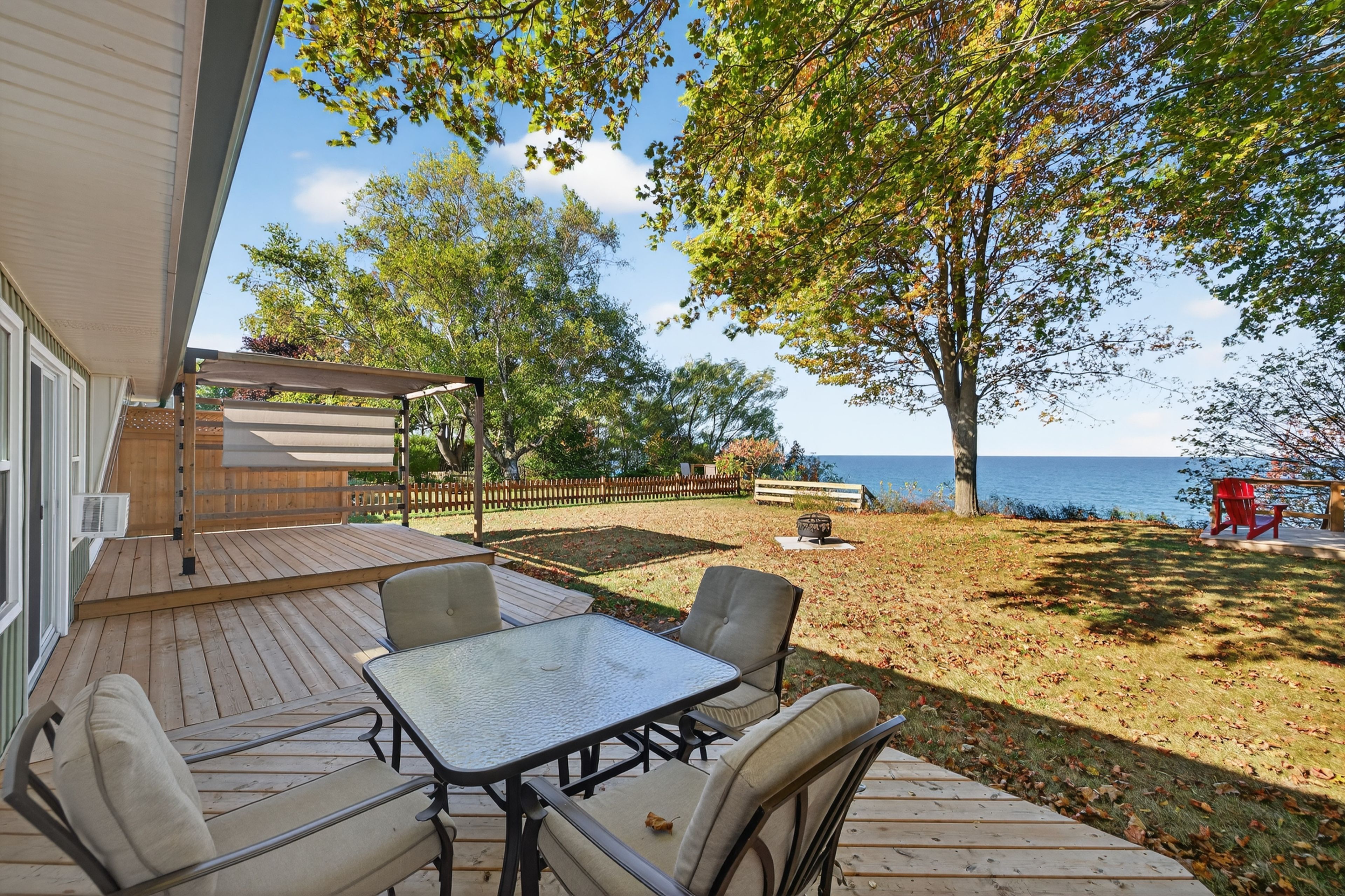 • Spacious new deck, pergola, and firepit area for outdoor enjoyment.