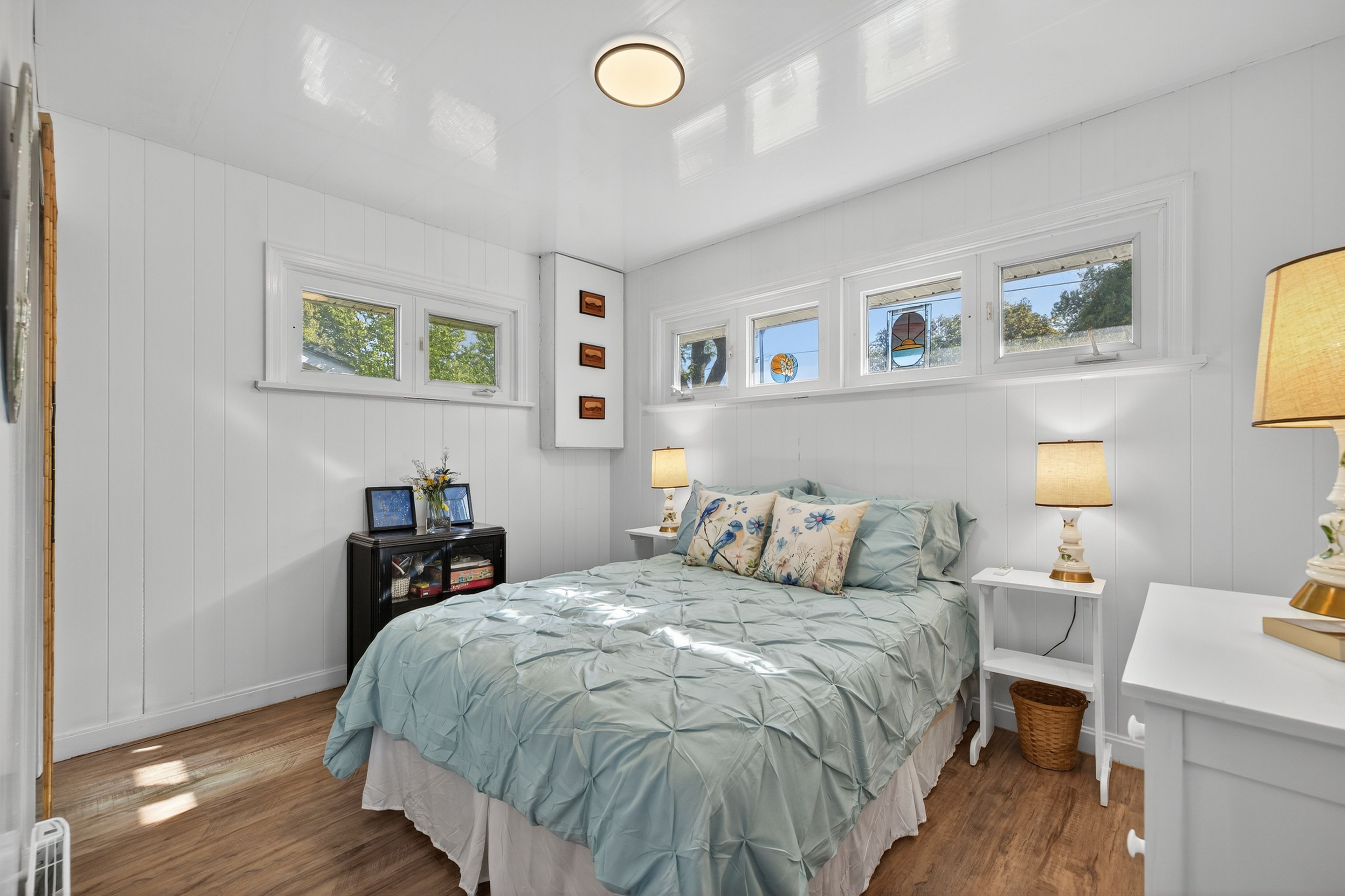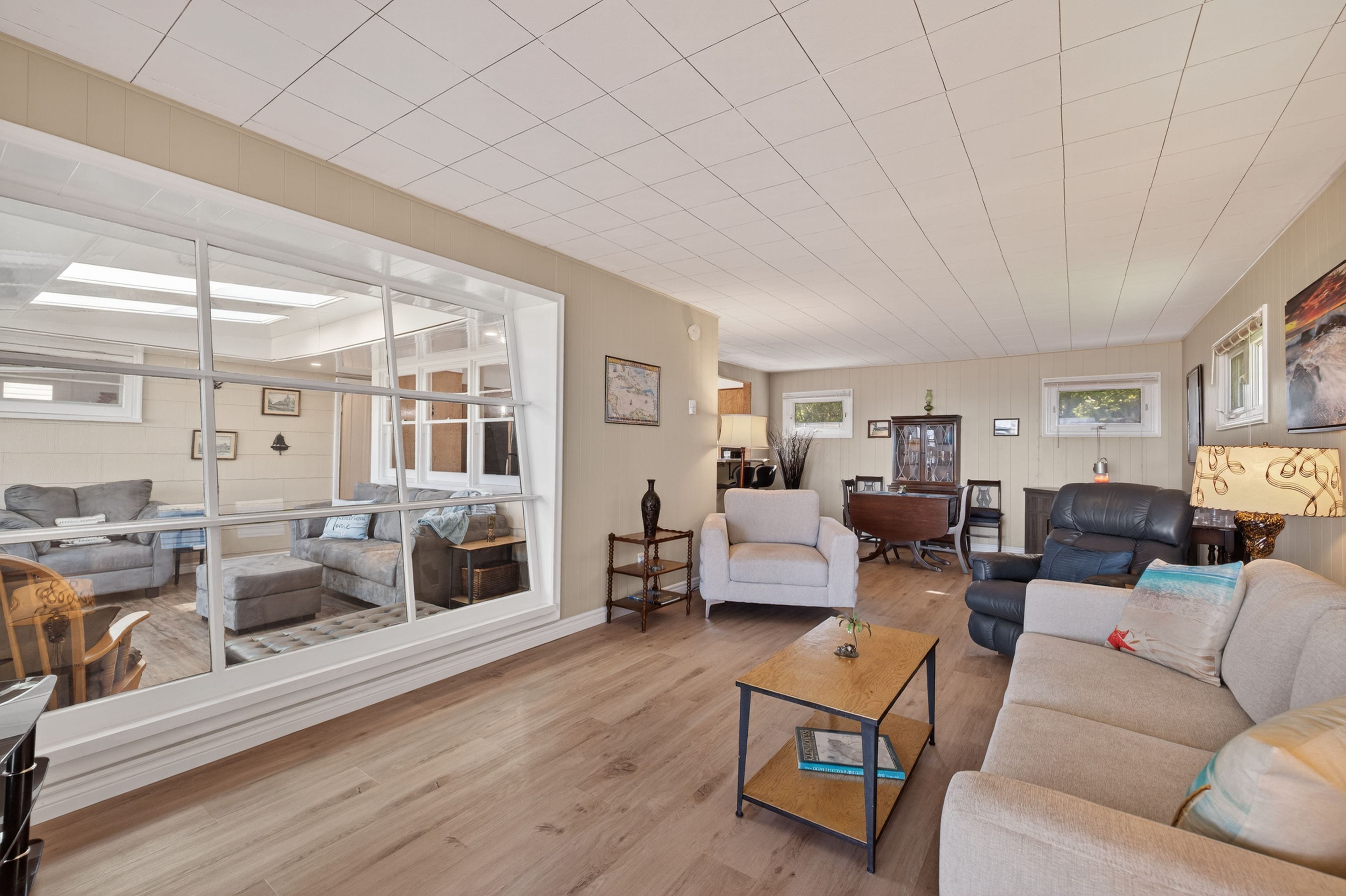 • Updated interiors with newer flooring, skylights, and renovated bathroom.