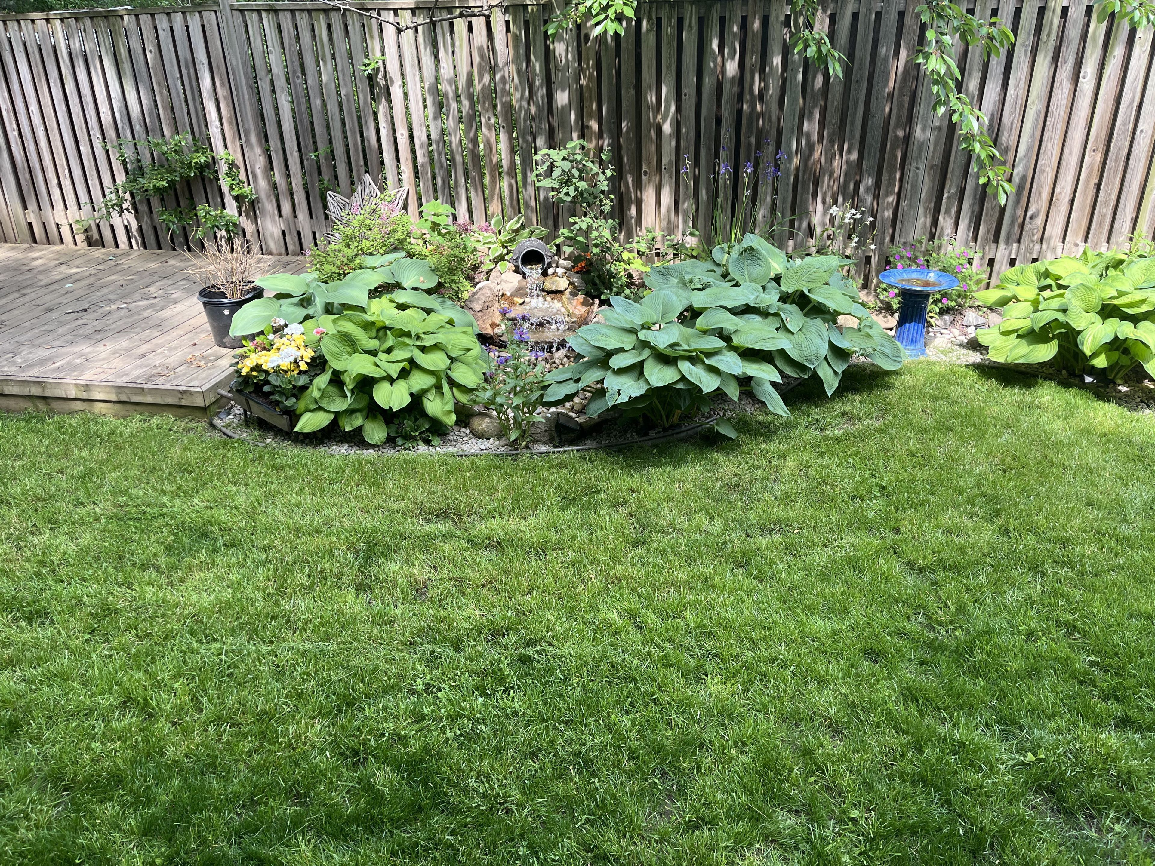 • Outdoor oasis includes a fire pit, waterfall, and spacious patio for gatherings.