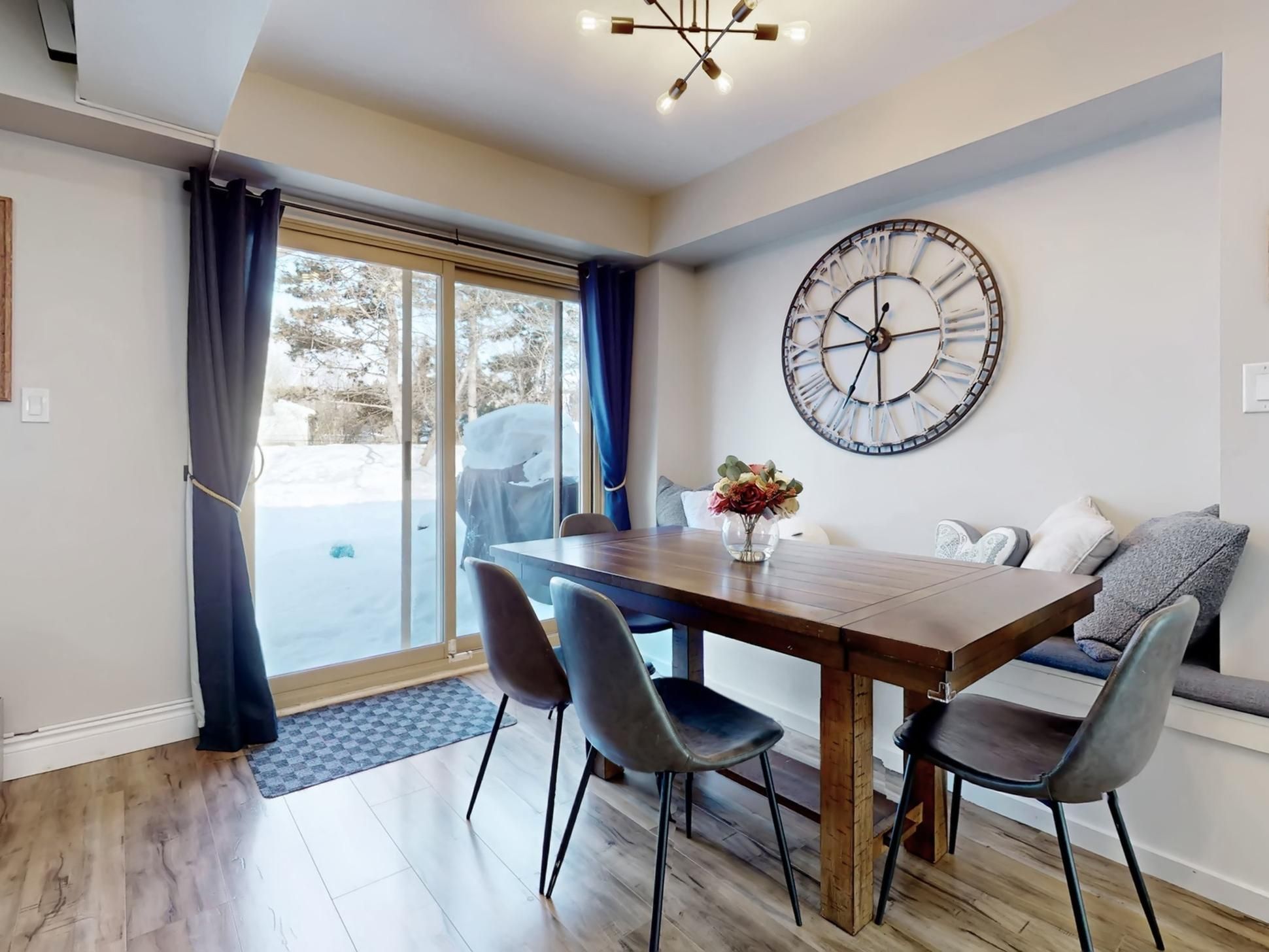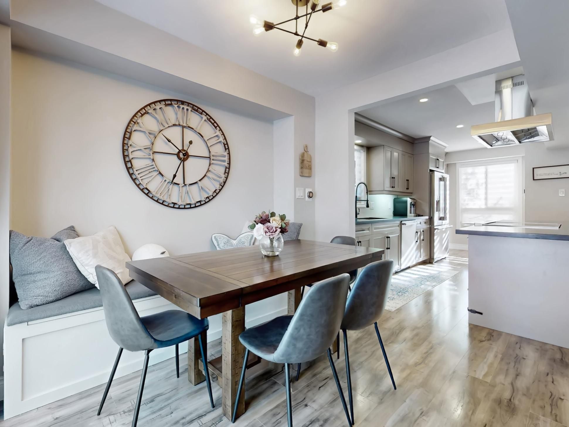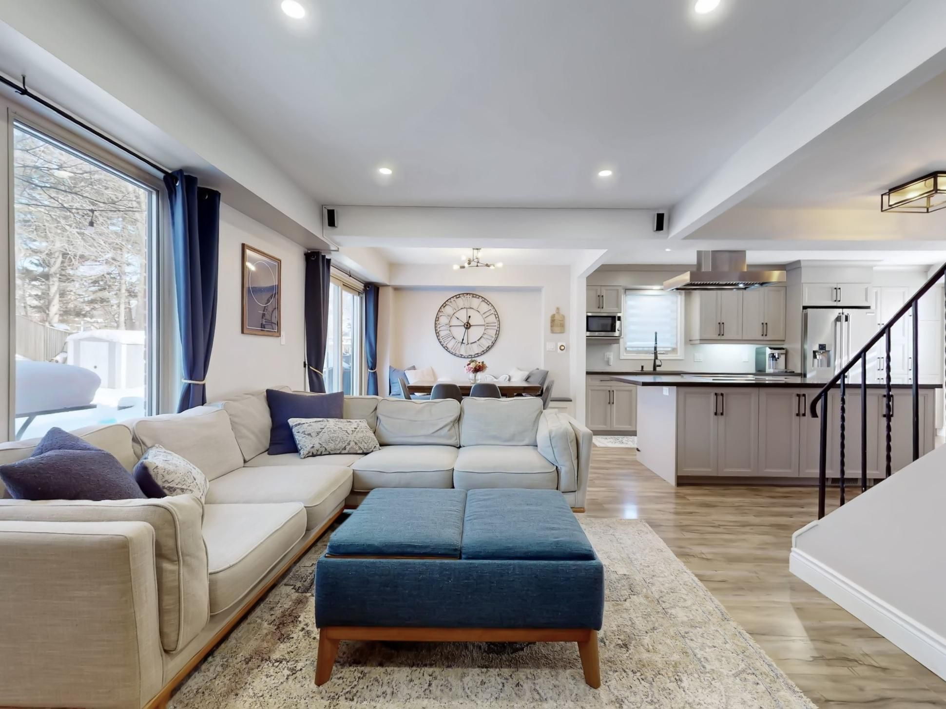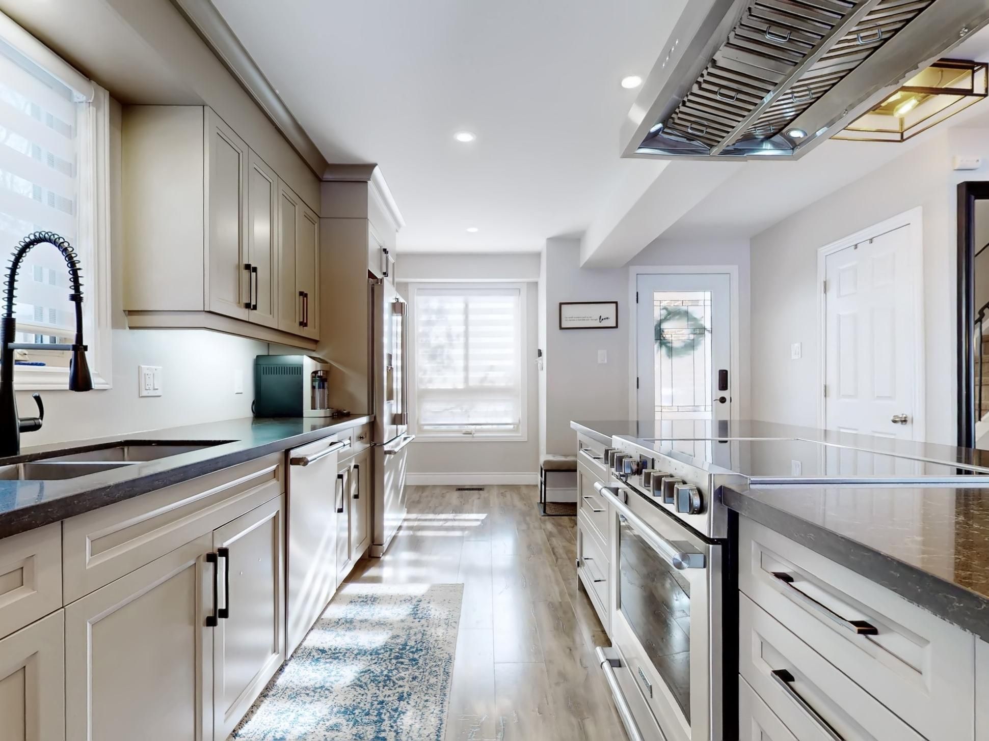 • Bright open-concept main floor with a family-style kitchen and backyard views.