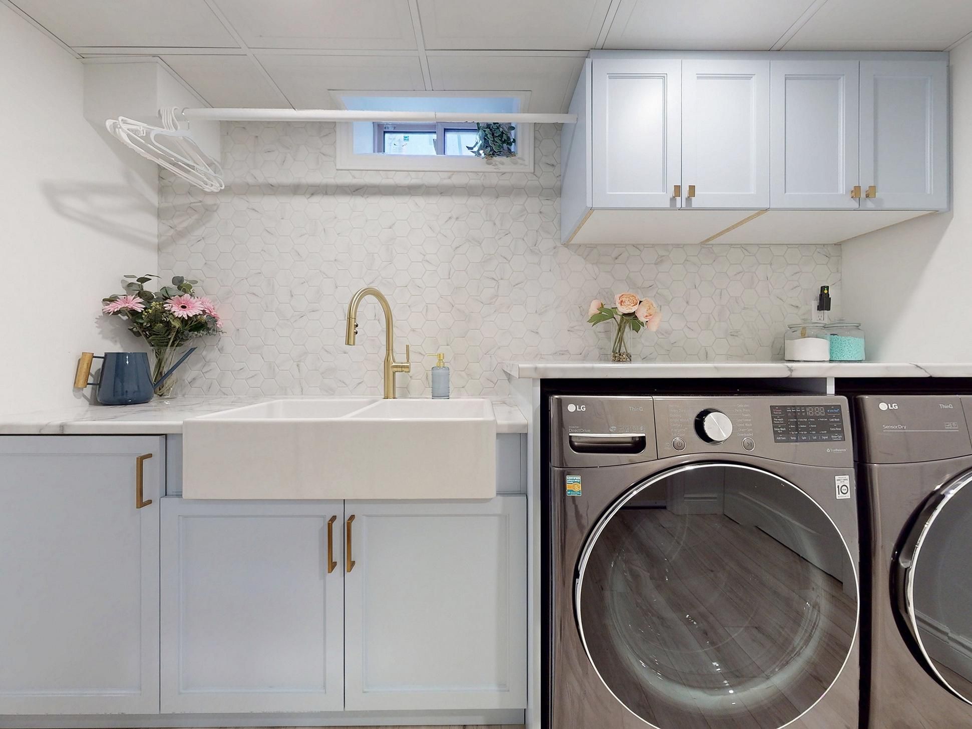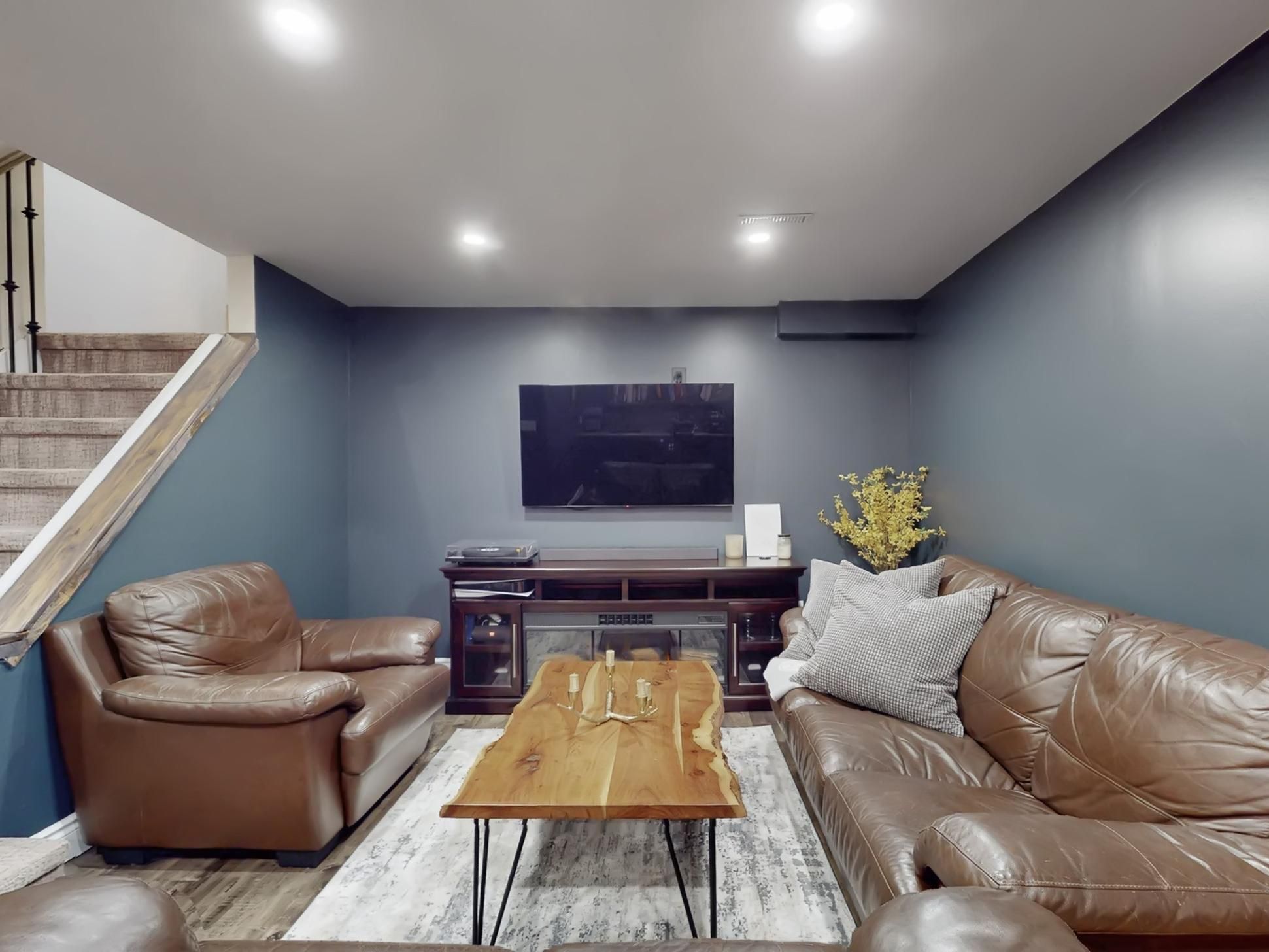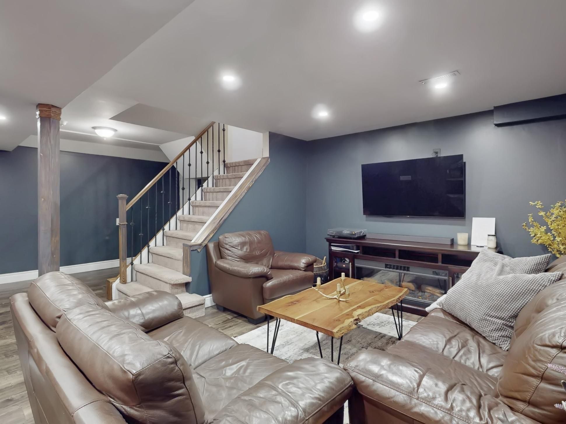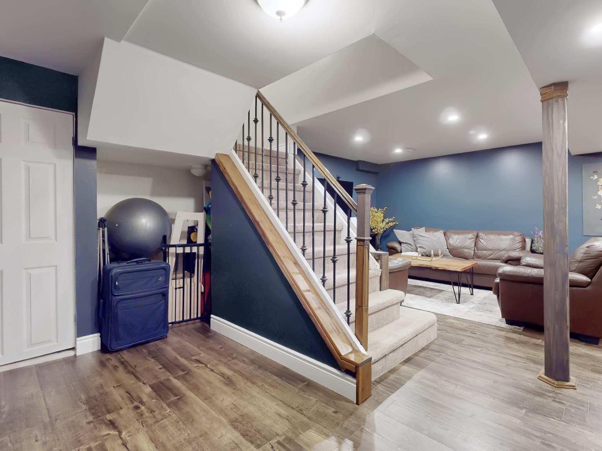 • Finished basement features a rec room with a custom vintage-style wet bar.