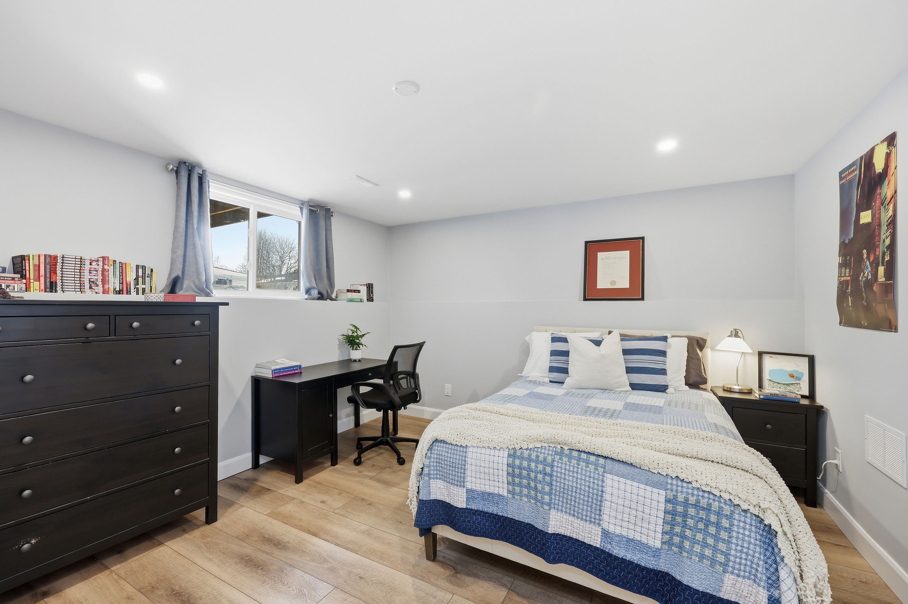 • Lower level includes family room, additional bedroom, and ample natural light.