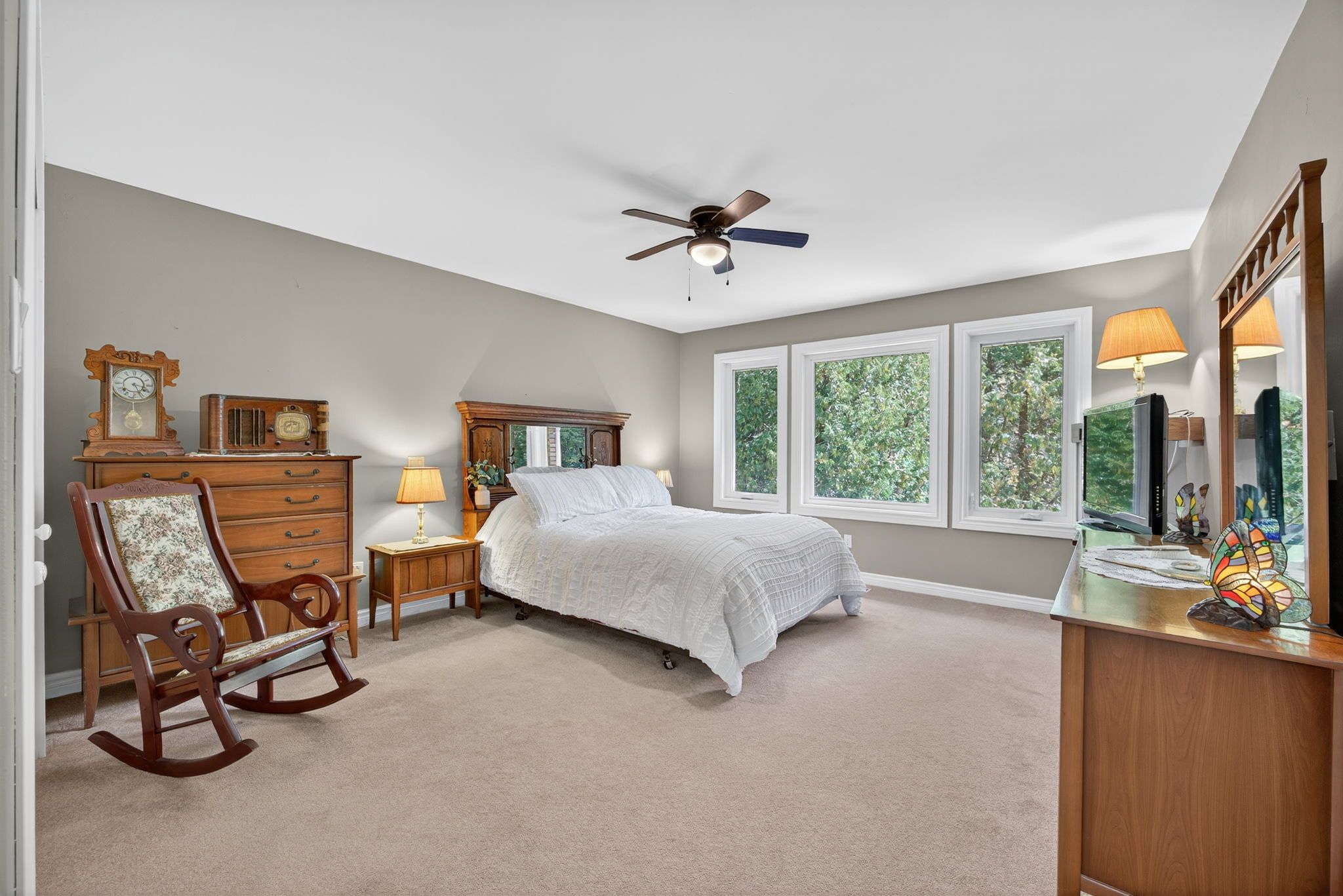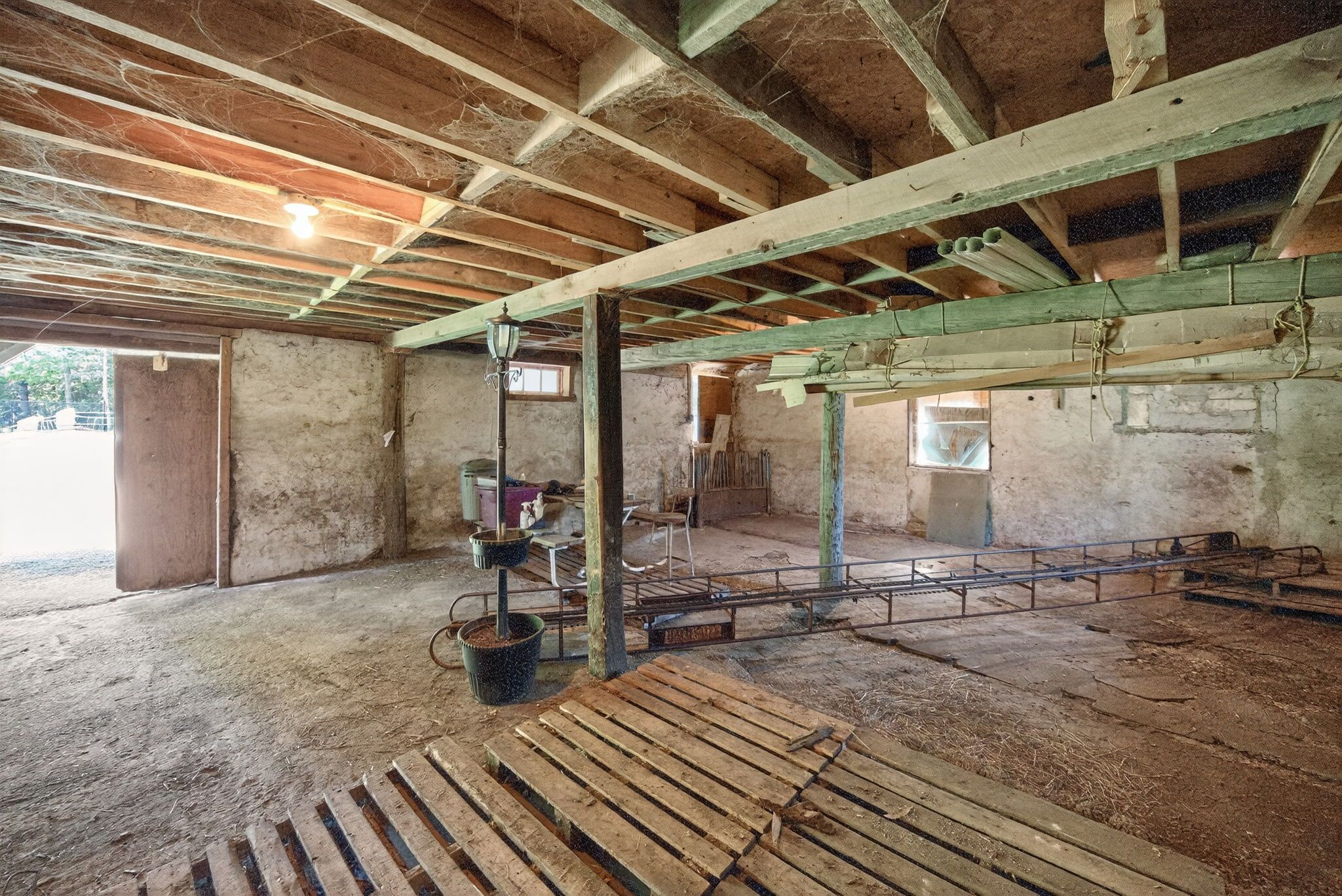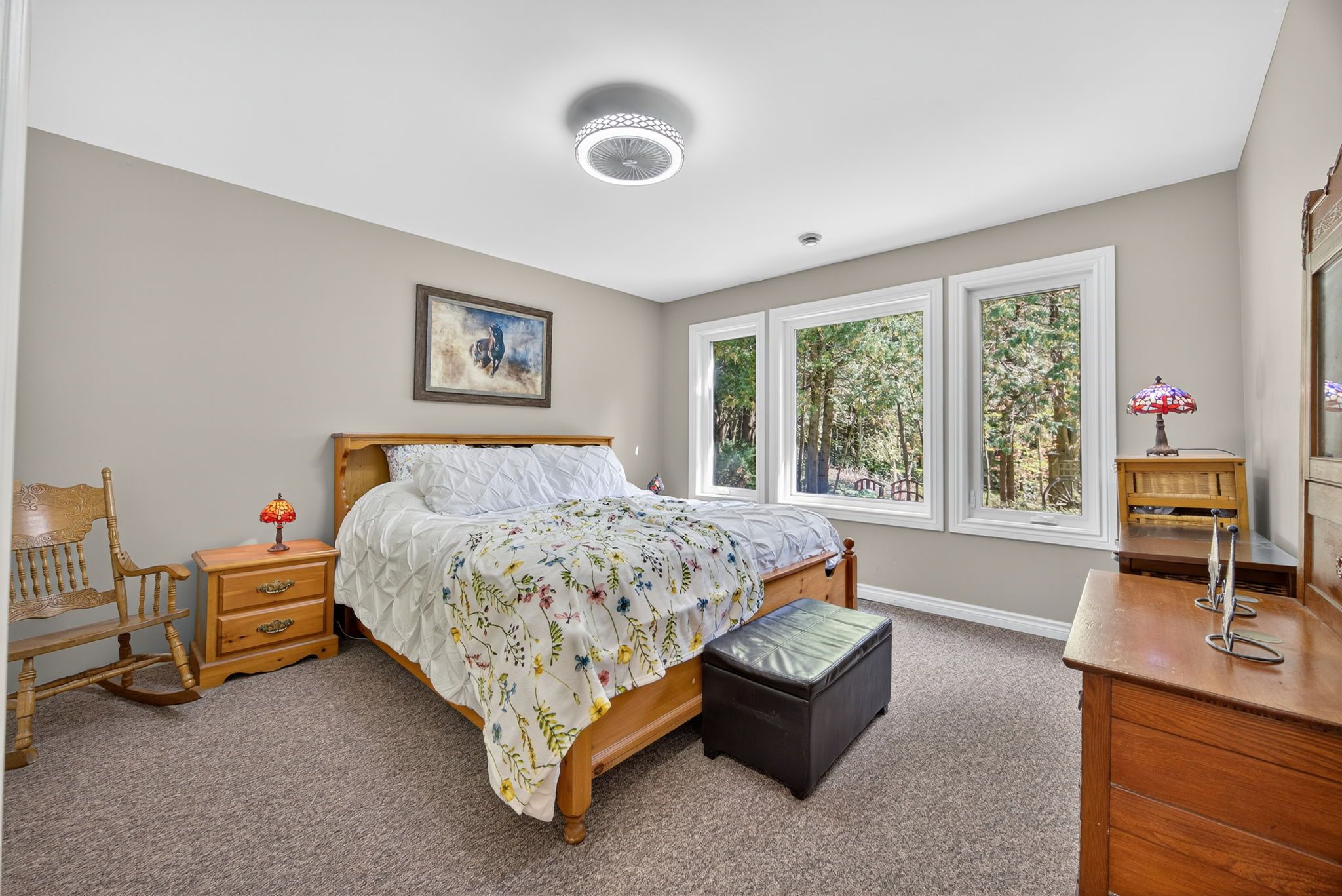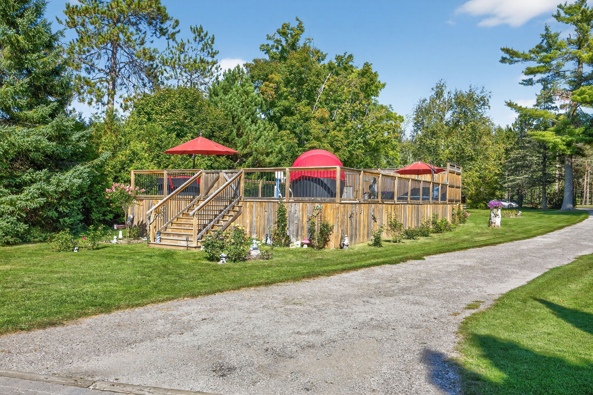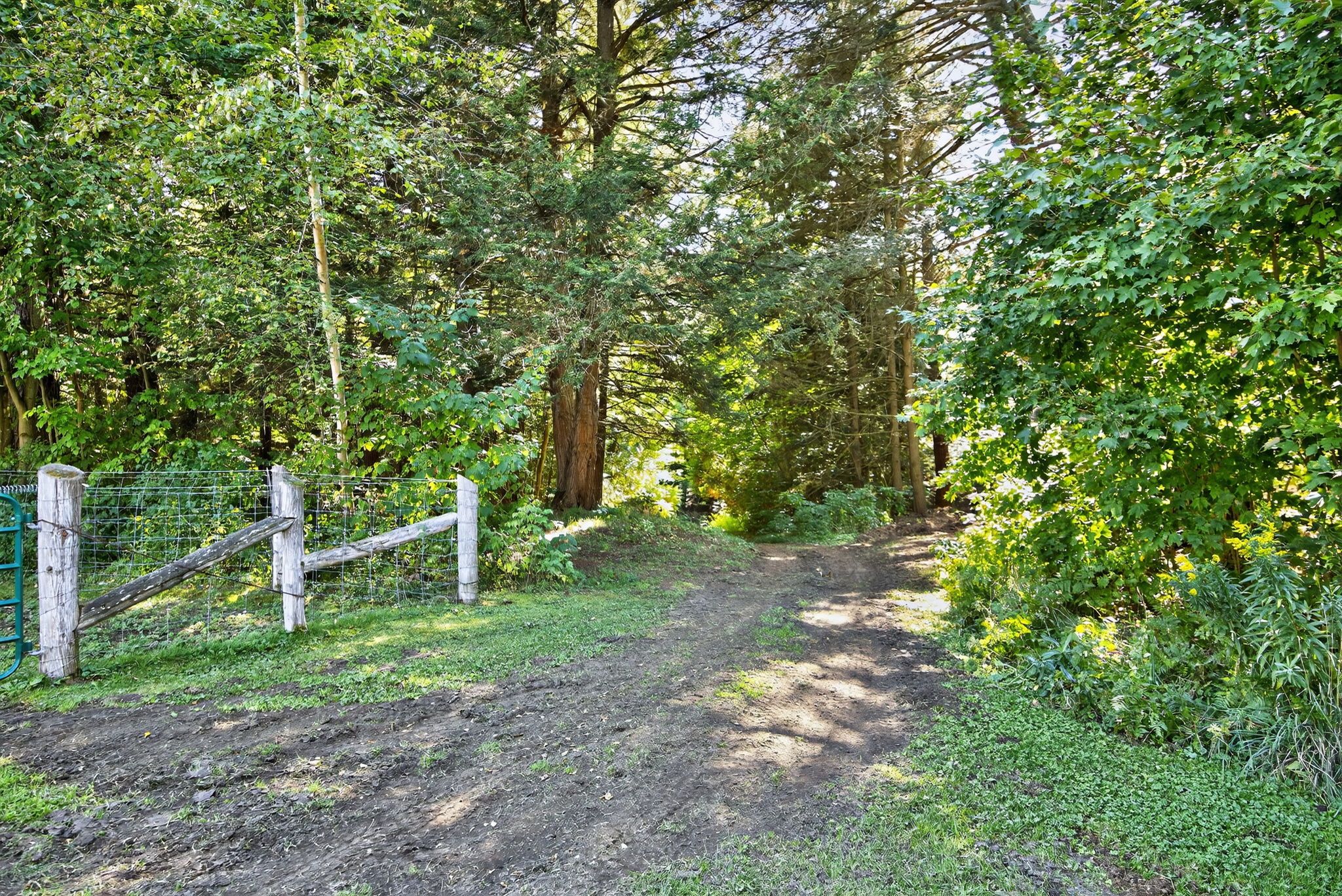 Welcome to your private 48. 39-acre sanctuary - a rare opportunity to escape the city and embrace a simpler, more fulfilling way of life. As you wind down the secluded driveway, three majestic old-growth white pines, known as the three sisters, stand as timeless guardians of this serene retreat. The custom-built bungalow offers generous living space with cathedral ceilings, a double-sided gas fireplace, and triple-pane windows framing stunning views of the pond, creek, and landscaped grounds. The main level features a spacious kitchen with walkout to the deck, a primary bedroom with ensuite, main-floor laundry, and inviting family spaces designed for comfort and connection. The finished lower level adds incredible versatility with a large recreation room and wood-burning fireplace, two additional bedrooms, an updated bathroom, and two flexible grooming rooms that can easily be tailored to your needs - ideal for hobbies, multi-generational living, or a home business. A walkout to the backyard and garage completes the space. Outdoors, the possibilities are endless. A century barn with hay loft, two paddocks with direct trail access, a sugar shack, chicken coop, and fenced area for pets create the perfect setting for hobby farming or equestrian pursuits. An expansive four-bay drive-in shed with oversized doors provides ample storage for boats, tractors, or collector cars. Trails wind through a beautiful blend of old-growth forest and open meadows, perfect for riding, hiking, or exploring nature. In summer, enjoy the 18x33 above-ground pool with full deck and tiki bar for effortless entertaining; in winter, cozy up by the fire and watch snow fall across your private oasis. With numerous updates and the option of a forest management plan for potential tax savings, this remarkable property is both practical and inspiring - a true retreat ready for its next chapter.