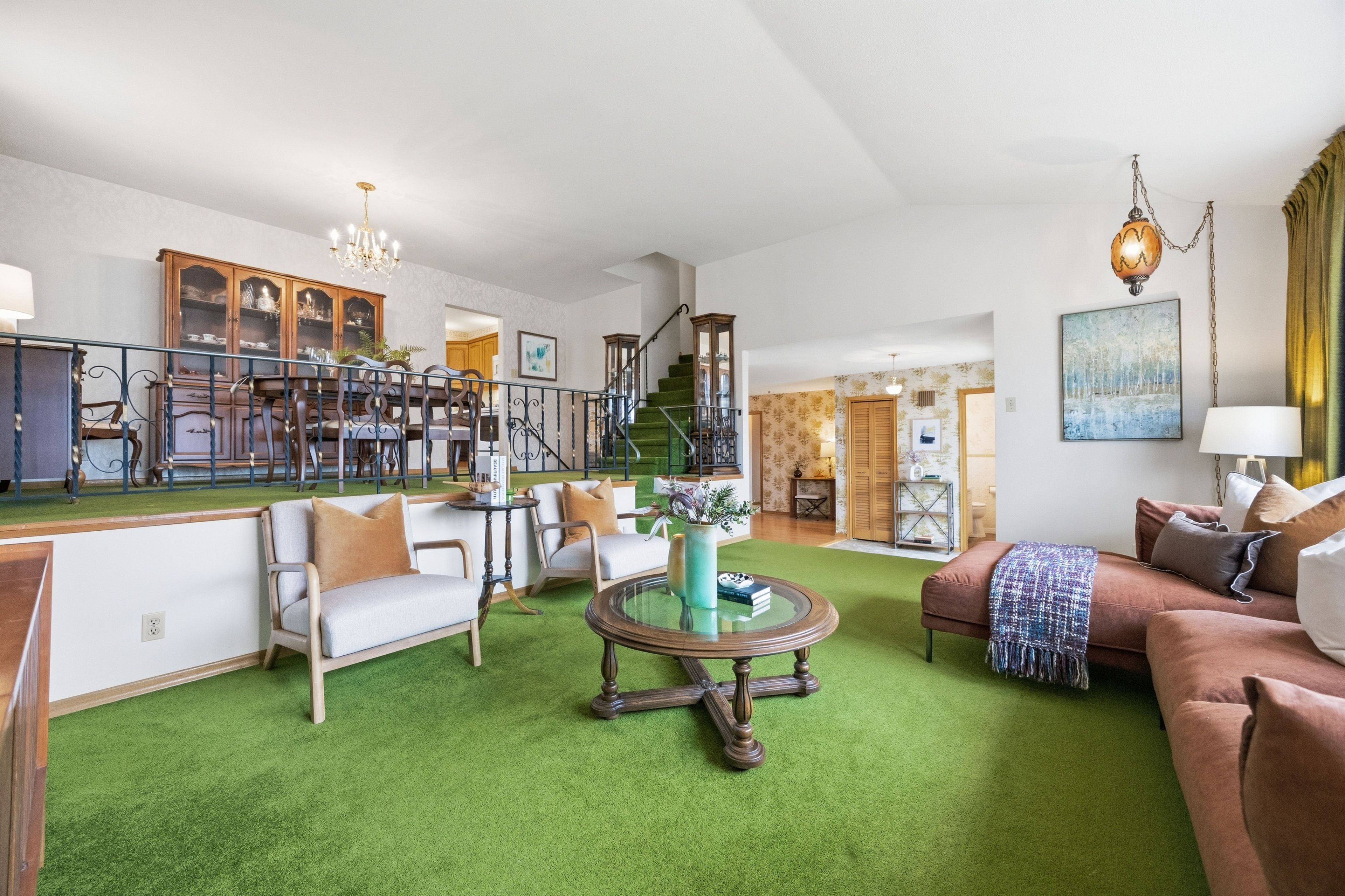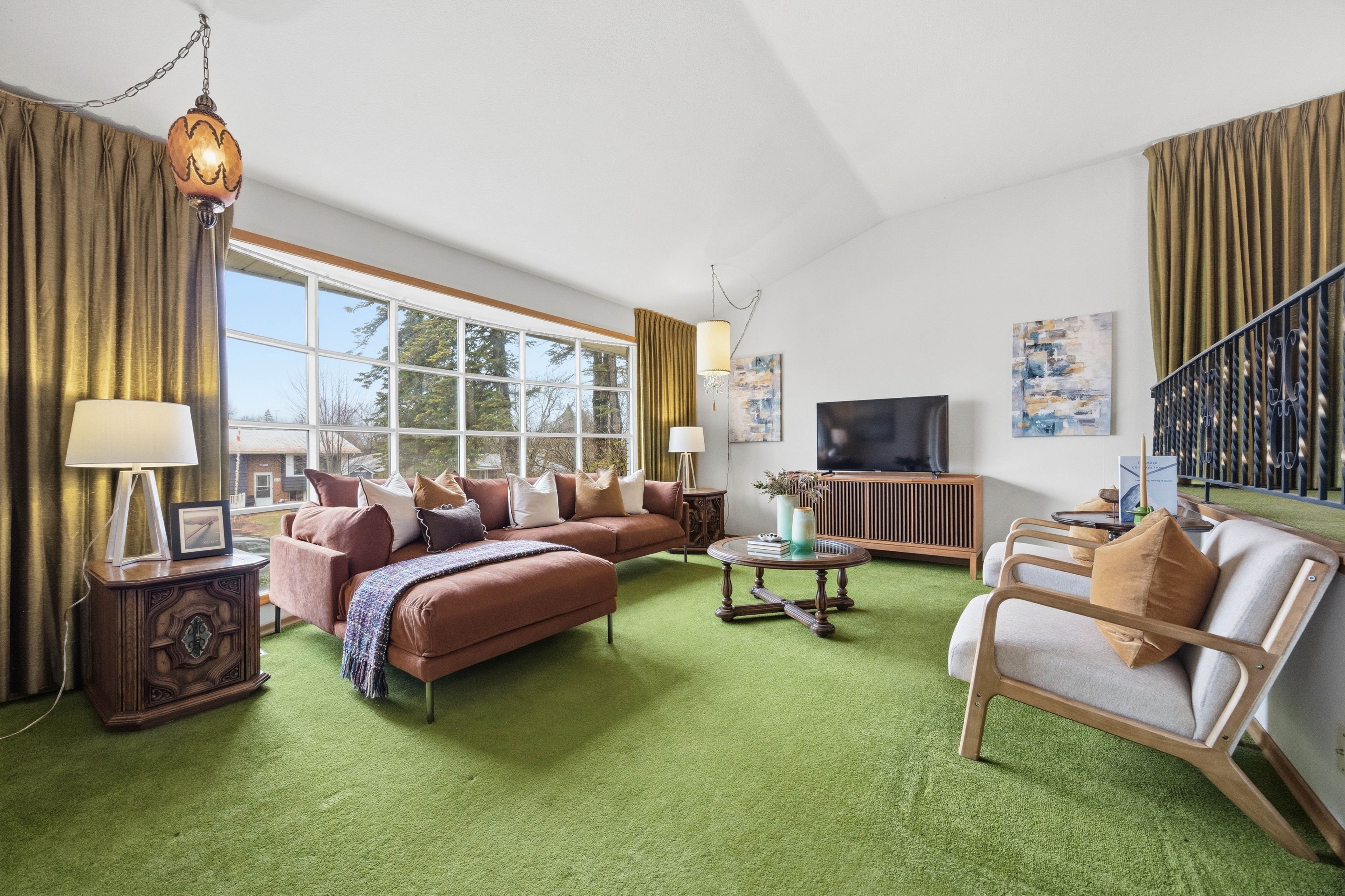 • Distinctive multi-level side-split design with mid-century craftsmanship.