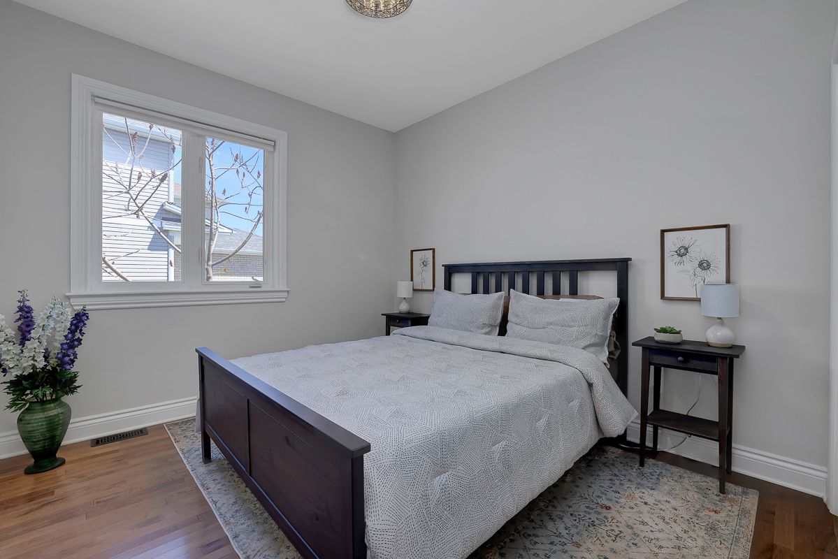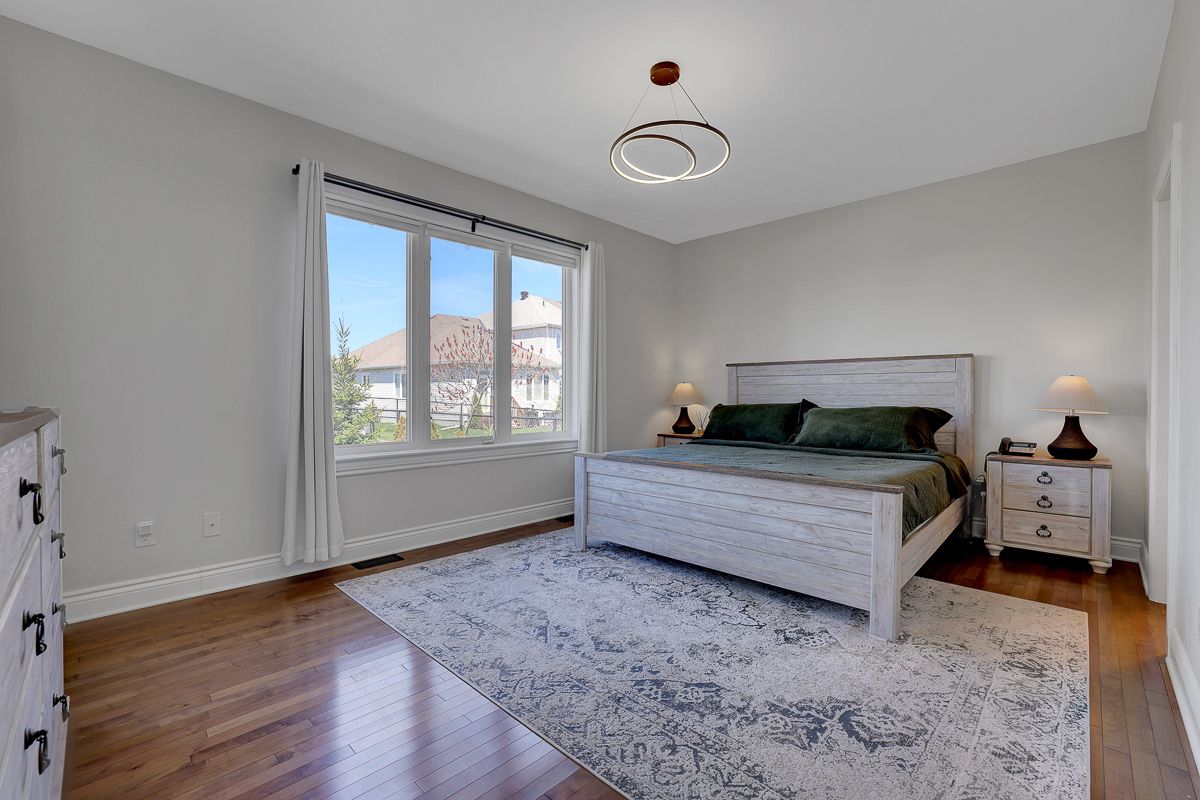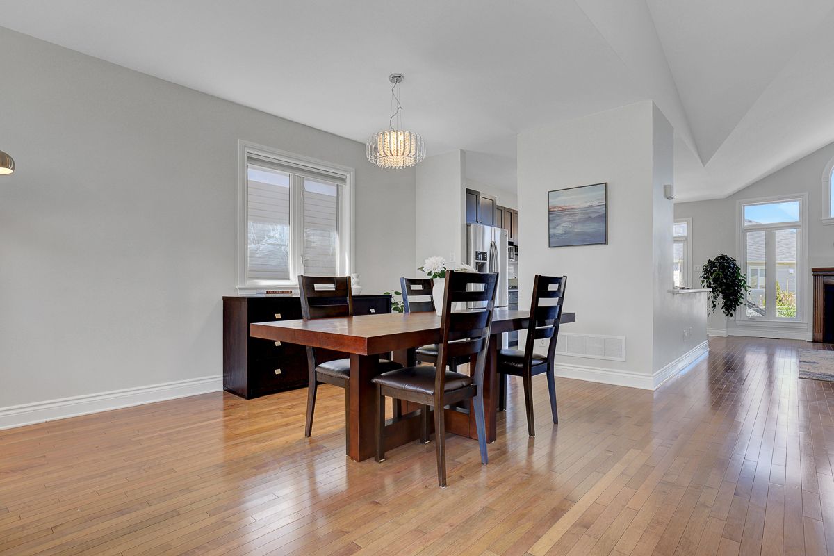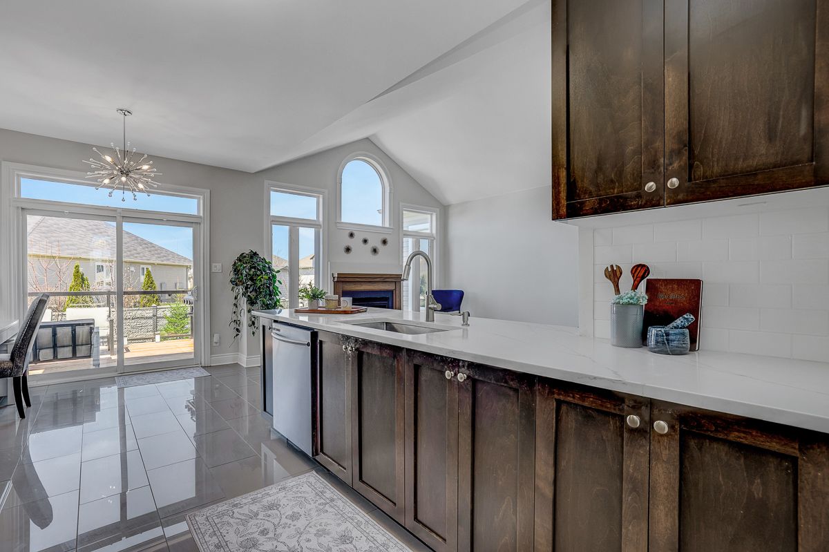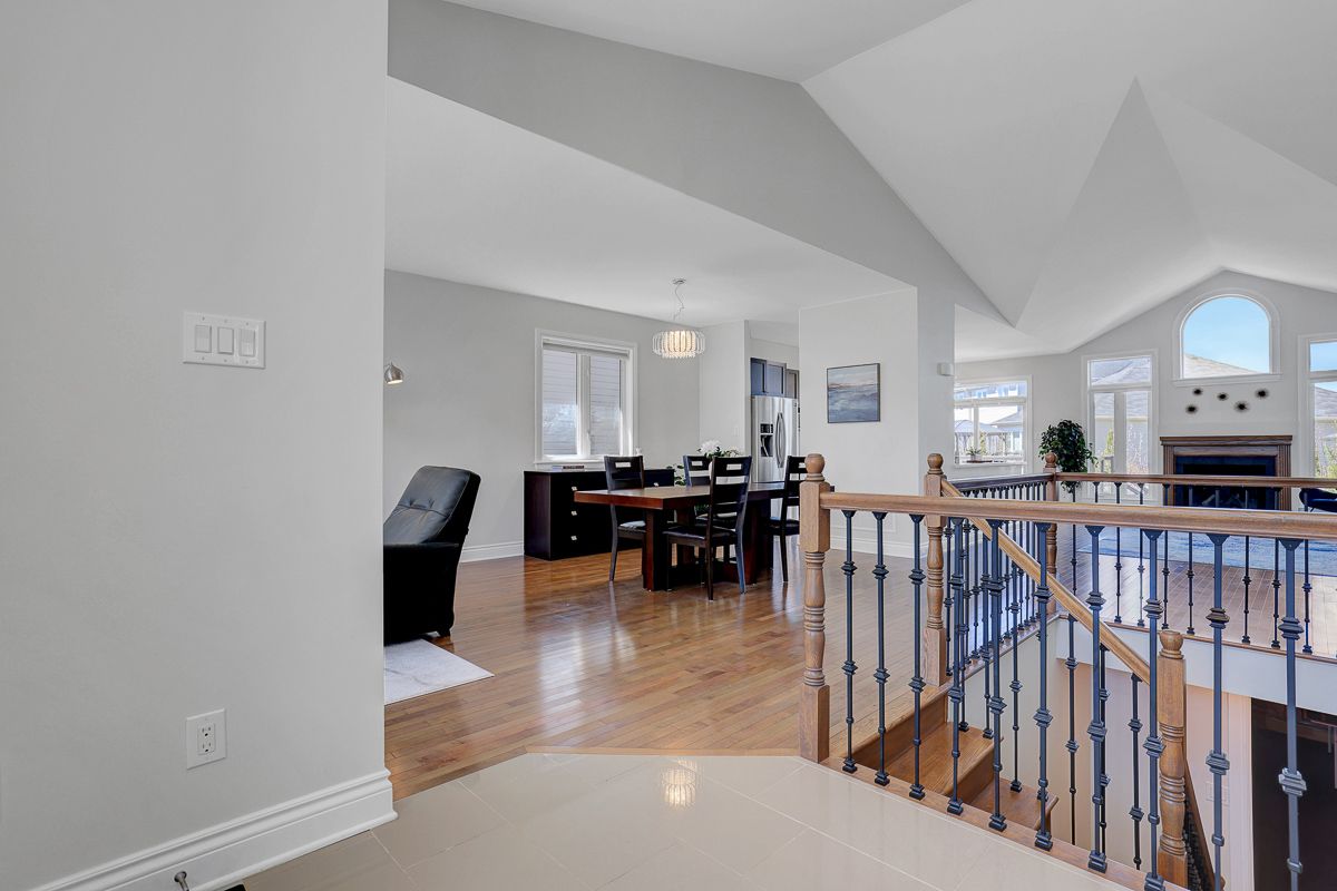Gorgeous curb appeal and filled with natural light, this spacious 2-bedroom, 2 full bath bungalow is nestled on a quiet street in the growing community of arnprior, just minutes to highway 17 and close to grocery stores, schools, restaurants, parks, trails, and more. The main level features gleaming hardwood floors, an open-concept layout with soaring cathedral ceilings, and a stunning palladium window overlooking the cozy gas fireplace, creating a warm and inviting living space. The beautiful kitchen offers ample cabinetry, quartz countertops, stainless steel appliances, and a gas stove-perfect for both everyday living and entertaining. The spacious primary bedroom includes a walk-in closet and a luxurious 4-piece ensuite with quartz counters and a relaxing jetted soaker tub. A generously sized second bedroom, an additional 3-piece full bath, and convenient main floor laundry complete the level. Updated iron railings and modern light fixtures add a stylish touch throughout. Step outside to a beautifully landscaped, fully fenced backyard featuring mature fruit trees including cherry, apple, and plum trees, along with a large custom-built deck-an ideal space for outdoor enjoyment and entertaining. A wonderful opportunity to enjoy comfortable bungalow living in a fantastic location. Book your showing today!