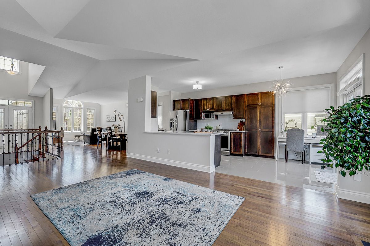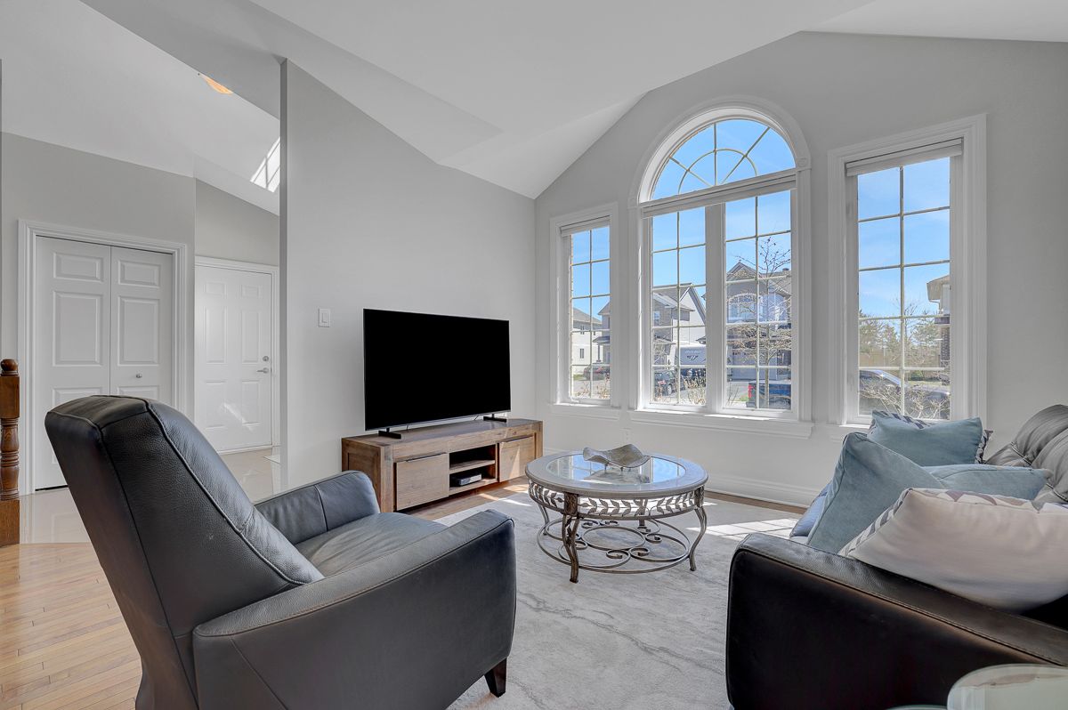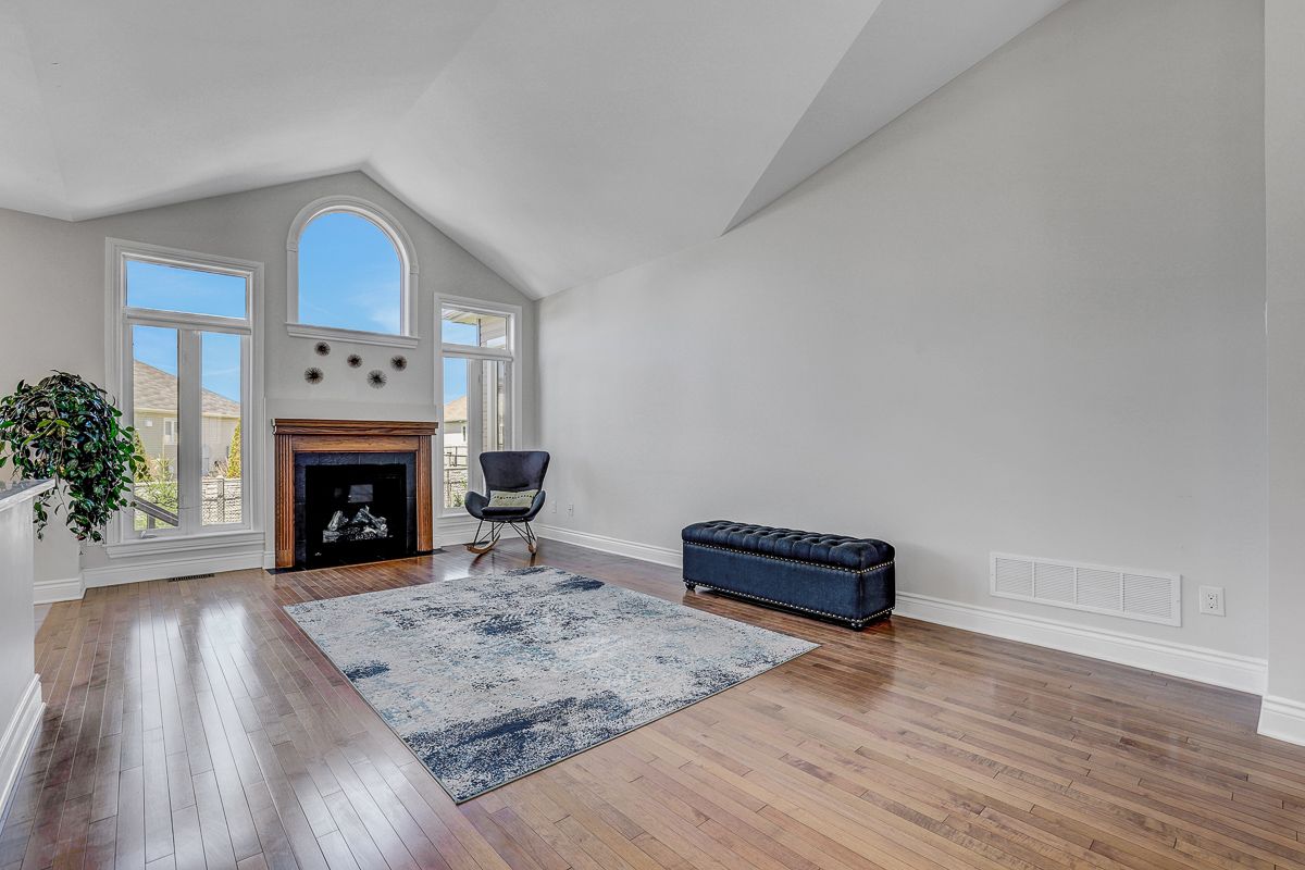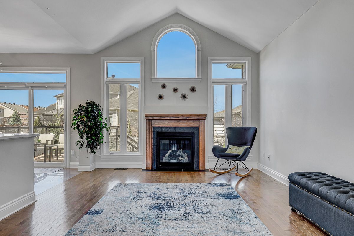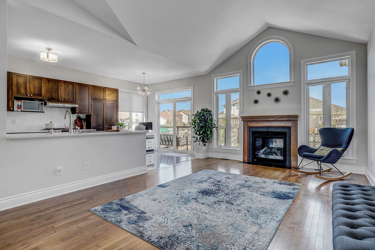 • Open-concept layout with soaring cathedral ceilings and a cozy gas fireplace.