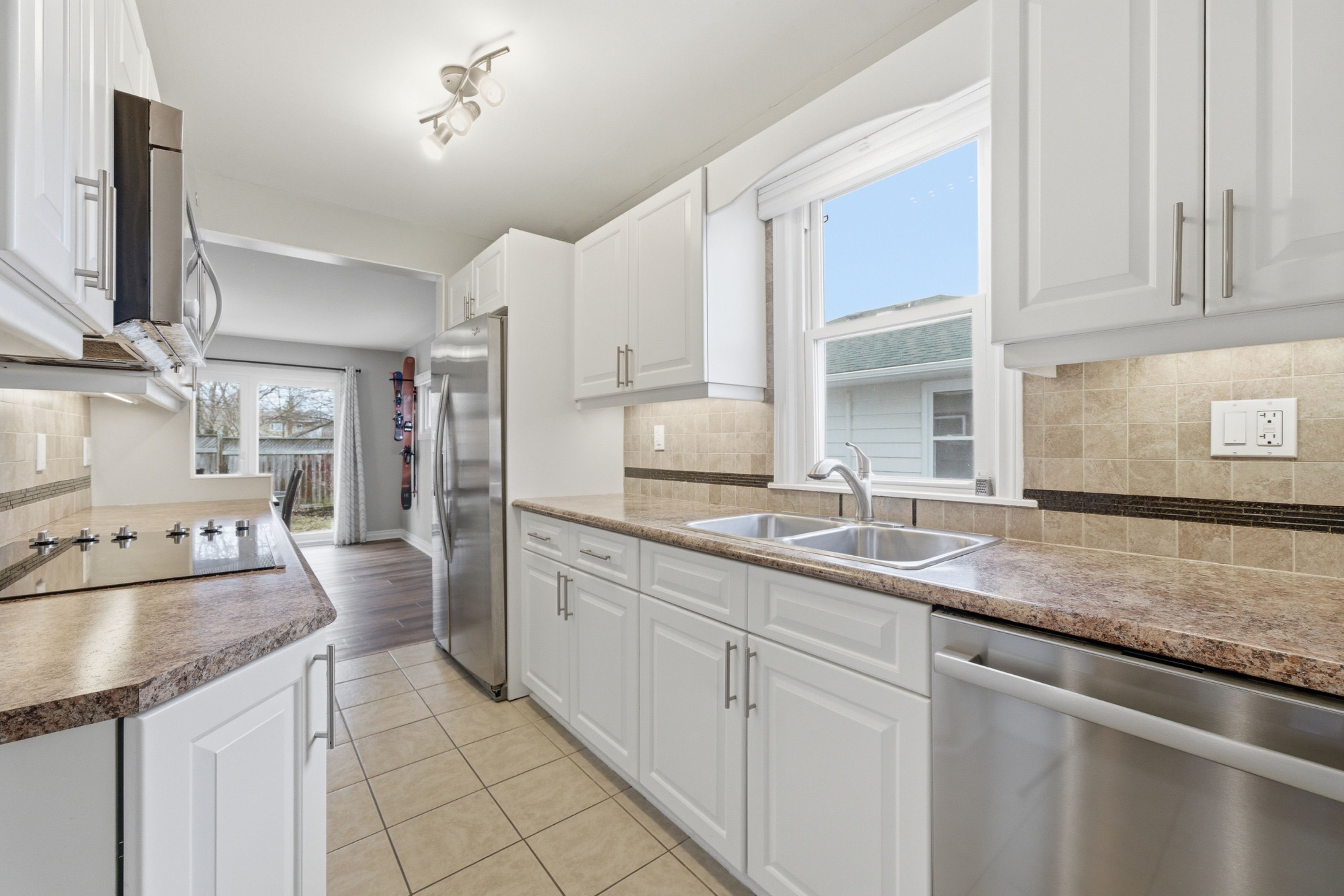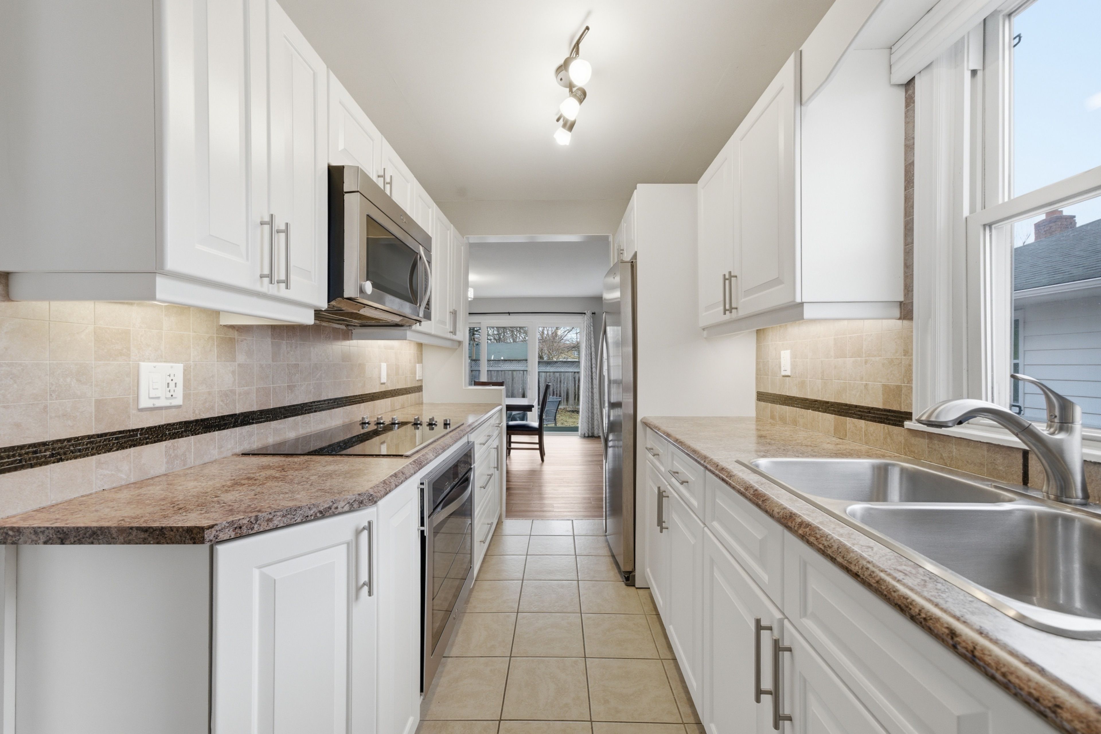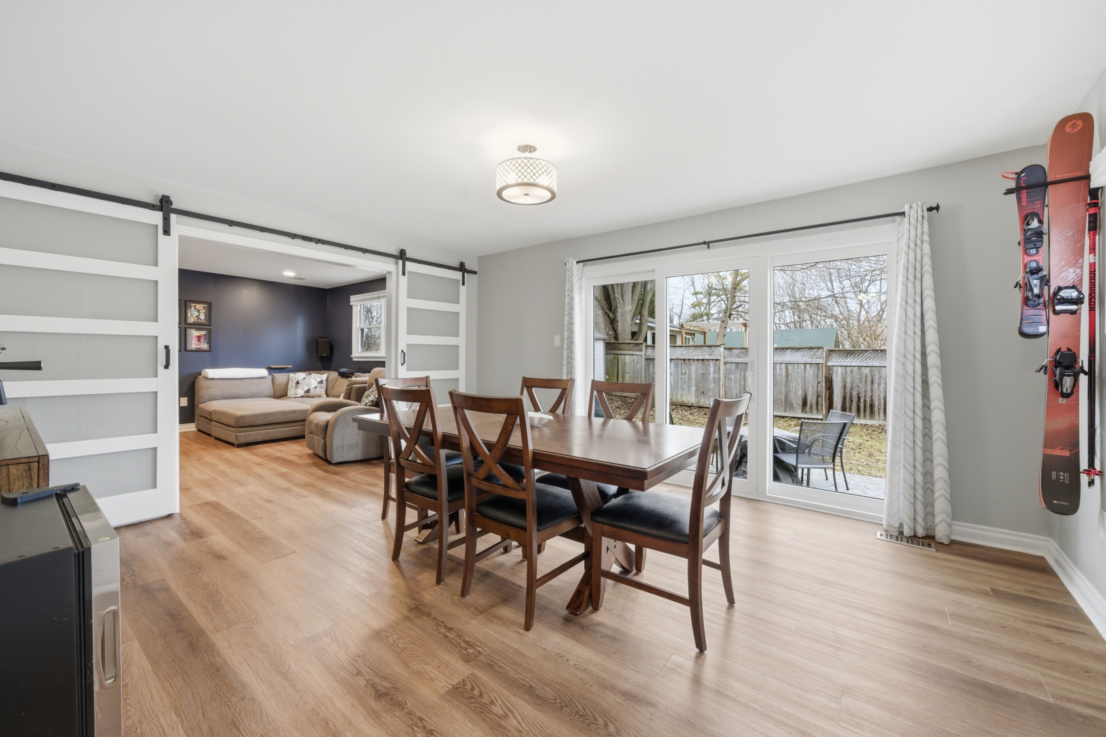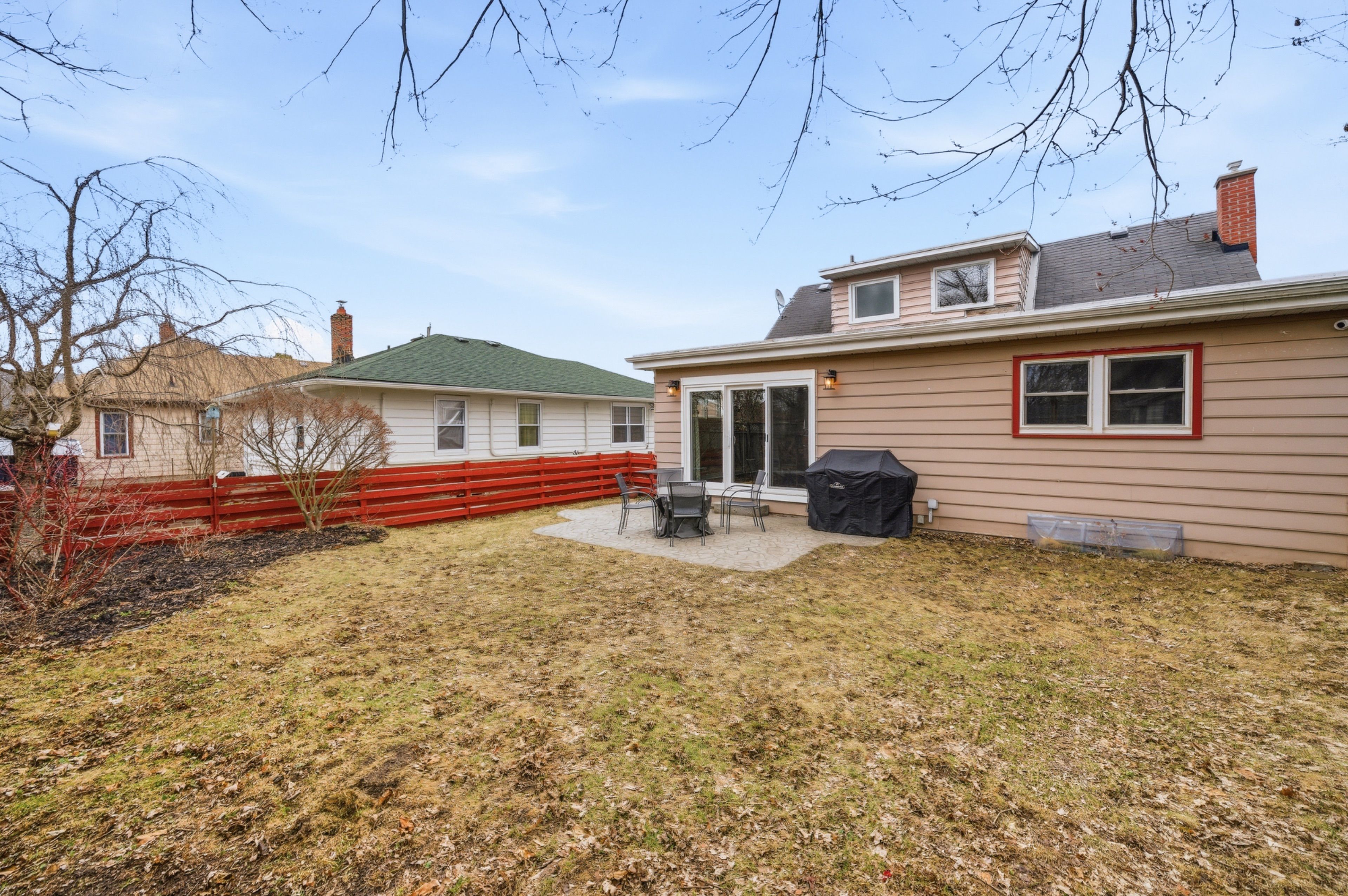 • Beautiful back patio accessible via triple sliding doors, great for entertaining.