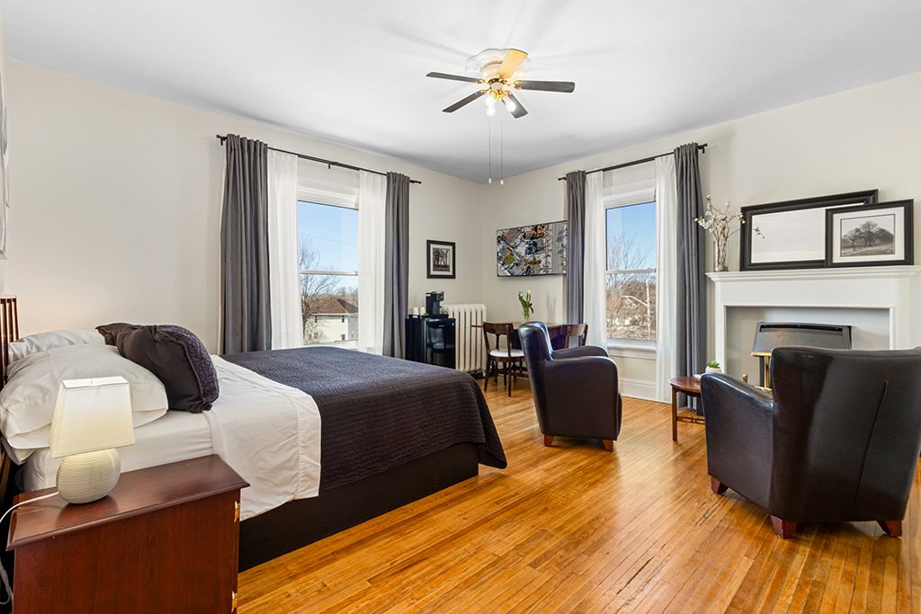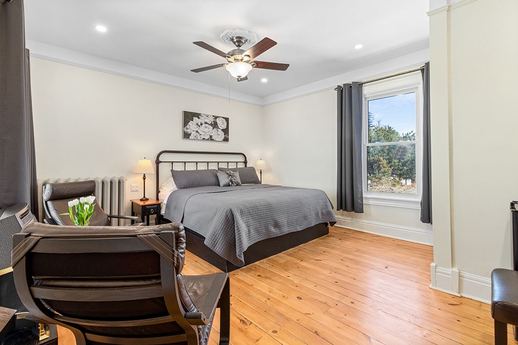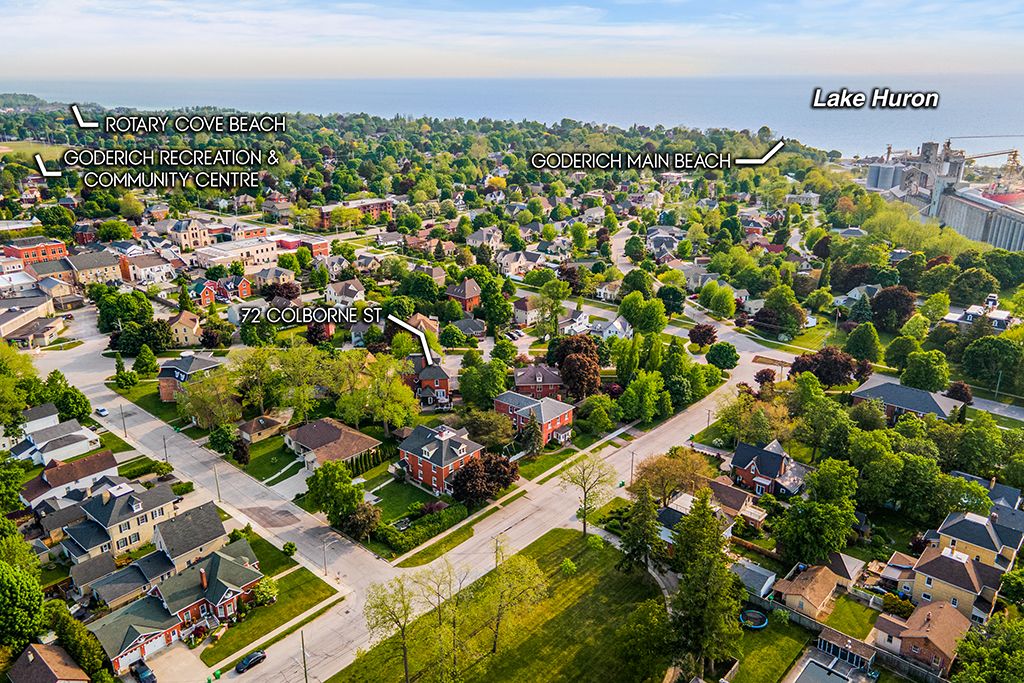 This stylish bed and breakfast in the heart of goderich offers an exceptional opportunity to own a thriving hospitality property. Guests can unwind in any of the five beautifully appointed suites, while you enjoy your own comfortable and private living space. With 3,400 square feet on three levels to share, there is ample room for both business and pleasure. A large communal dining room easily hosts 10 for breakfast and could be used for meetings, paint nights, and workshops during the off season. In the owners' wing, your own private dining room gives you the same luxurious comfort with a walkout to the back deck. Owners can also relax and entertain in their own charming living room. A wireless doorbell system with 3 separate bells allows you to know quickly where to find your guests currently in need of attention. This private space has a well laid out kitchen with two washers and two dryers, two refrigerators, two ovens, a second sink and a large island. This is a room perfectly set up for preparing breakfast for large groups. Going up a back staircase from here takes you to a meticulous housekeeping section where all the supplies are kept and gives easy access to the 2nd floor. The entire property is immaculate and in order, perfectly setting off the century home touches like stained glass, oak floors, tall ceilings, gorgeous centre stairway and a lovely front porch. Guests can gather on this porch as well as a back deck, pergola and in the backyard. A shed offers secure storage for guests' recreational equipment when needed. The location, steps from the centre of town, is fantastic. Three minutes from the front door is a local farmers' market, an outdoor concert venue, shops, library and restaurants. In a short 15 minute walk you can be on the eastern shore of beautiful lake huron for a swim, ice cream or a sunset walk on the boardwalk. This is a very functional and workable b&b designed for maximum comfort for both owners and guests.