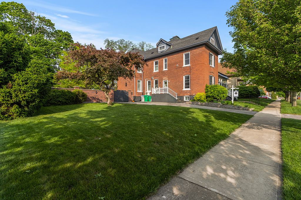 Enjoy the grandeur of this red brick century home that was once the manse for the local presbyterian church. With 3,400 square feet on three floors, it is a sprawling family home which is currently being used as a fabulous bed and breakfast. Four sunny and cheerful bedrooms are on the second floor, all with their own bathrooms, televisions and coffee stations. The hidden gem on the third floor has a large bedroom and living room and top notch air conditioning. This entire home is flooded in natural light. The main floor welcomes you with a lovely enclosed front porch to relax and enjoy the views of this serene, tree-lined, historic, old ontario neighbourhood. A large dining room, living room and sunny den with a walkout to the deck will make family life a breeze. Managing this large home is easy especially with two stairways, an expansive kitchen with double washer and dryers, two ovens and two refrigerators and a second sink and large island. Gas fireplaces in the large bedrooms and den add warmth and grace to this property. Tall ceilings, wide crown moldings and baseboards point to its victorian heritage as well as the stained glass windows and oak flooring. The gardens are as beautifully maintained as the home and owners can relax on a deck, in the pergola or just pull up a chair near the flower beds. Goderich is well known for its access to the 130 km goderich-to-guelph rail trail. But there is more than cycling. This property is three minutes from the farmers' market, outdoor concert venue, shops, the library and quaint cafes. A 15 minute walk and you will be on the eastern shore of lake huron for a swim at the beautiful beach, enjoying an ice cream, or a sunset walk on the boardwalk. Within an hour, you can be in stratford, kitchener or london. This is a fresh and elegant home full of sunlight and thoughtful and functional design touches.