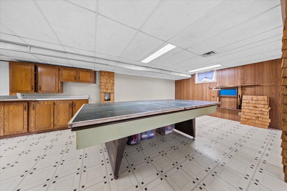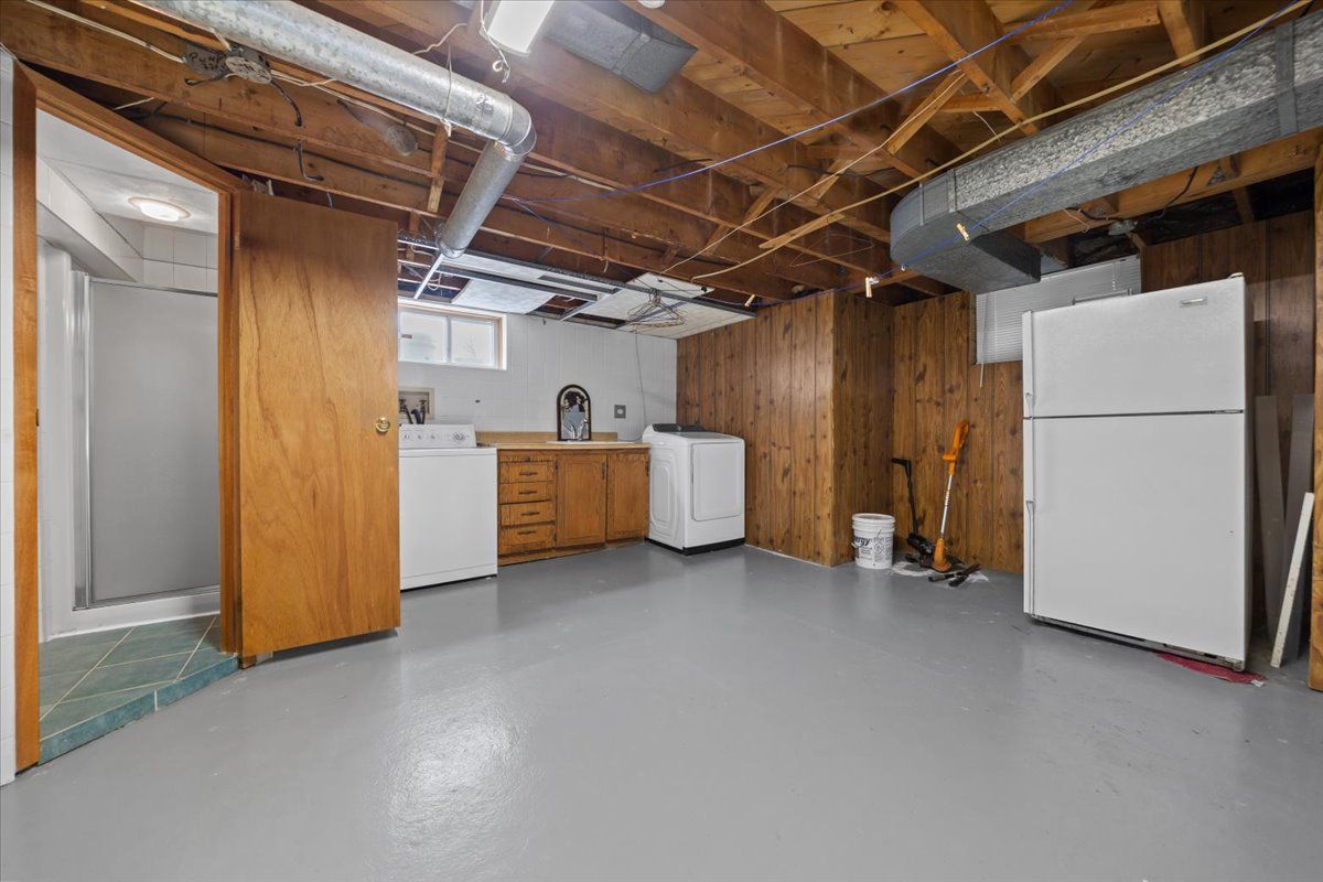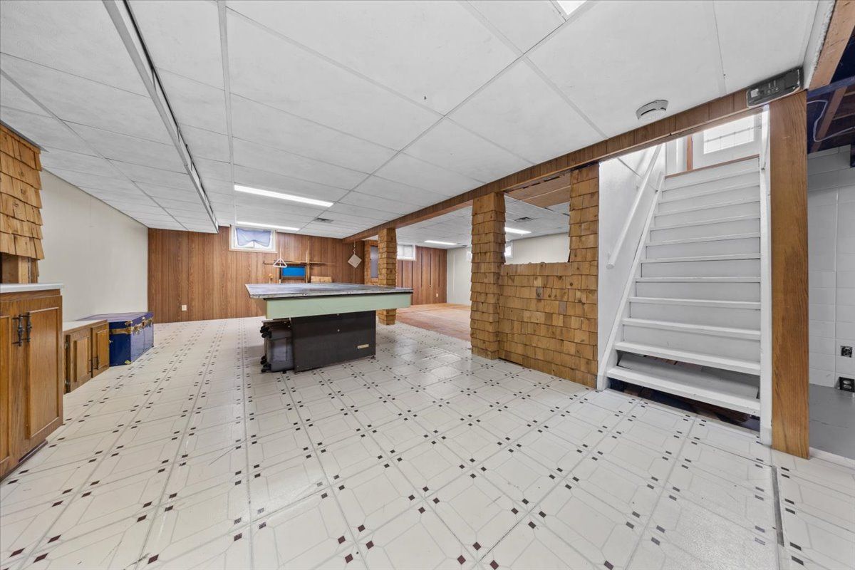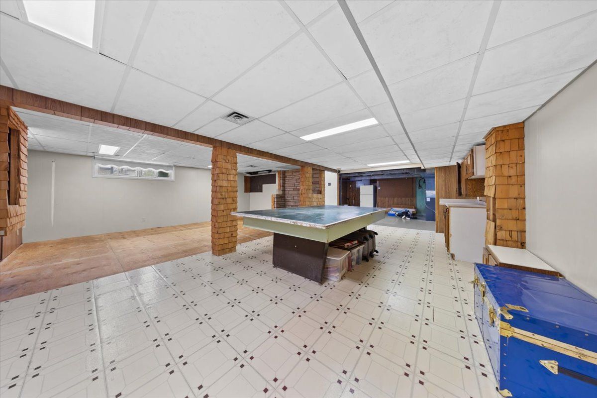 • Spacious basement with recreation room, laundry area, and bathroom.