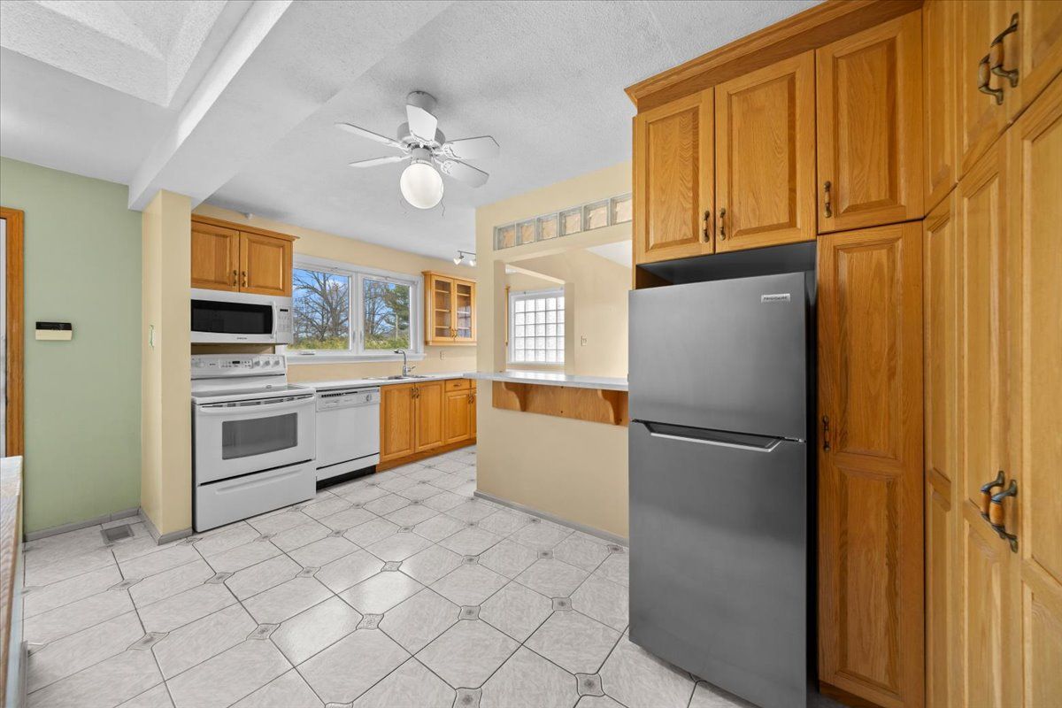 • Efficient kitchen offers a breakfast bar and ample storage space.