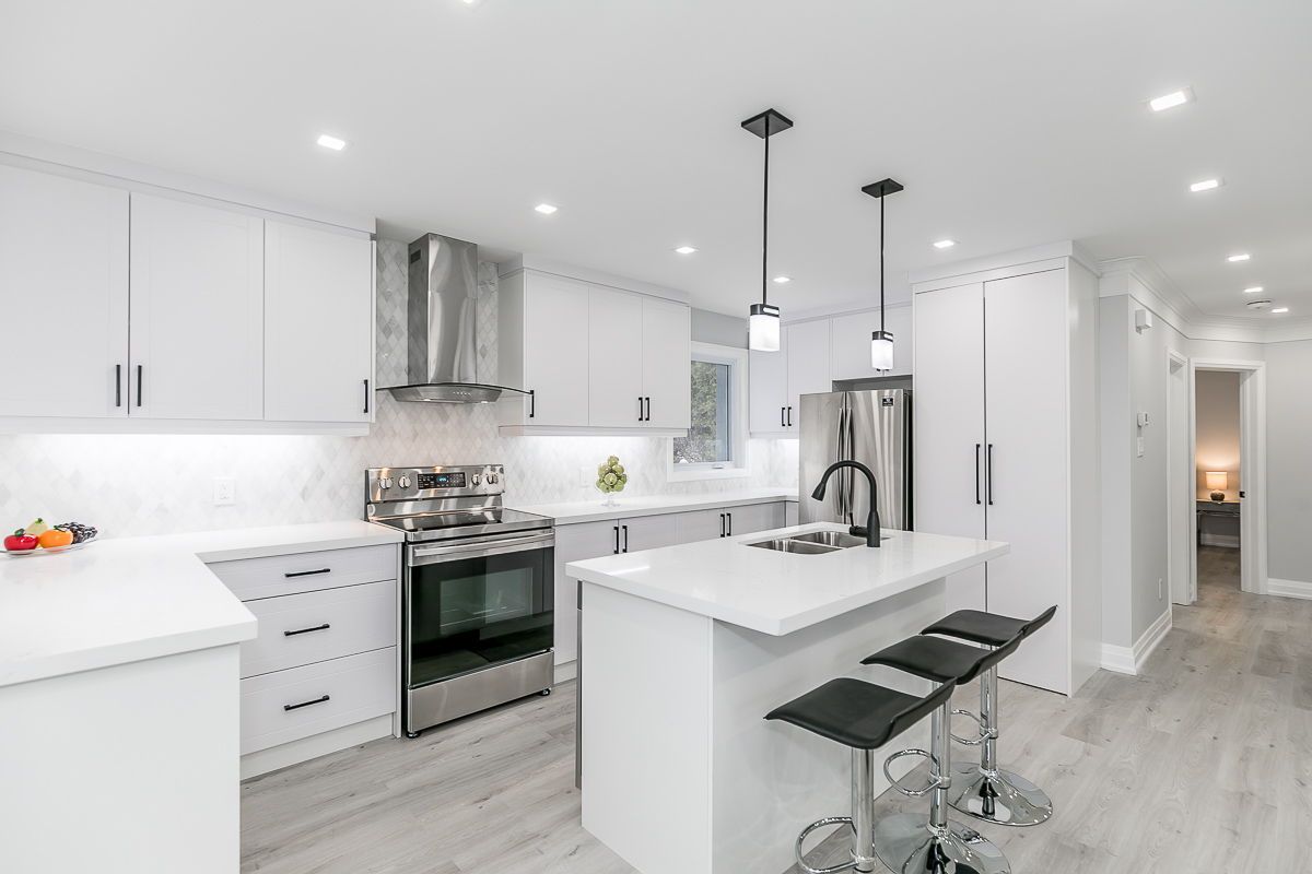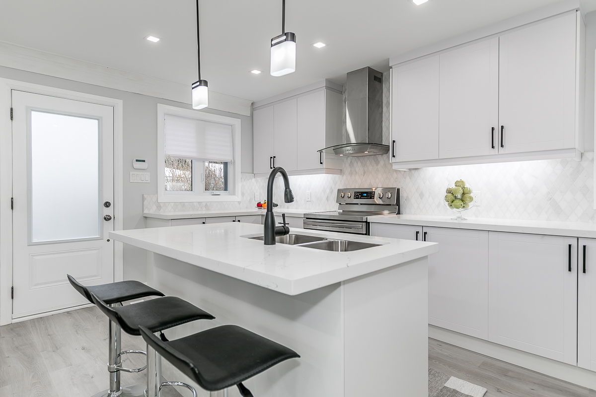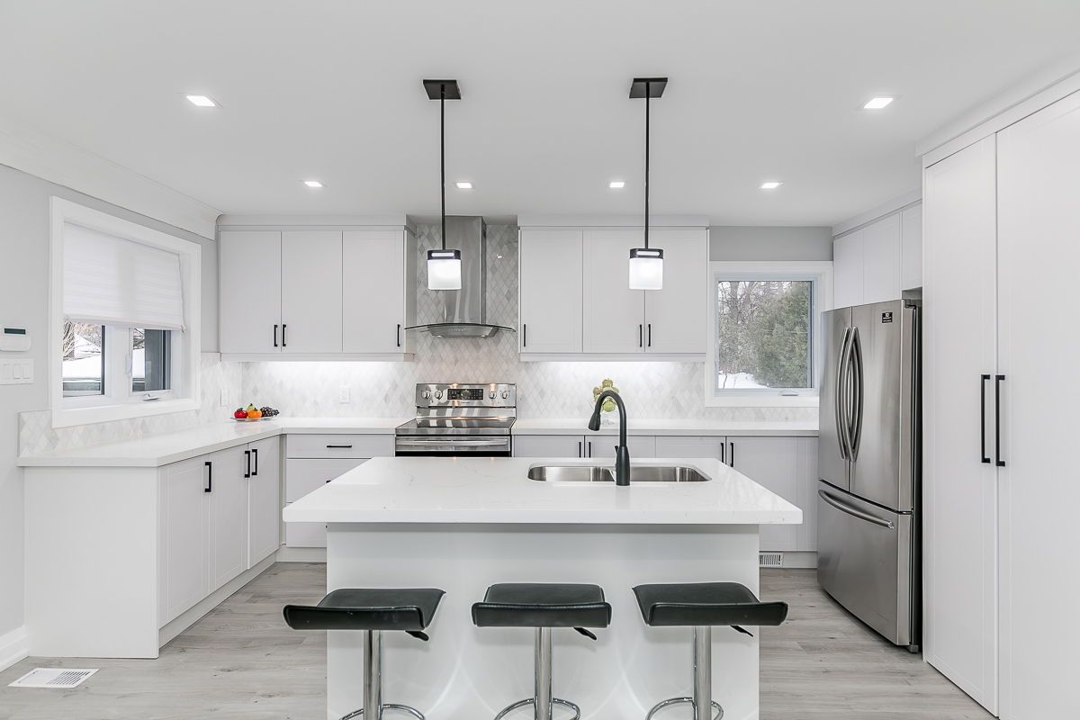 Turn-key legal duplex in barrie's highly sought after allandale neighbourhood, situated on a huge 60 x 165 ft lot, just steps to the go station and the waterfront. Fully renovated in 2020 with permits, this solid raised bungalow offers an excellent opportunity for investors, downsizers, or first-time buyers looking to offset their mortgage with additional rental income. The main floor features a bright, modern layout with a renovated kitchen finished with quartz countertops, led lighting throughout, updated flooring, trim and paint, and private ensuite laundry. The primary bedroom includes a walk-out to a rear deck overlooking the deep backyard. The lower level offers a legal 2-bedroom apartment with a rare ground-level private entrance and patio, modern kitchen, full 4-piece bath, ensuite laundry, and fire-rated/proofed between units. Both units are completely self-contained, making this an ideal income property or owner-occupied duplex with strong tenant appeal. The property is located on a deep lot and zoning allow's for a garden suite. Major improvements completed in 2020 include windows and doors, roof, electrical, plumbing, exterior finishes, and more. Located within walking distance to transit, the go train, lake simcoe, parks, schools, and shopping. A low-maintenance, high-quality duplex in one of barrie's most desirable neighbourhoods.