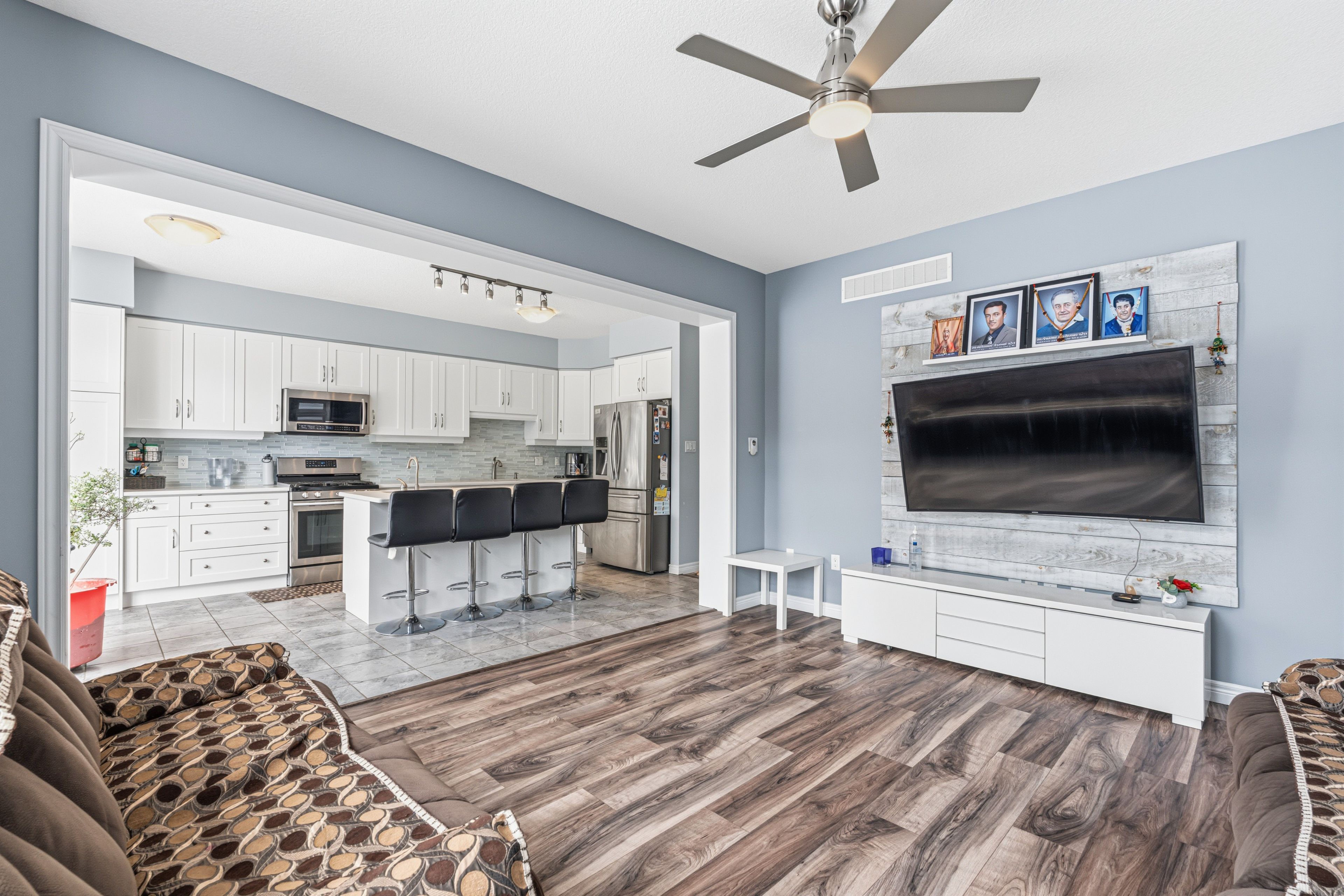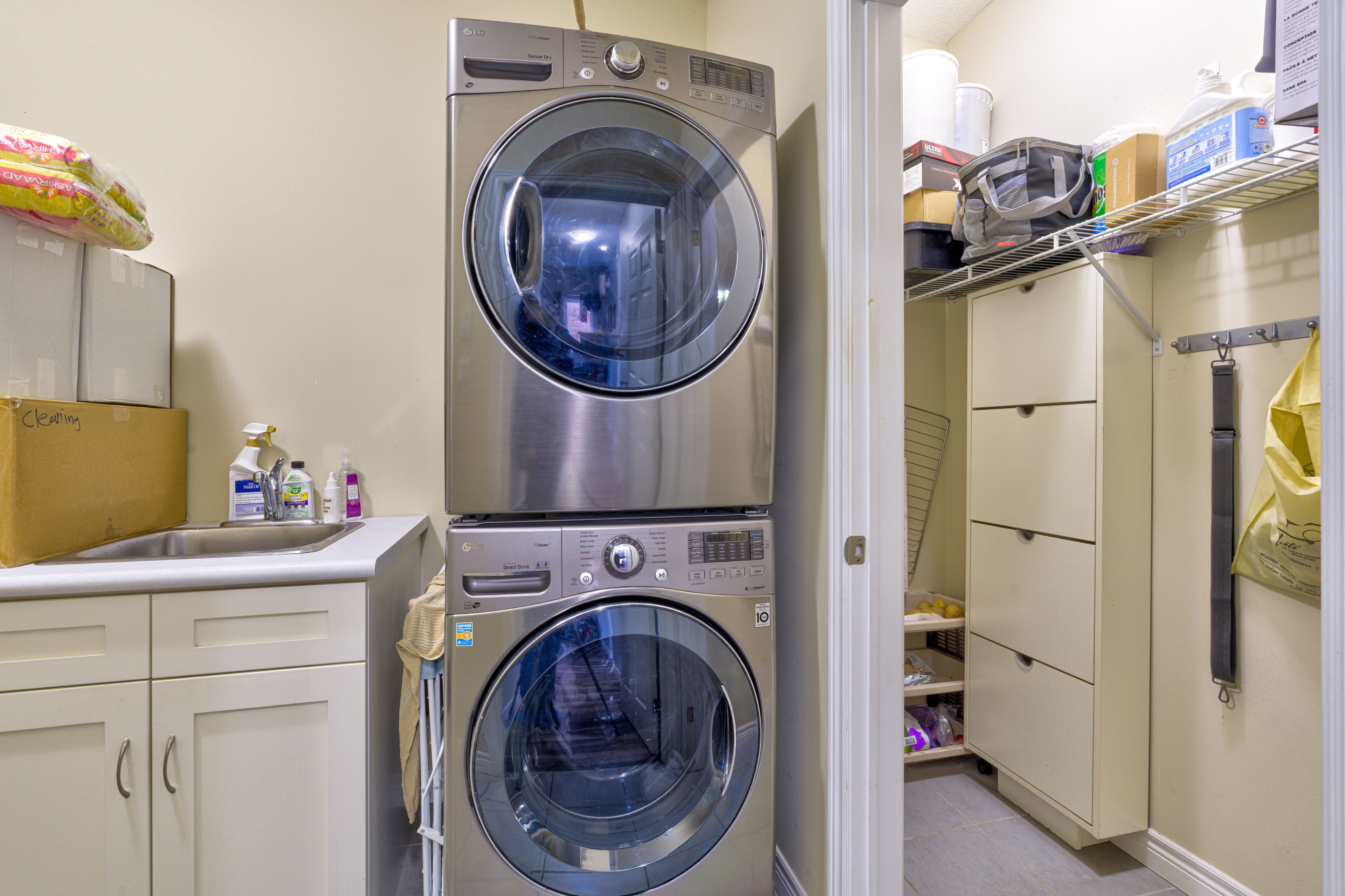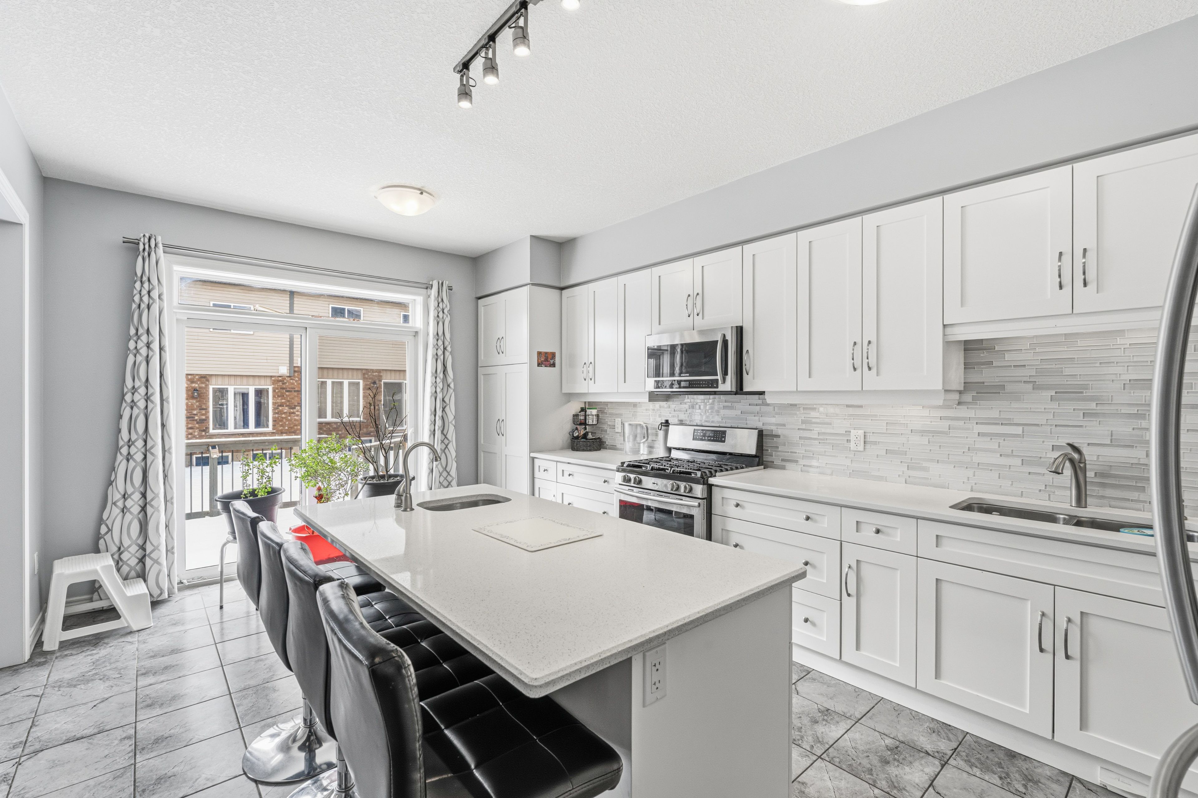• Modern kitchen features quartz countertops and stainless steel appliances.