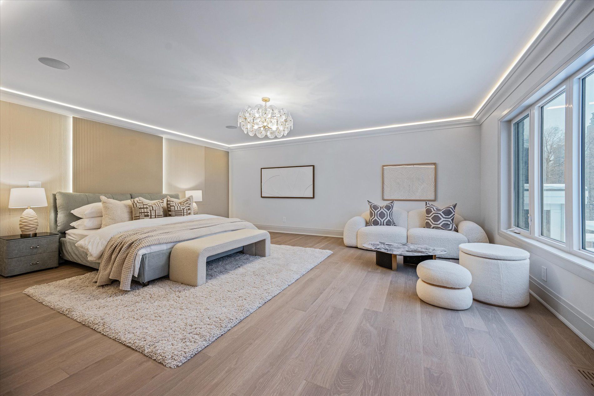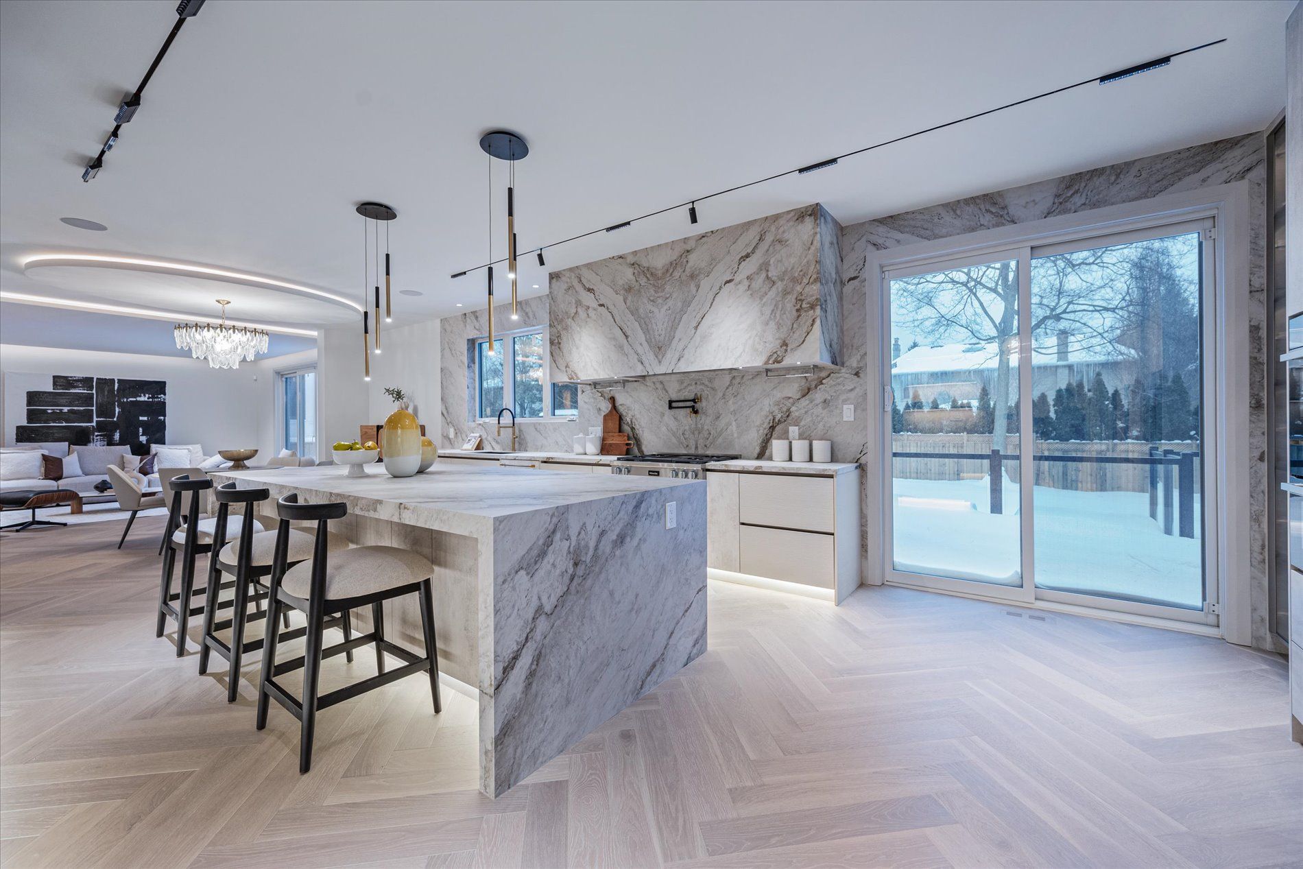 Luxurious newly renovated detached home nestled in the sought-after york mills/st andrews area. Step into this meticulously renovated top-to-bottom detached home, where luxury and functionality blend seamlessly. The grand foyer, adorned with stunning porcelain slab flooring, boasts an impressive25-foot ceiling and a skylight. The spacious living room features a sleek, modern rotating tv wall. The kitchen is a masterpiece, showcasing porcelain slab countertops, stainless steel appliances. Hardwood flooring throughout, new custom built staircase enhances the contemporary aesthetic. Second floor offers a total of five spacious ensuite, the master bedroom complete with double doors, a large walk-in closet with custom-built shelving, and 6piece ensuite. Walkup basement featuring nanny suit, sauna, wet bar, rec room. This home offering exquisite details ,high end finishes and upgrades throughtout. Close to schools, shops, york mills subway, easy access to hwy 401. Extras: all existing appliances: b/i fridge, stove, oven, dishwasher, lightings and windows covering, washer and dryer. Extras: