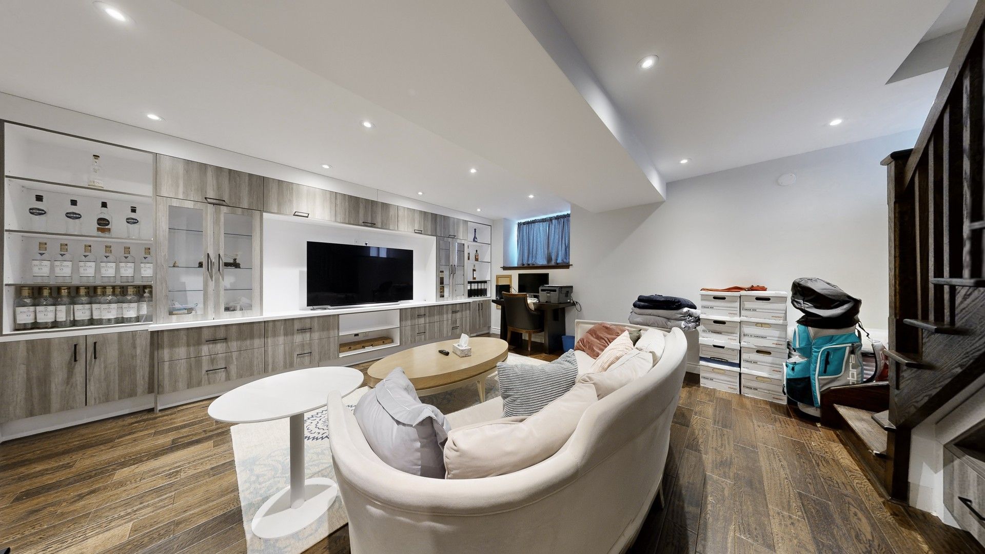 • Finished basement has a spacious recreation room and dedicated laundry area.