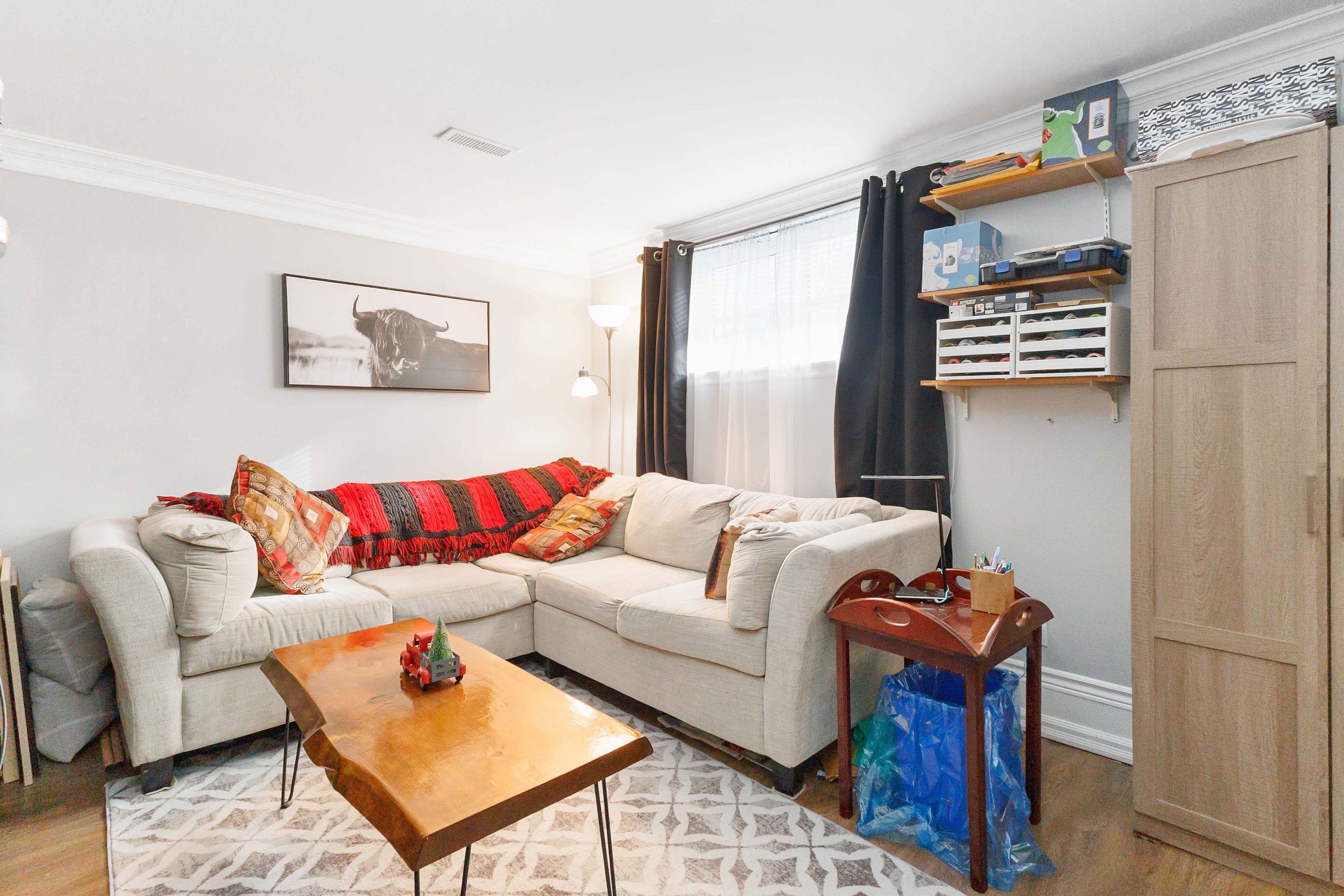• Private fenced backyard with space for gardening and summer gatherings.