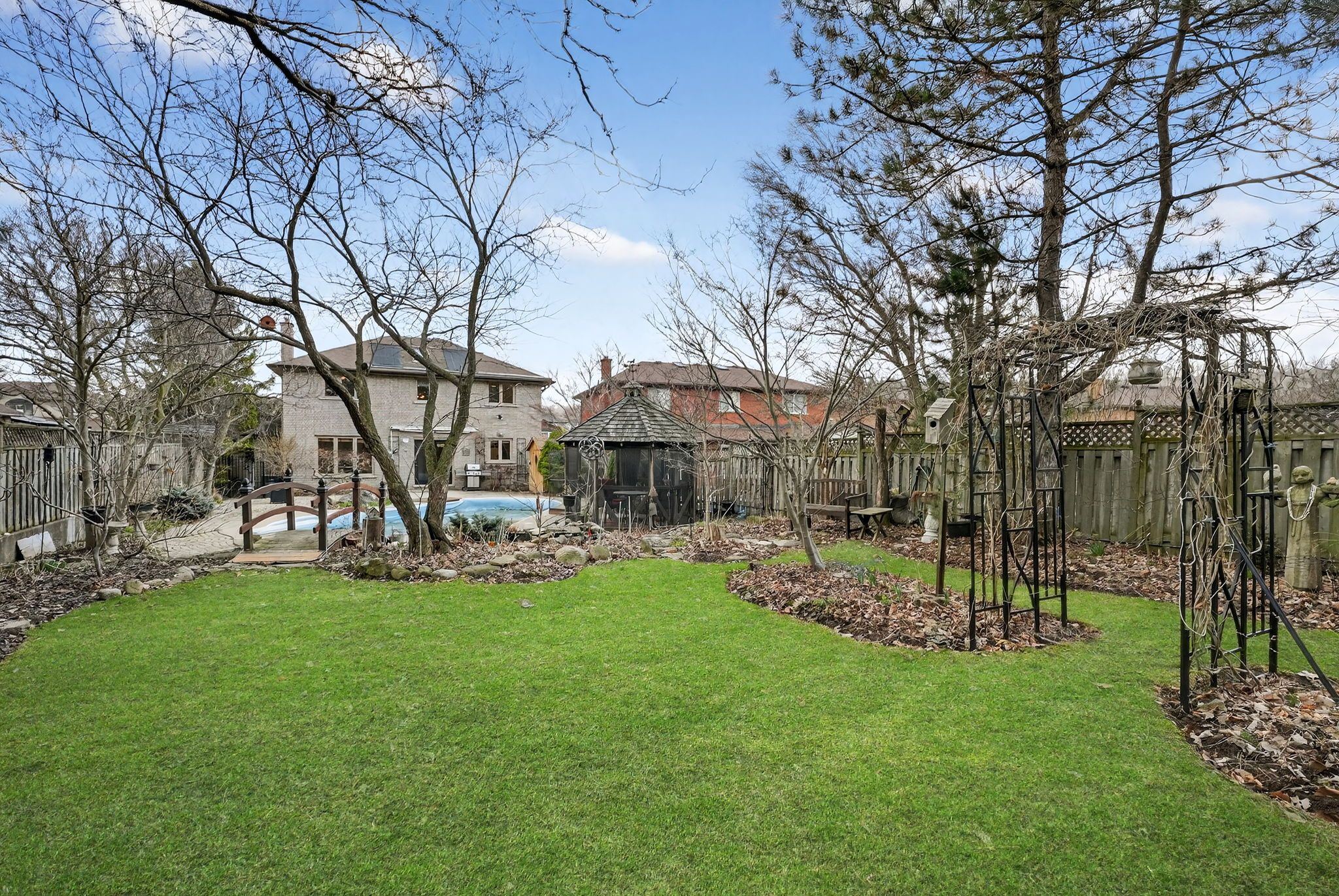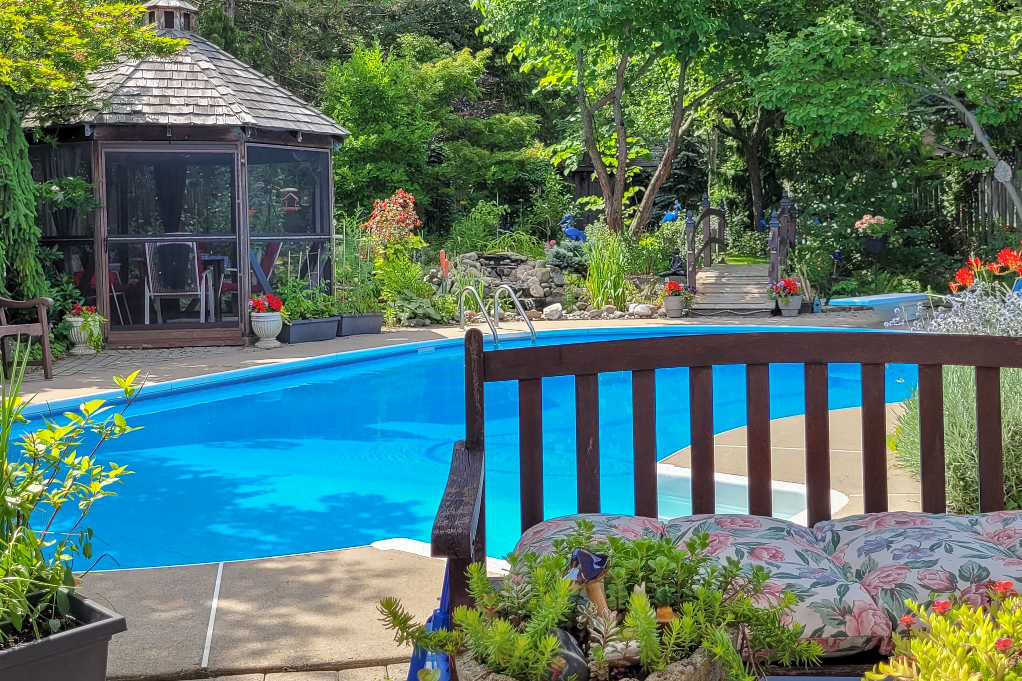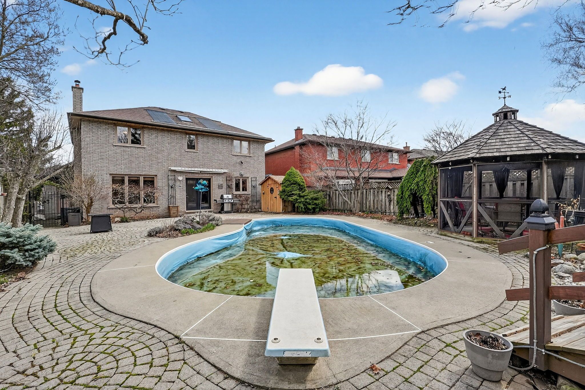 • Backyard features an inground pool and screened-in gazebo.