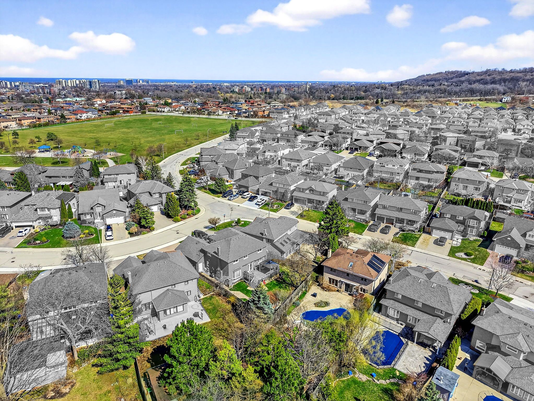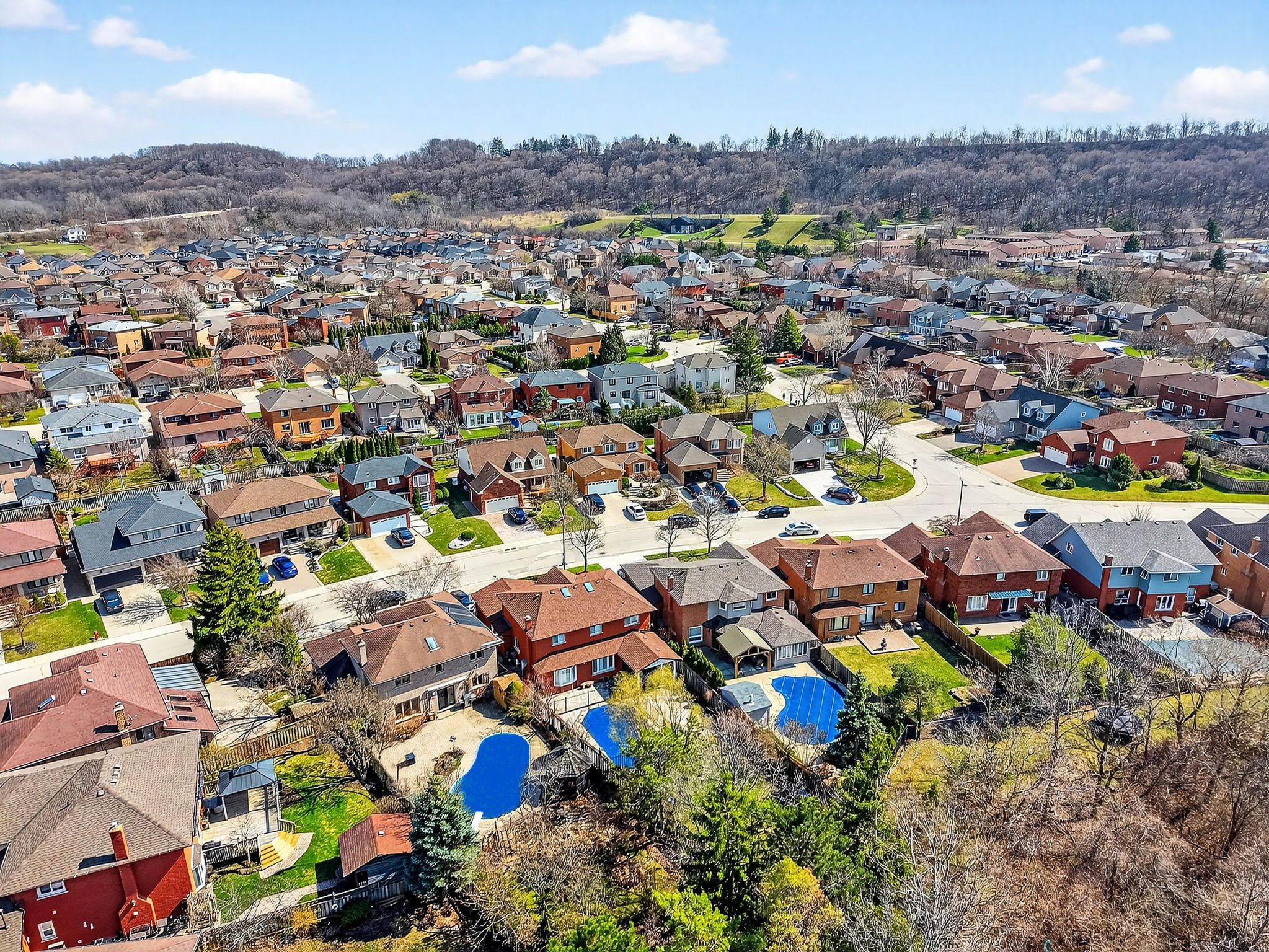 Rare 215-foot deep ravine lot with a private backyard oasis in a sought-after hamilton location. This beautifully maintained 4-bedroom home is set on one of the largest lots in the neighbourhood, offering exceptional privacy with lush, forested views and no rear neighbours-a truly special find in the city. Inside, elegant hardwood floors complement a spacious, well-designed layout ideal for comfortable family living and entertaining, while the finished basement provides additional living space and ample storage. The backyard is a true retreat, featuring an inground pool, expansive interlock patio, and a screened-in gazebo-perfect for summer gatherings or quiet moments surrounded by nature. Thoughtfully landscaped gardens and mature trees enhance the sense of tranquility throughout. Additional highlights include a 2-car garage, 4-car interlock driveway, pool equipment shed, large garden shed, and gated access to the ravine. Located just steps from a large park and close to schools, transit, and everyday amenities, this home offers a rare blend of privacy, space, and convenience. A unique opportunity to own a premium ravine property with exceptional outdoor living.