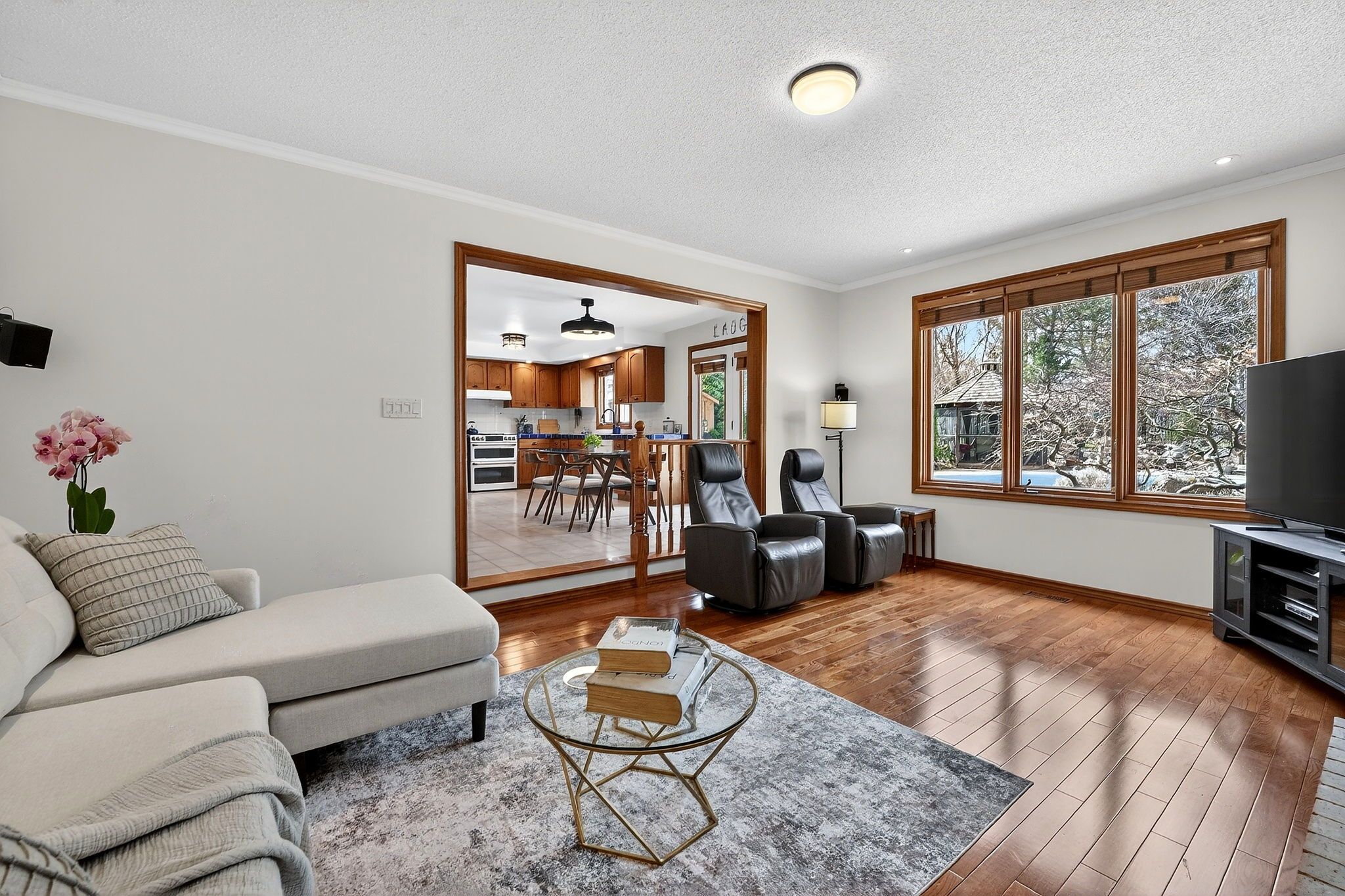 • Elegant hardwood floors and spacious layout for family living.