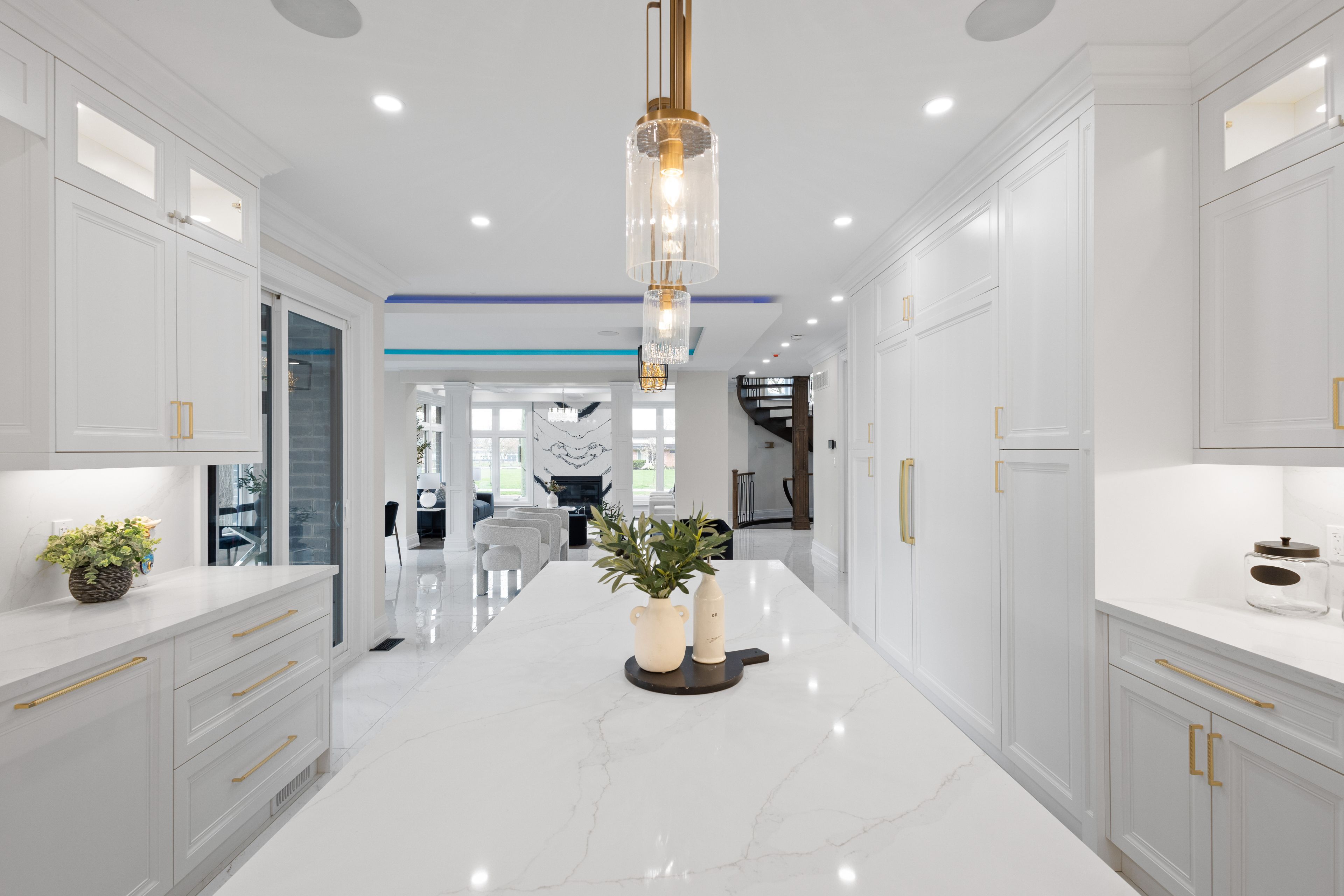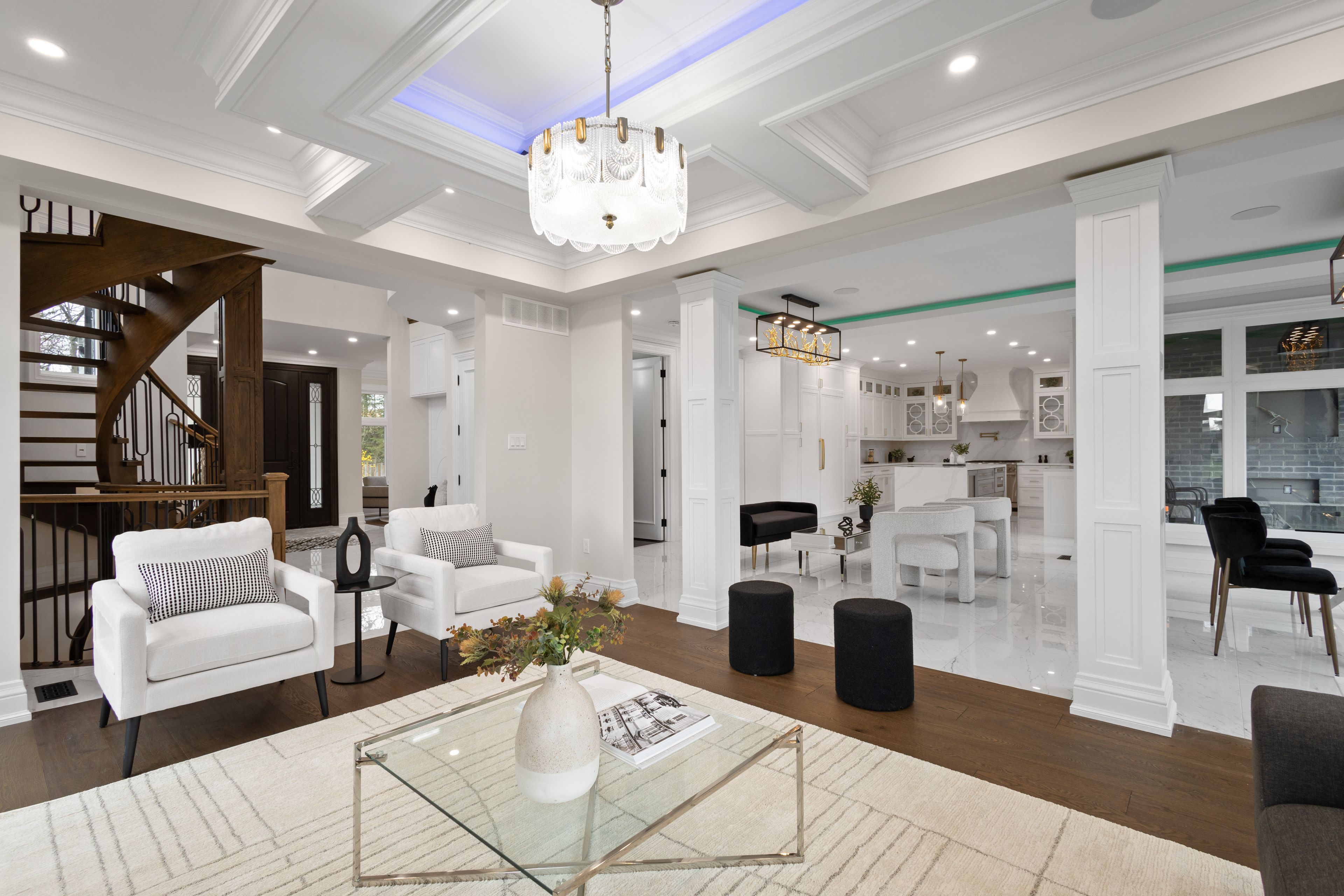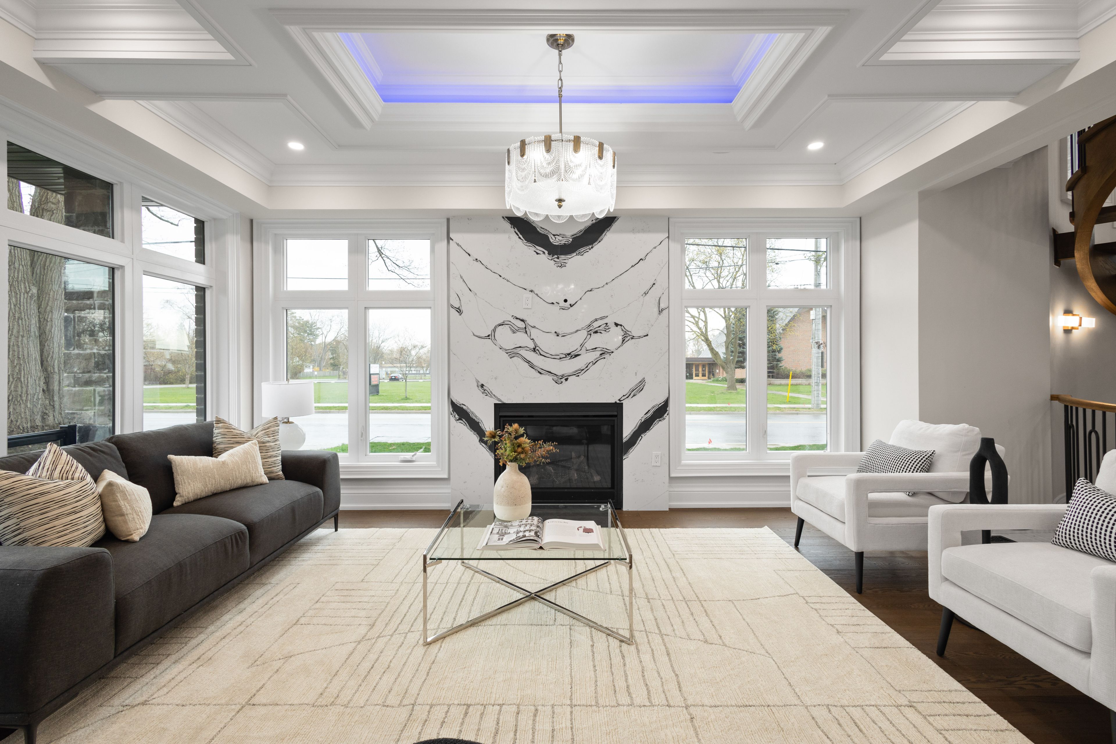 Discover this custom-built masterpiece in prestigious mineola on a premium 75 x 100 ft corner lot with a walk-out basement. Designed for comfort and sophistication, this stunning residence offers 4+2 bedrooms, 5. 5 bathrooms, and over 4,600 sq ft of beautifully finished living space across three levels, with excellent income potential from the lower level. Step through the front entry to soaring coffered ceilings, wide-plank engineered hardwood floors, and a floating spiral staircase wrapped in natural light. The main level integrates design and function with a built-in speaker system, control4 wiring roughed-in, security cameras, ambient led cove lighting, and oversized picture windows creating a warm yet modern aesthetic. The open-concept dining room offers backyard views, while the family room is anchored by a full-height book-matched fireplace wall. The chef's kitchen features an oversized waterfall quartz island, integrated paneled appliances, and custom cabinetry. Upstairs, four spacious bedrooms include walk-in closets and ensuite or semi-ensuite access. The primary suite showcases tray ceilings, ambient lighting, and a spa-inspired 5-piece ensuite with heated floors, freestanding tub, and glass shower with gold trim. The finished lower level offers two separate units. The first unit includes a private exterior entrance, two bedrooms, full bathroom, kitchen, living area, separate laundry, and storage - ideal for multi-generational living or rental income to supplement mortgage payments. The second unit provides extended living space with a wet bar, recreation room, and full bathroom. Two cold rooms provide additional storage and functionality. Exterior highlights include a double garage, professionally landscaped grounds, and a private driveway for convenient parking. Situated in a prime location close to top-rated public and private schools including mentor college, waterfront parks/trails, quick access to the qew, highway 403 and more!