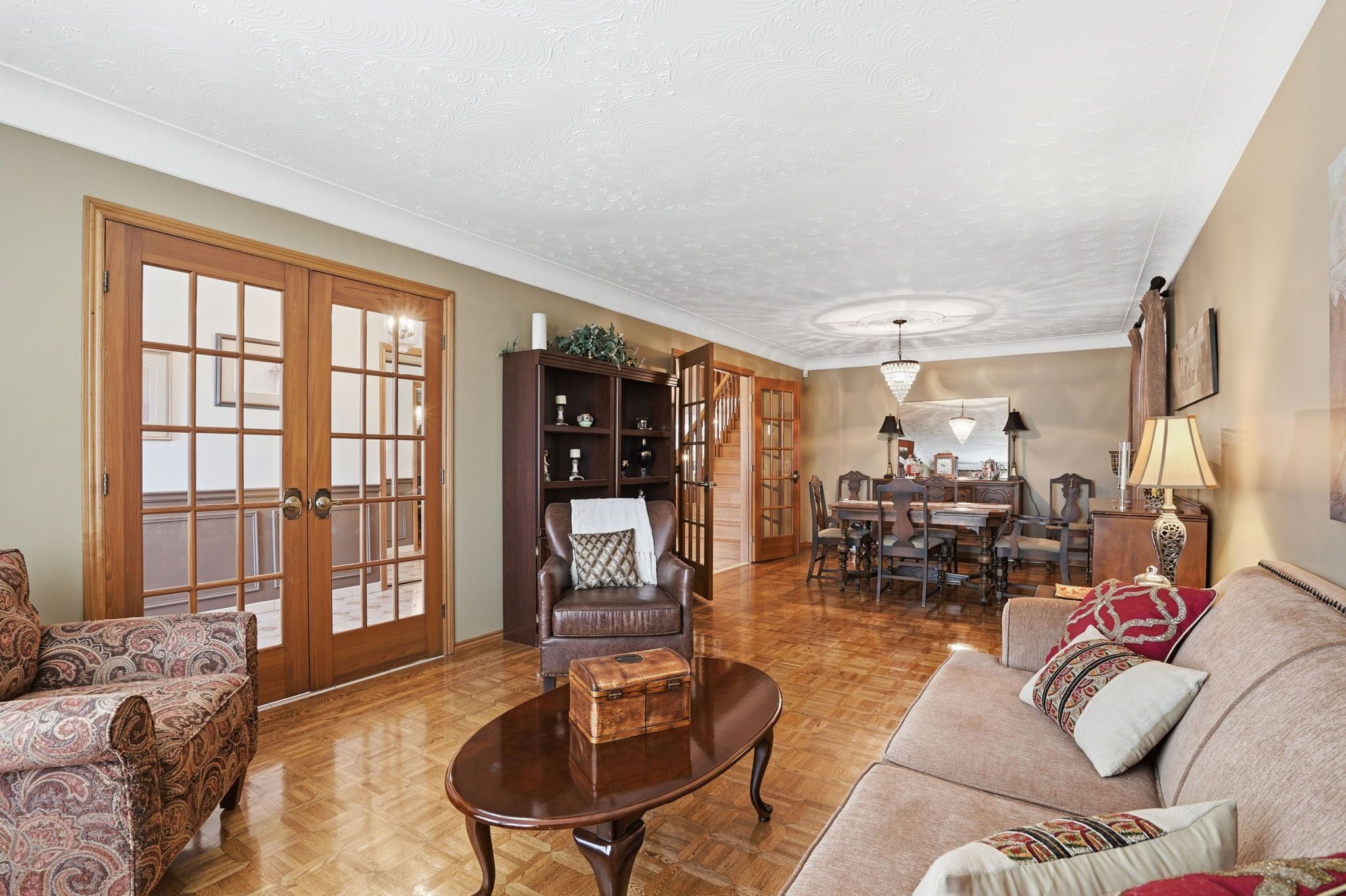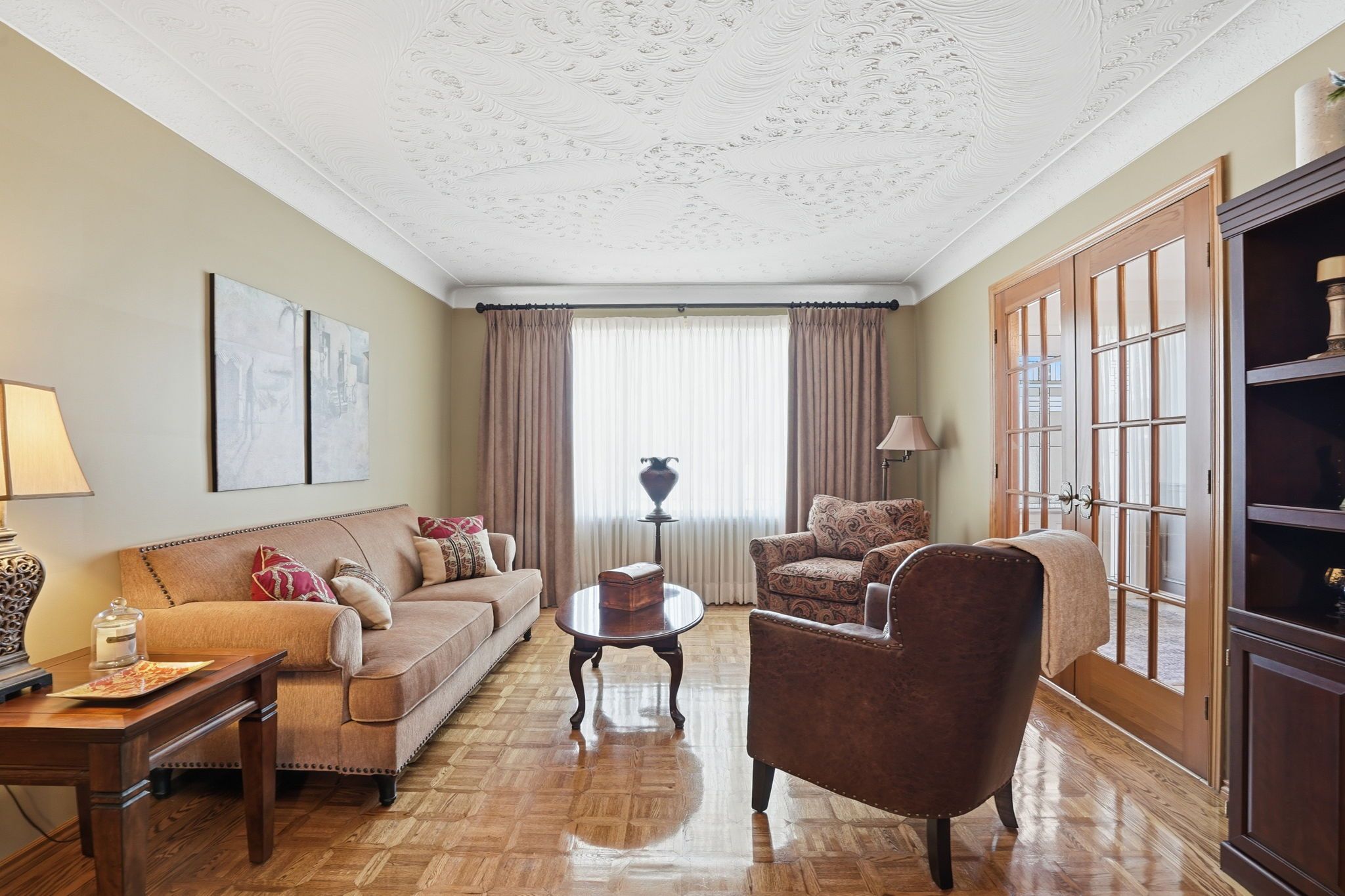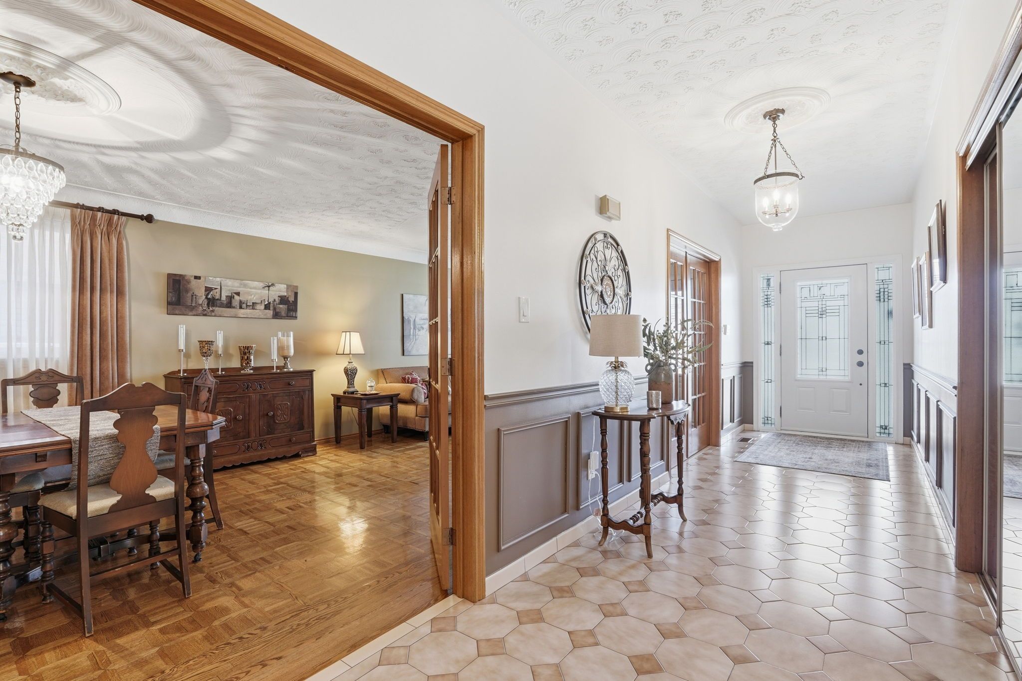 • Double car garage with 12-foot ceilings, perfect for car enthusiasts.