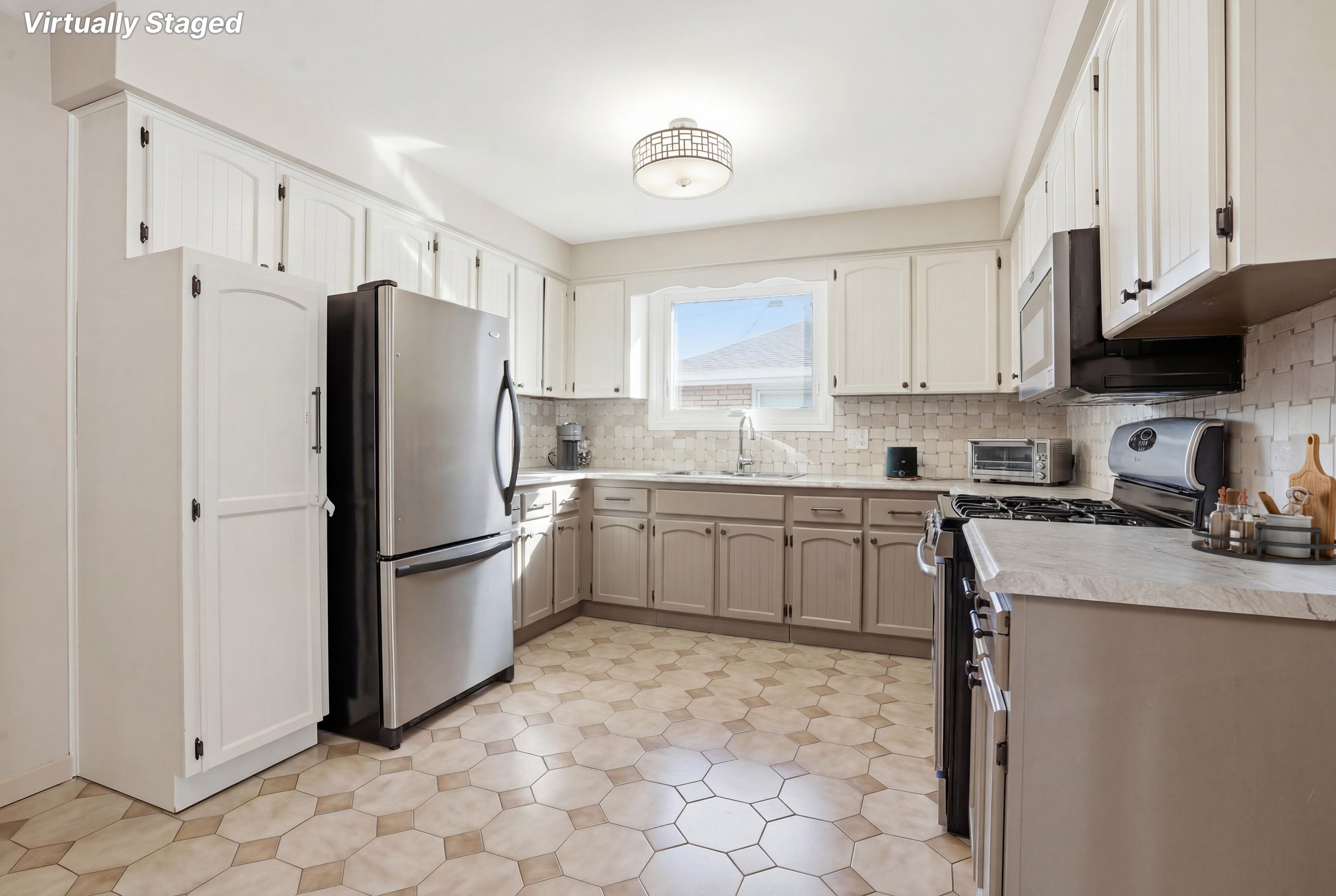 • Open-concept kitchen connects to a spacious family room, great for gatherings.