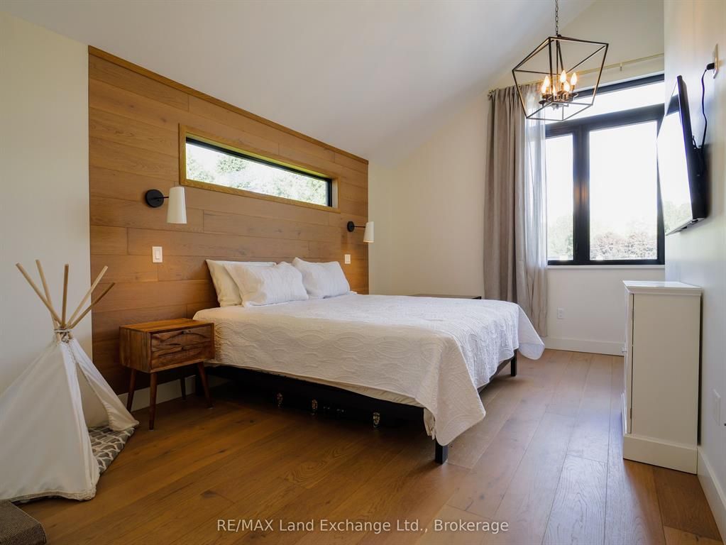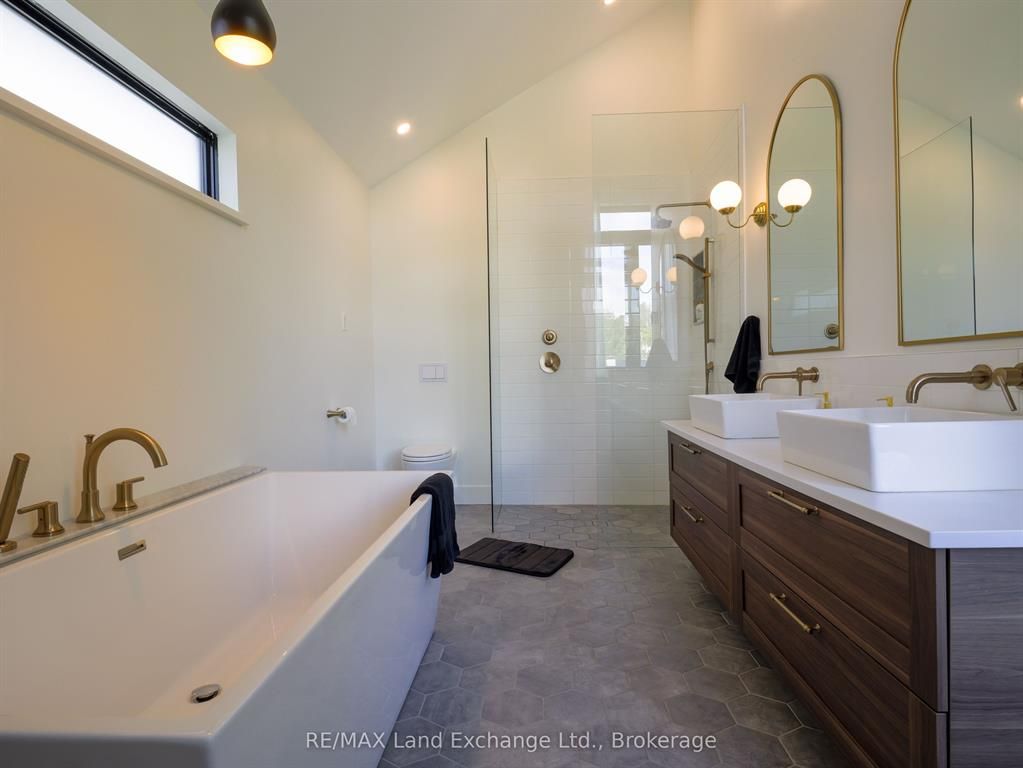 This craftsman-style farmhouse is move-in ready and loaded with upgrades throughout. Built in 2018, the home offers thoughtful design with a self-contained 1-bedroom apartment. It's a perfect layout for a family, an income property or multigenerational living. The spacious house measures 1893 square feet above grade, and the basement is 1391 sq ft. The 50' x 150' property offers both serenity and convenience, just a short walk to the shores of lake huron and backs onto a strip of land zoned ep (environmental protection). The ground level has an impressive foyer and mudroom with entry to the garage. The main floor has a fabulous kitchen with a large pantry and an island perfect for casual dining. The open-concept dining and living room features a vaulted ceiling, providing ample space for families who love to host and entertain. Beautiful white oak hardwood floors are throughout the main house. The large patio door leads to a covered deck for seasonal relaxation. There are two large bedrooms on the main floor, a 4-piece bathroom featuring a tiled tub. The primary suite is located on the second level for a luxurious retreat, featuring a vaulted ceiling, a walk-in closet and a 5-piece spa-like bathroom. The basement is divided into two sections: a separate one-bedroom apartment with kitchen/living room, in-suite laundry, and a private entrance from the garage; and the second section is designated for the main house, which has a laundry/utility room and gym/family room. The apartment has separate heating/cooling controls and ductwork. This beautiful home is located in a peaceful, well-established neighbourhood with all the amenities of town just minutes away. Explore the 3d tour and book an appointment to appreciate it in person.