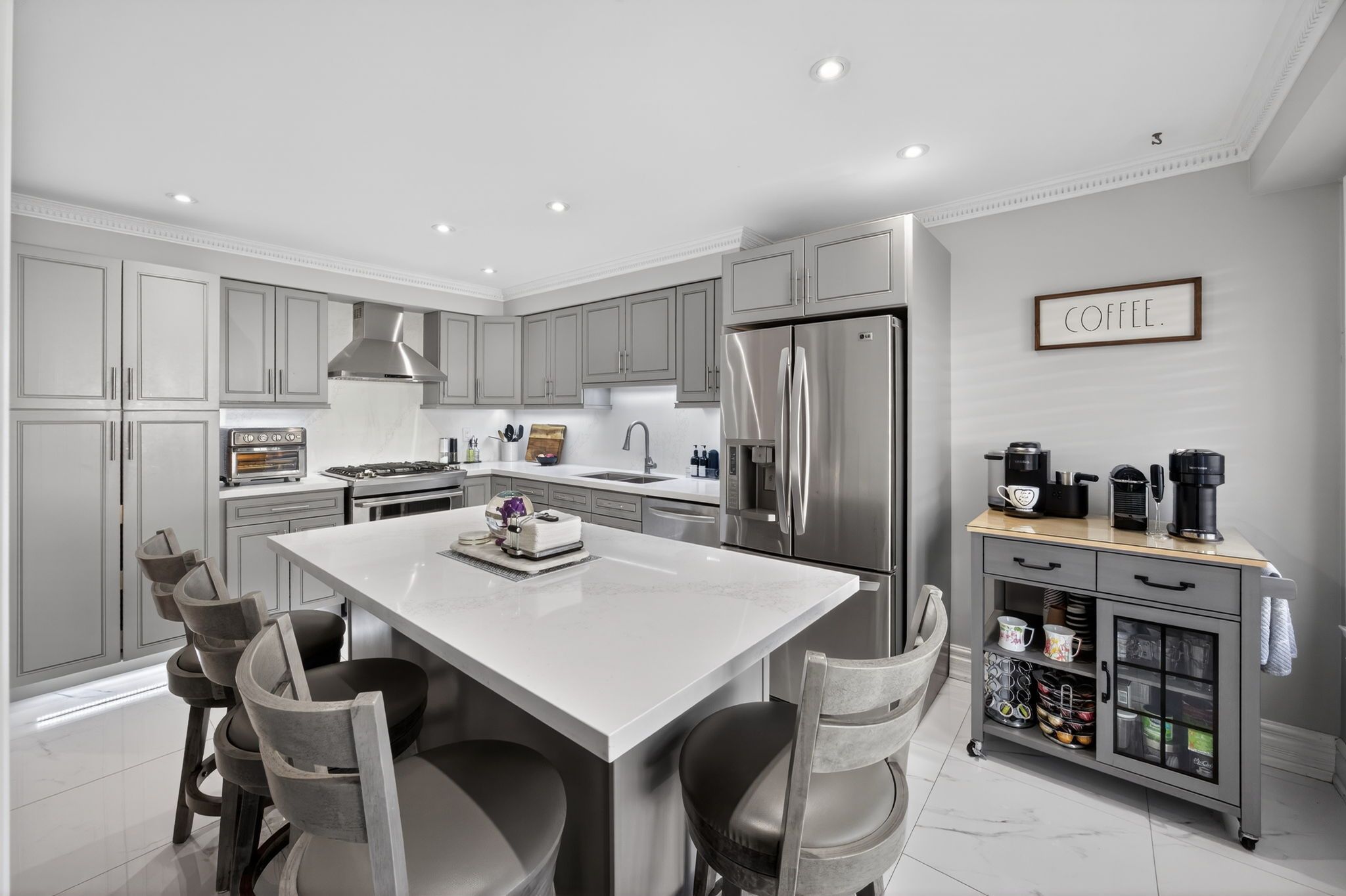 • Renovated chef's kitchen features quartz counters and stainless steel appliances.