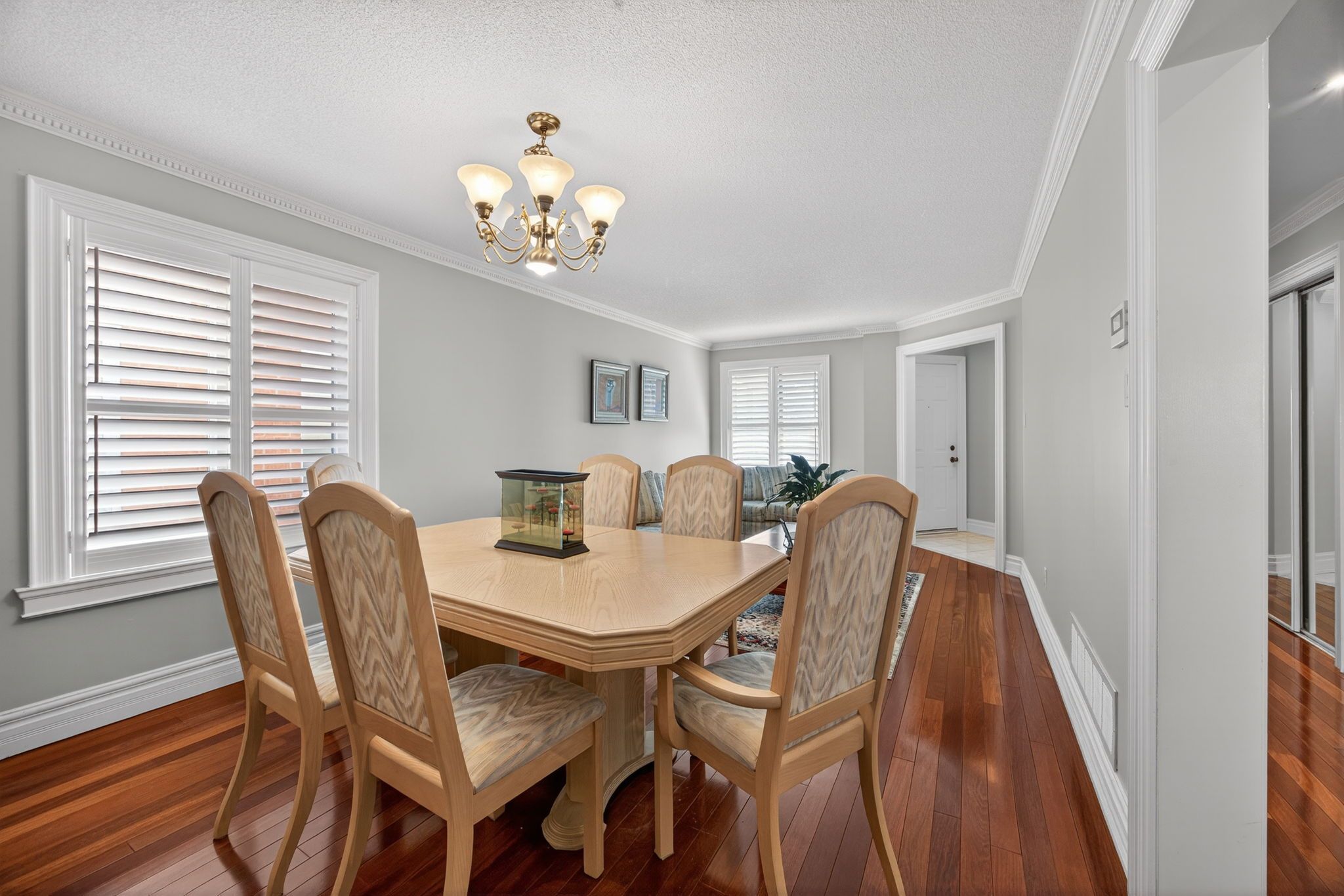 Pride of ownership! Beautifully maintained by the original owners, over 3,100 sqft of available living space & fully finished separate entrance in-law suite with full driveway no sidewalk 4 car parking. Nestled in the family friendly community of northwood park! Main level features brazilian cherry hardwood flooring, crown moulding, & large windows with shutters throughout. Formal living & dining room make entertaining seamless for any occassion, just steps away from the kitchen. Beautifully redone chef's kitchen (2024) features large centre island, quartz counters & backsplash, undermount cabinet lighting, stainless steel appliances including gas stove, & walk-out to private 2 tier deep yard.. Cozy family room with gas fireplace overlooks backyard with lots of natural light shining in throughout the day! Upper level retreat features 4 spacious bedrooms, primary bedroom boasts 4 piece ensuite with quartz counters, & large walk-in closet. Plus 3 additional spacious bedrooms with hardwood flooring, built-in closet organizers & ceiling fans. Additional 3 piece bathroom has glass stand up shower with built-in seat. Fully finished lower level with separate entrance, full kitchen, spacious living room, & 1 bedroom with 4 piece ensuite is perfect for extended family to stay or for additional income! Stamped concrete walk-way to side entrance & fully fenced, private backyard features large composite wood deck with railings & electric awning, garden shed for additional storage, & lots of green space for children to play! Covered front porch is perfect for enjoying your morning coffee. All windows replaced ('19), central vac, entire kitchen renovated ('24), security system included. Beautiful curb appeal with soffit lighting & insulated 2 car garage with inside access & additional storage space! Ideal location close to all major amenities including grocery stores, schools, sheridan college, ravenscliffe parkette, golf courses, restaurants, shopping, & easy access to hwy 407!