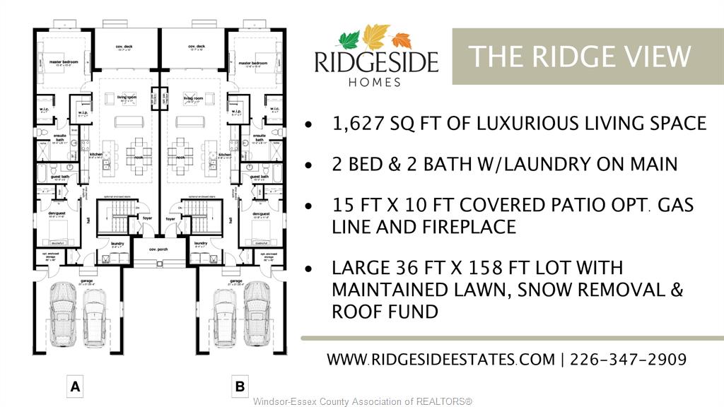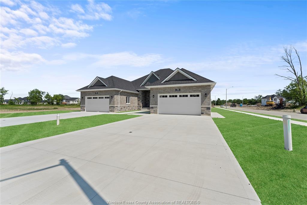 Model home open every sunday 1-4pm - qualified first-time homebuyers save tens of thousands off list price - ask for details! - welcome to cottam, just 18 mins to windsor! These luxurious ranch-style twin villas by ridgeside homes offer 2 floorplans and are built with the highest quality of materials and craftsmanship. Incredible curb appeal with full brick/stone exterior, 4 car conc. Driveway, rear privacy fencing, sodded yard & front yard sprinkler system incl. Enjoy 9ft ceilings w/10ft tray & ambient led lighting, engineered hardwood flooring and porcelain tile, custom cabinetry, 9ft island w/quartz counters, walk-in pantry, ceramic b-splash, living rm w/n. G. Fireplace & 12ft patio doors to cov'd conc. Patio, main-floor laundry, prim. Suite w/tray ceiling, walk-in clst, dble vanity, ceramic/glass shower. Finished basement package gives ~1600 sq ft of addt. Living space incl. 2 bdrms, 1 full bthrm, wet bar and nat. Gas fireplace. Note: approx. $160/month for lawn maint., snow removal & roof fund. Hst incl. W/rebate to builder. Peace of mind with 7 yrs of new home warranty w/tarion!