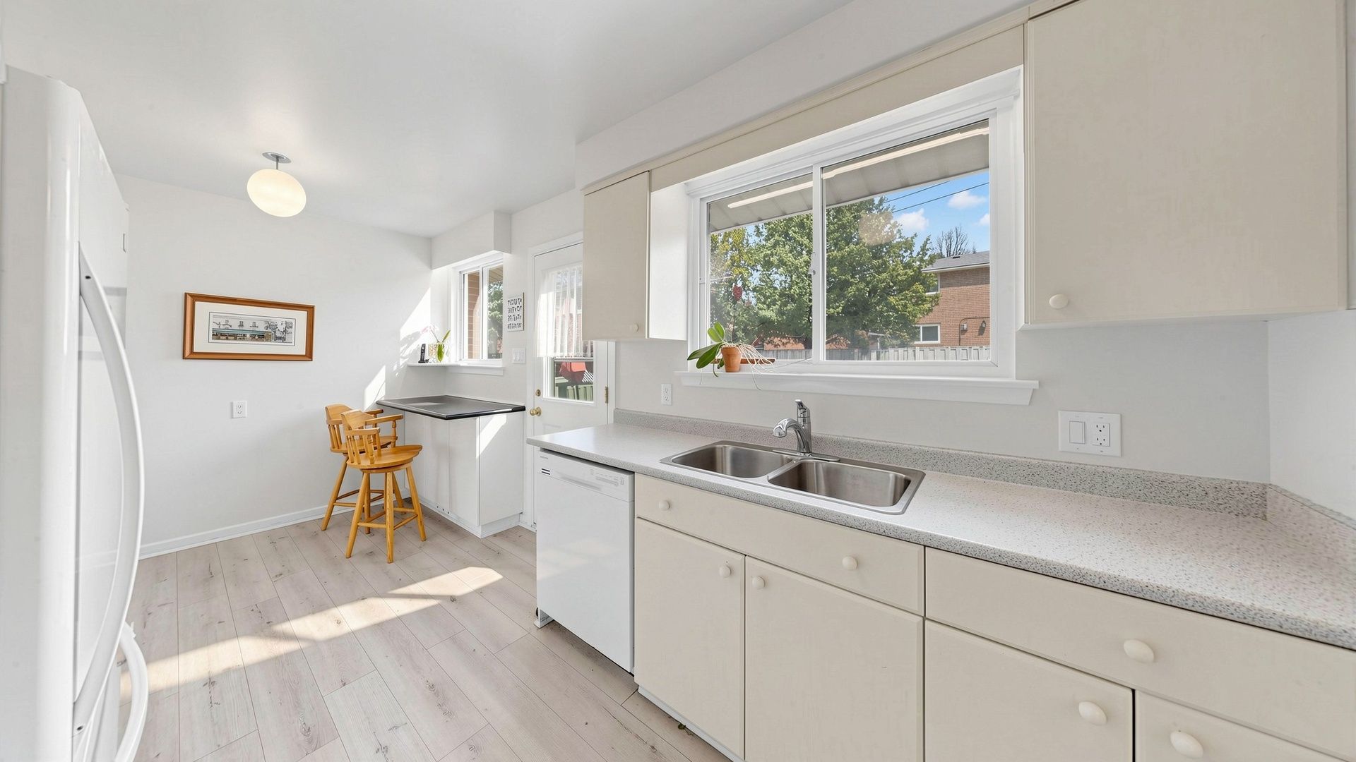 • Spacious eat-in kitchen with walk-out to deck for outdoor enjoyment.