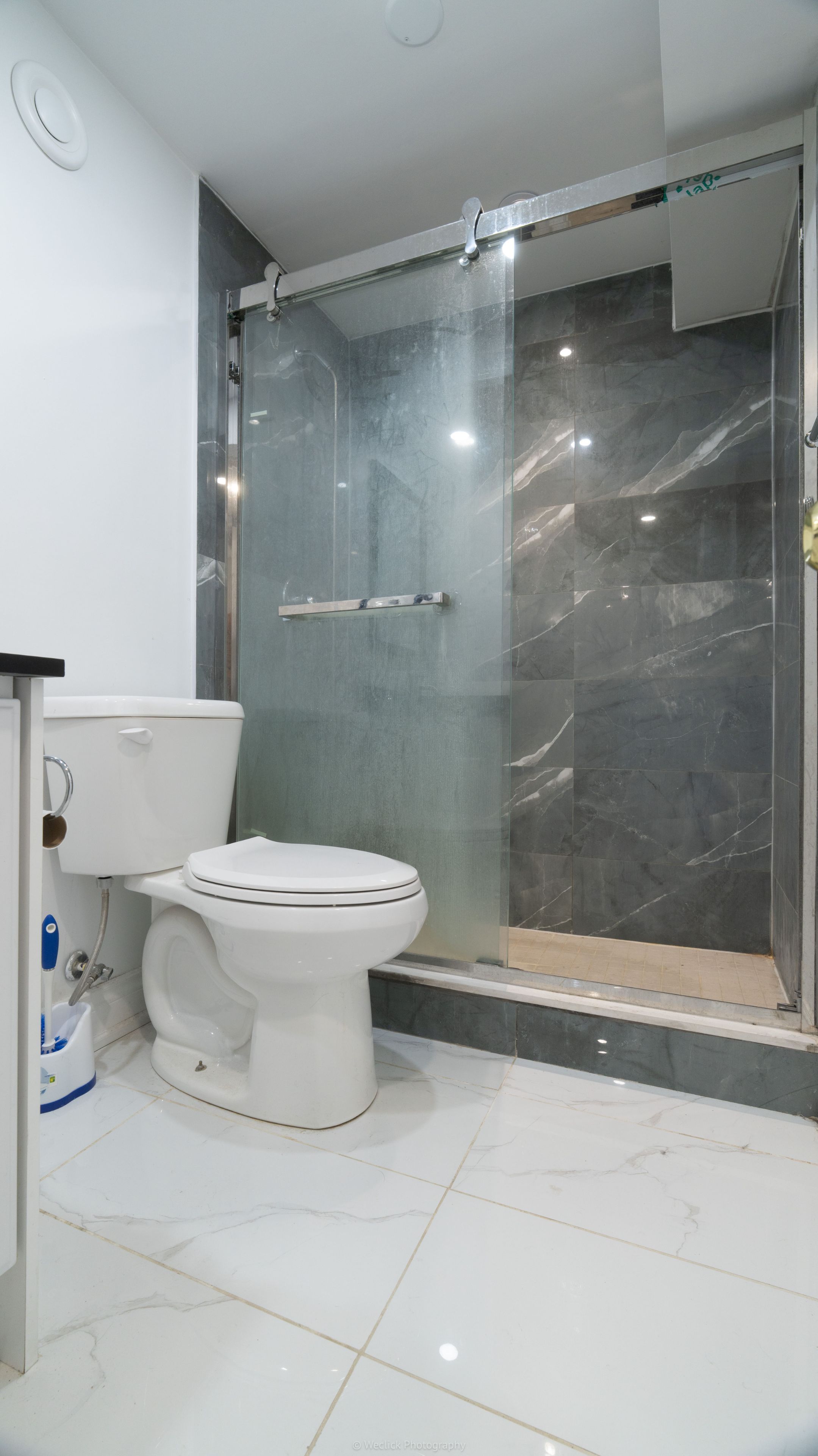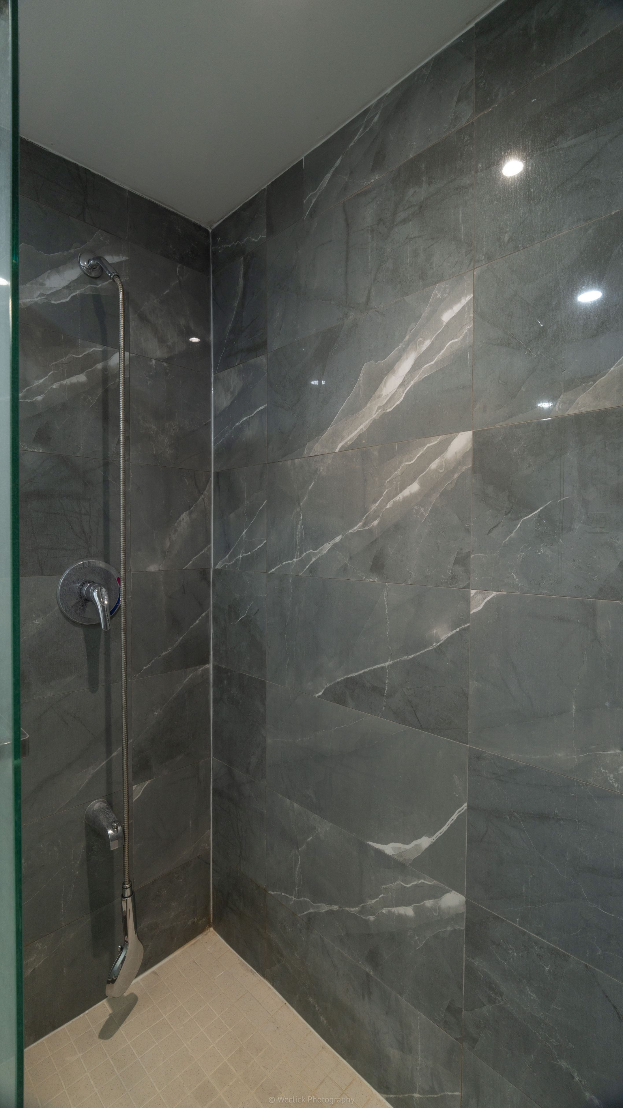 • Large shower and easy-to-clean vinyl laminate floors.