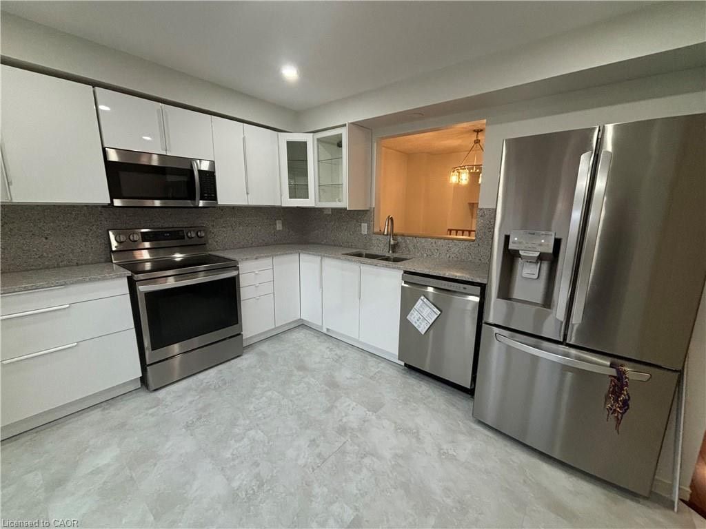 Impressive newly renovated (2024) 1800 sqft townhome located in a prime west hamilton. Features 3 spacious bdrms and 3 modern bathrooms, including a master ensuite. The new kitchen boasts stylish finishes including stainless steel appliances, granite countertops, and elegant ceramic tiles. Enjoy convenient walkouts from both the family room & living room, leading to a beautiful backyard, ideal for entertaining or relaxing outdoors. Strategically located close to the linc, hwys, shopping & transportation. Rsa