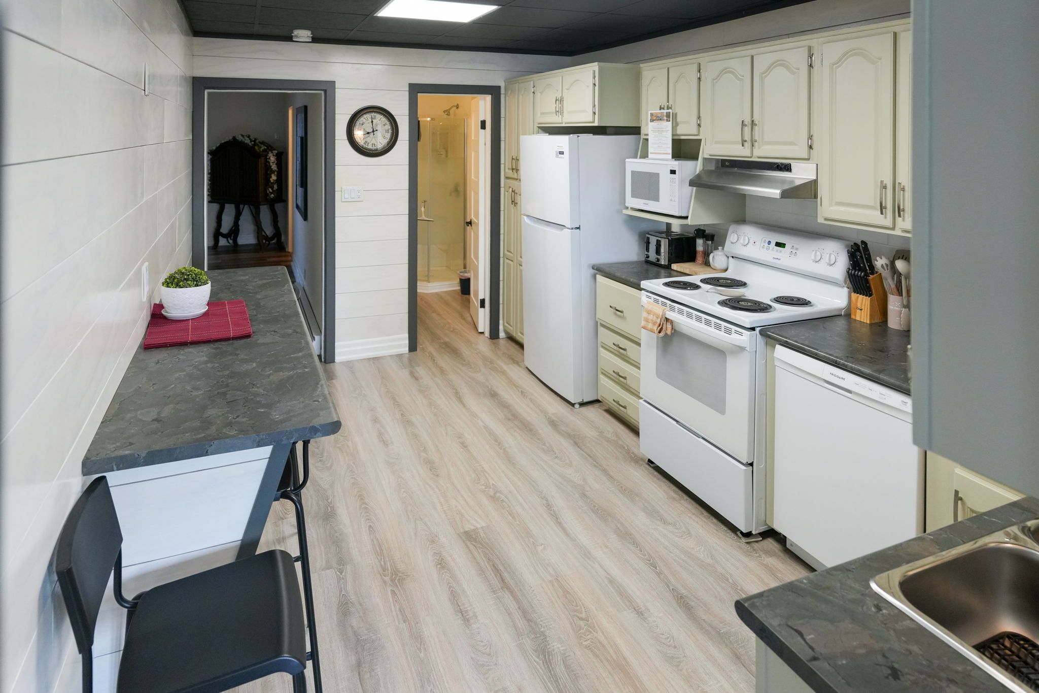 Right in the historic downtown core, this spacious second-floor commercial space puts your business at the centre of everything that makes meaford tick - and within easy reach of the broader region. The location works hard for you. A block from the marina and georgian bay, across from meaford hall, and kitty-corner to the town's striking new public library. Independent shops, great restaurants, and a genuinely walkable streetscape are all steps away - the kind of setting that makes client visits easy and lunch breaks worth taking. Thornbury, collingwood, and owen sound are all a short drive when the day calls for it. At over 1,440 square feet, the space is larger and more versatile than most in this market. Currently configured for residential use - with a bay-windowed front room, a generous open area, a functional kitchen with eat-at bar, two full bathrooms, and private laundry - it transitions readily to a range of professional uses. Zoned commercial, it suits a design studio, wellness practice, legal or financial office, or any business that values a polished, well-finished environment. Two private entrances, front and back, give the space a clean operational flow - useful for separating client-facing and staff access. A large rear deck adds an outdoor element that few commercial spaces in the area can offer.