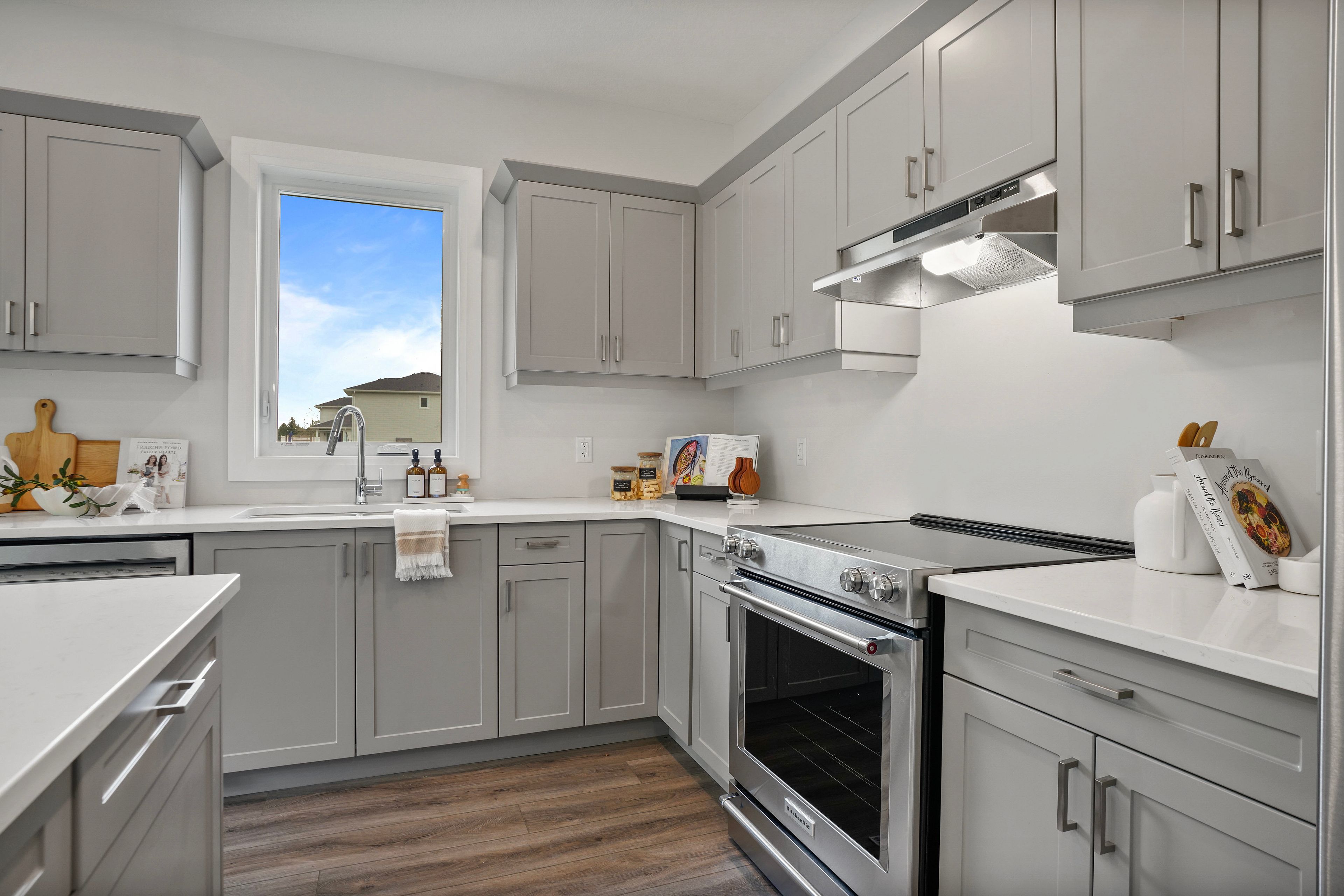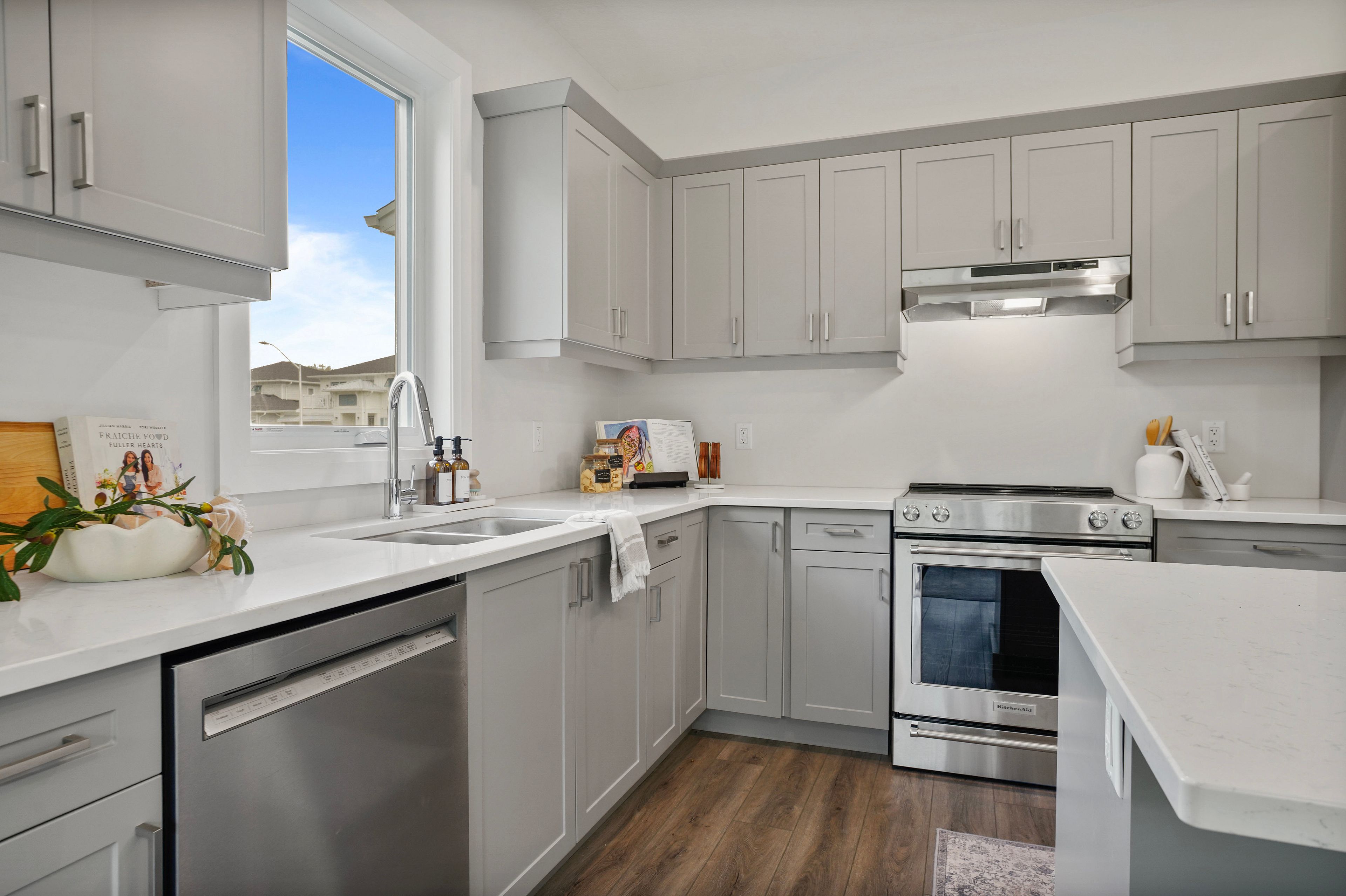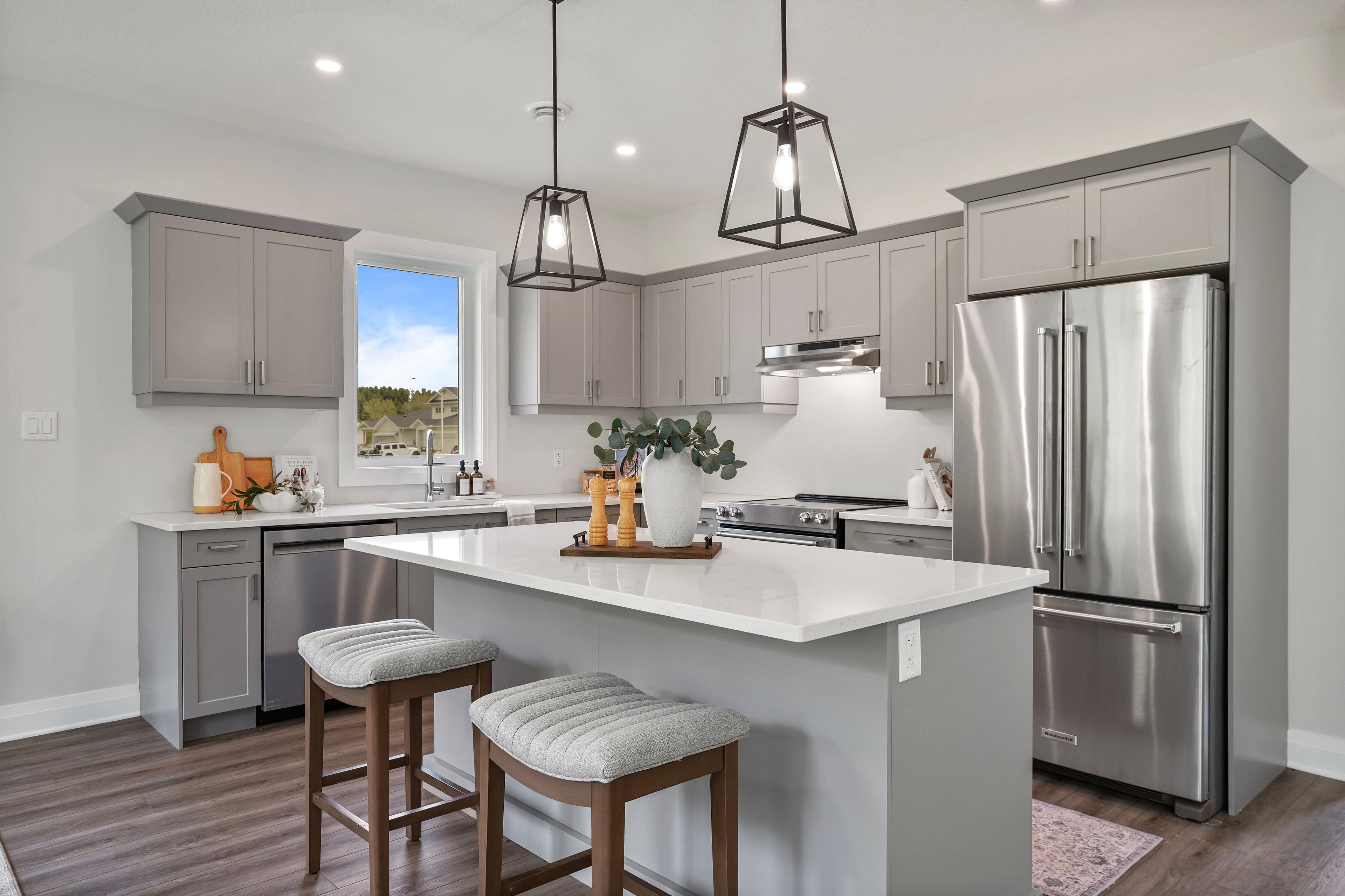 • Upgraded luxury vinyl plank flooring and quartz countertops throughout.