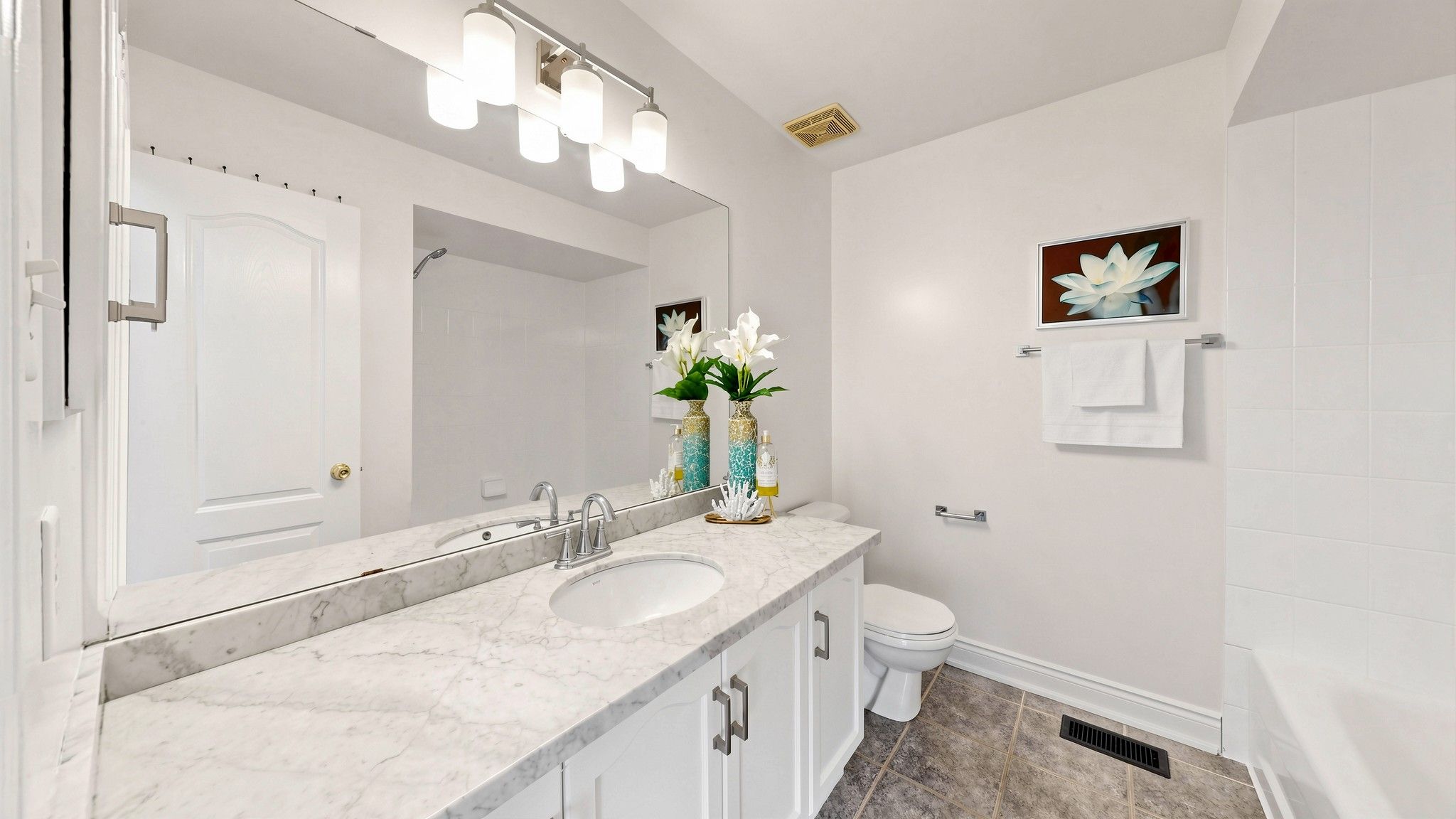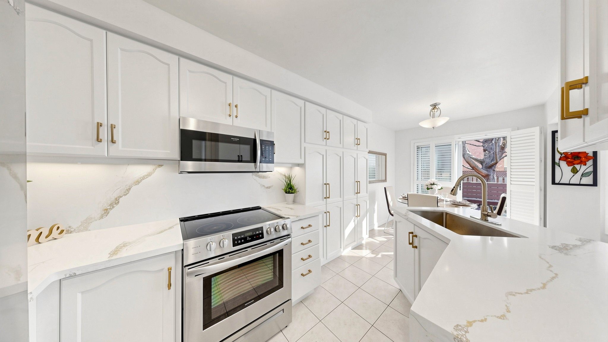 • Fully renovated kitchen with quartz countertops and stainless steel appliances.