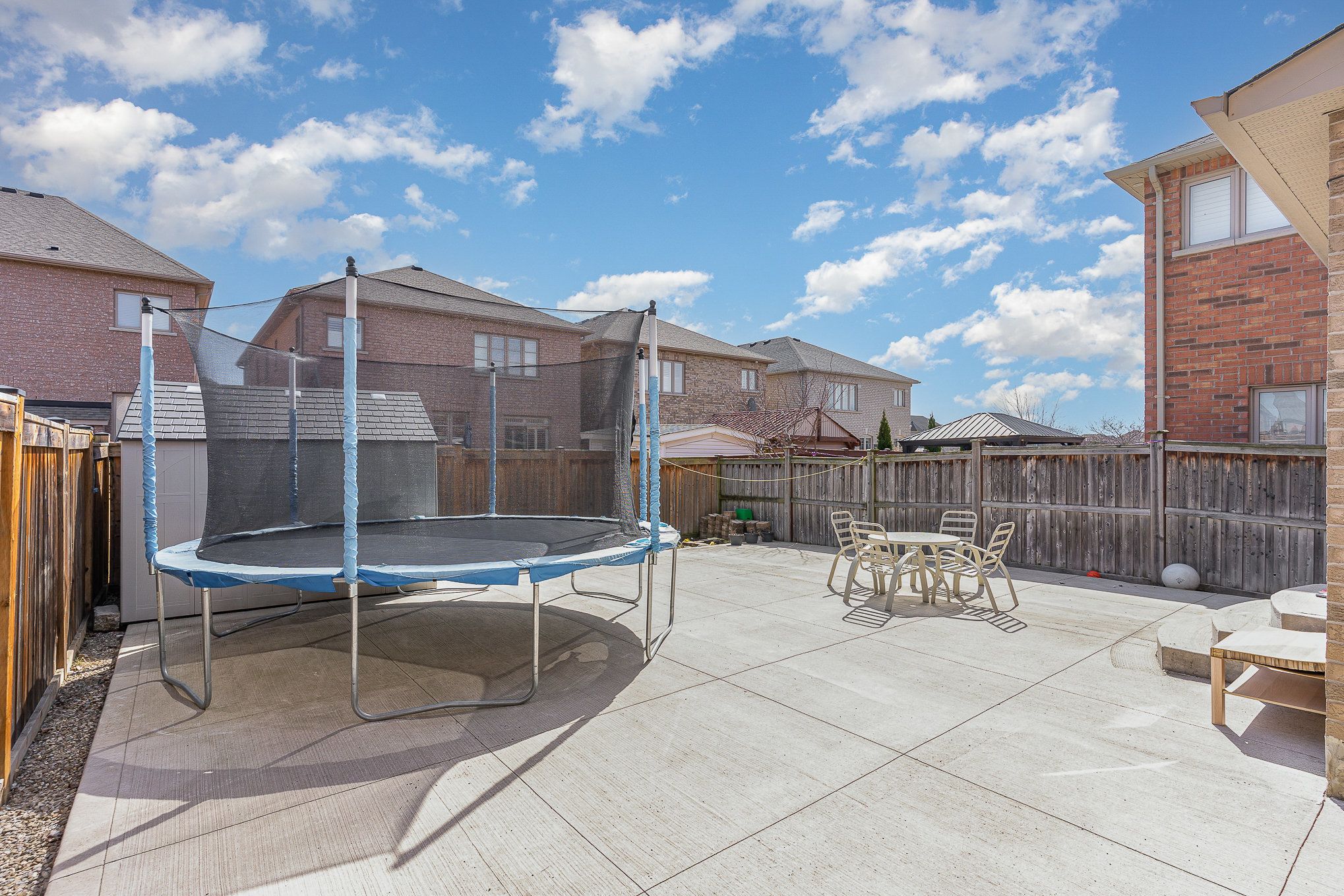 • Backyard features a sleek concrete patio for outdoor entertaining and summer evenings.
