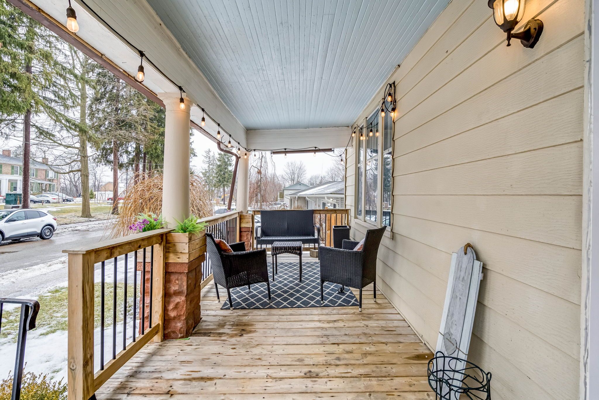Welcome to 72 walnut street, a century home full of character and potential in the heart of the historic courthouse district. This 3 bedroom home offers a solid foundation for those looking to build equity in a quiet, friendly neighbourhood. The main floor features a bright foyer, separate dining room, and a kitchen updated by previous owners. Upstairs are original hardwood floors and a spacious 5-piece bathroom with heated floors. Major updates include second-floor windows and electrical (2022), leaf filter system (2023). The seller reports a dry basement with no history of moisture or foundation issues. A full walk-up attic provides excellent potential for future finished living space. Enjoy the iconic covered front porch or take a short walk to the elevated park and local trails. This prime location offers easy access to the edge of town for quick travel to london and port stanley. The property includes a fenced yard, a mutual driveway, and a long-standing friendly agreement with neighbours on centre street to park in the laneway to the west. If you are looking for a home with soul and great bones in a sought-after historic pocket, this is a must-see.