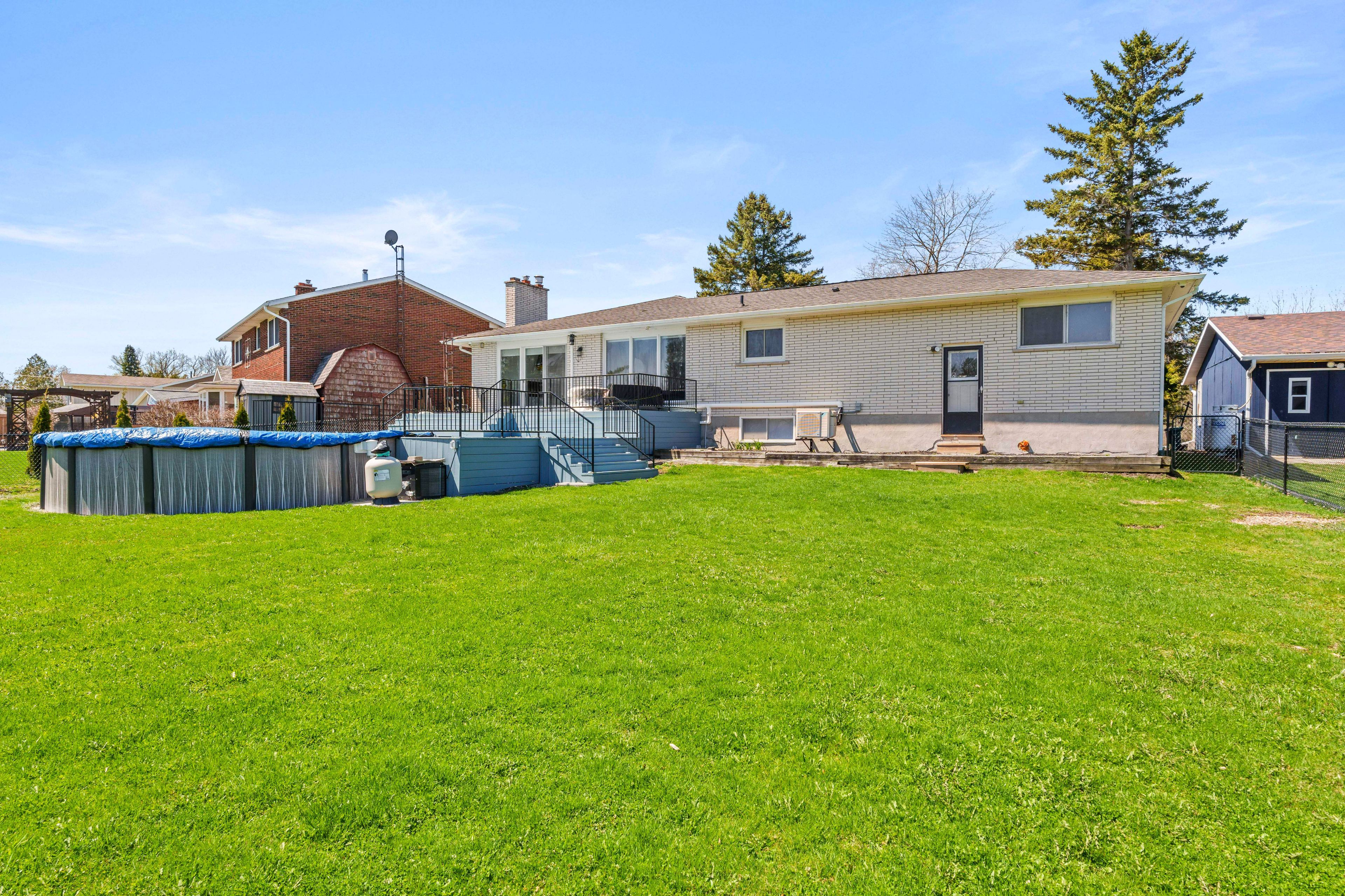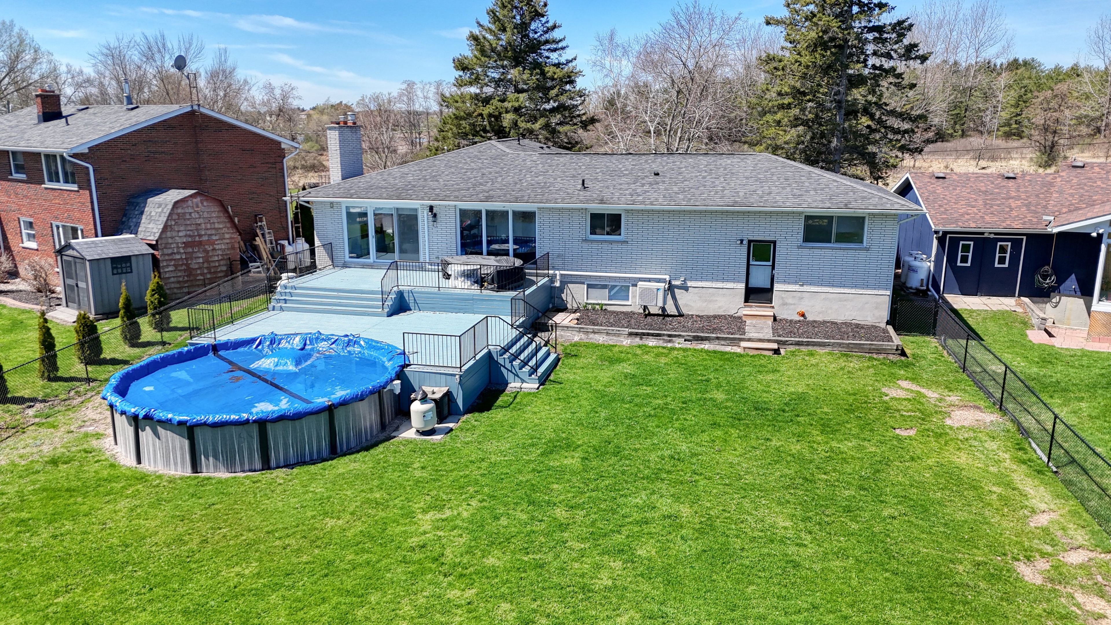 • Private oasis with an above-ground pool and serene views.