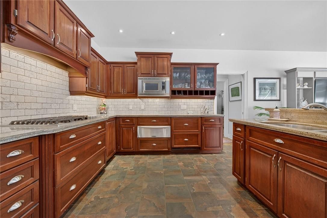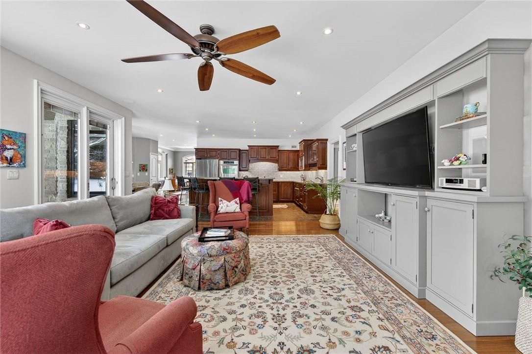 • Open-concept kitchen with high-end appliances and designer finishes.