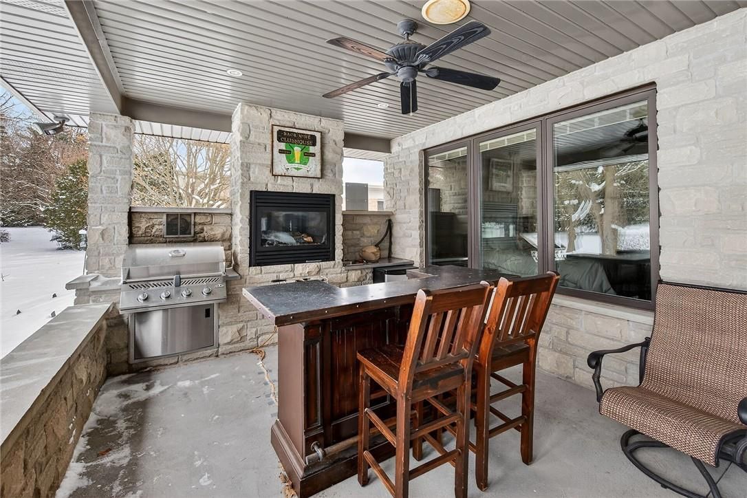 • Spacious outdoor entertainment area with kitchen and fireplace overlooking the golf course.