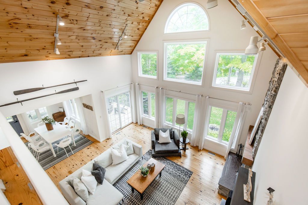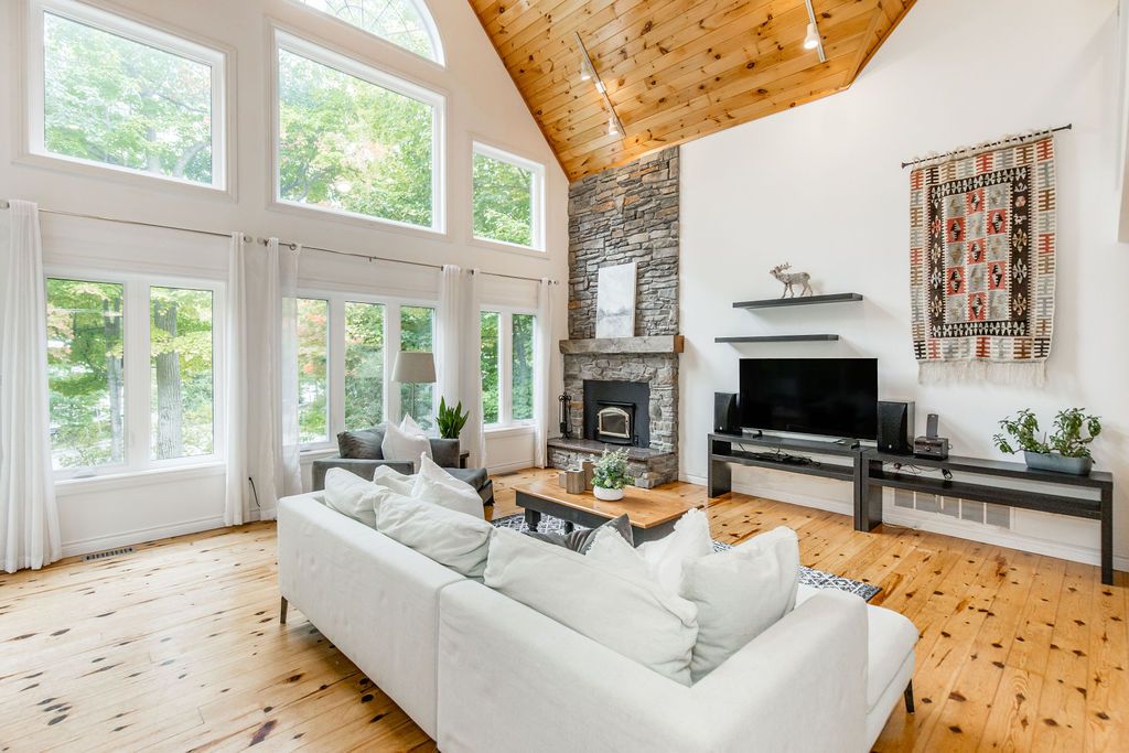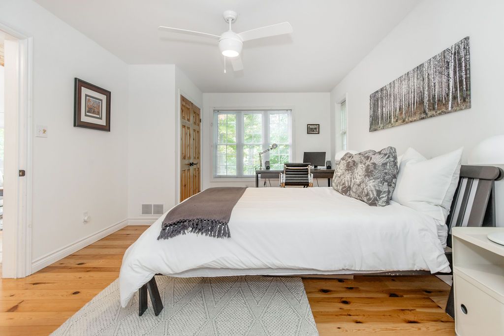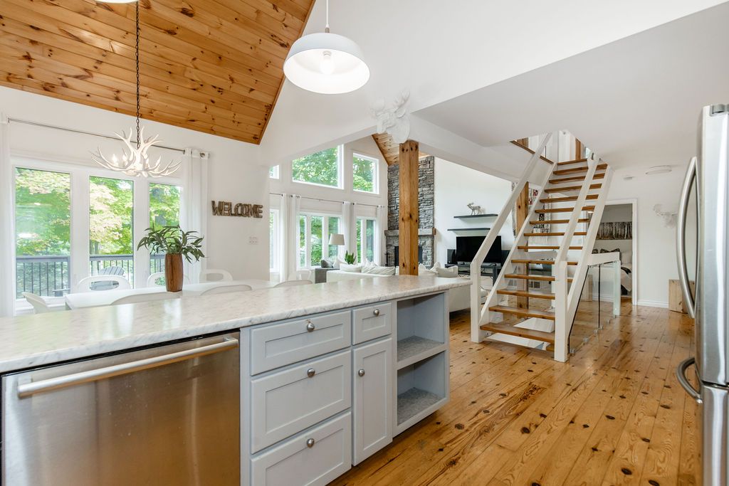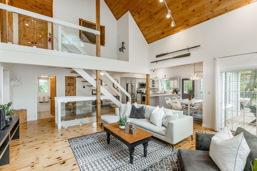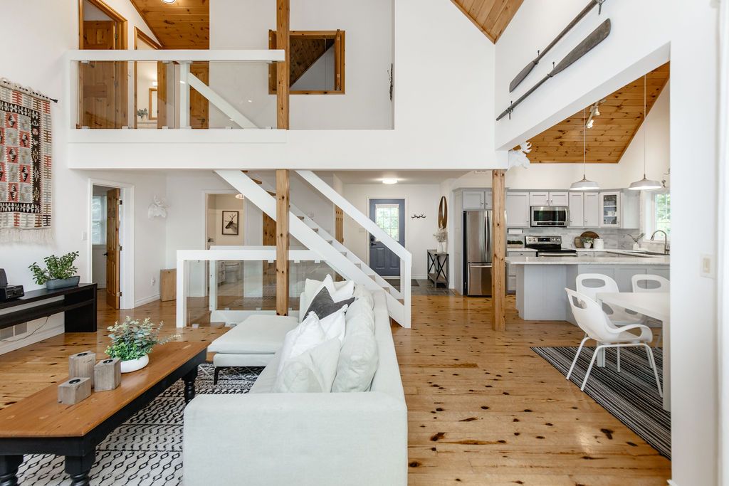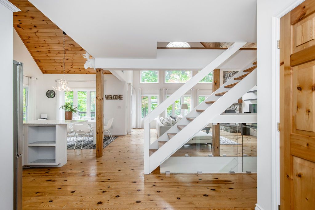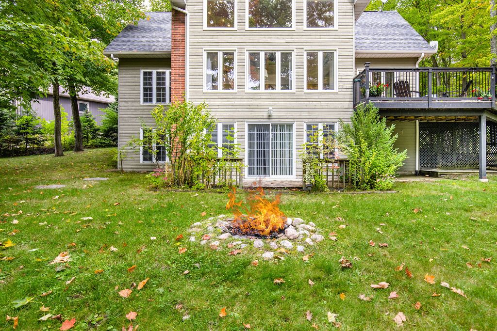 Short term rental licensed*** investment opportunity + enjoy cottage life- best of both worlds with this impressive 3-bedroom (+ 2 additional offices/den), 3-full-bath waterview home just steps from the white sandy shores of georgian bay, offering panoramic views of the bay and the blue mountains with unforgettable sunsets from your deck. Set on a private, mature 100' tree-lined lot in the picturesque township of tiny, this property offers authentic cottage character with modern, turnkey details. The main living area soars with vaulted pine ceilings and rustic wood flooring, anchored by a dramatic floor-to-ceiling stone fireplace, the perfect focal point for family gatherings. An open-concept kitchen with stainless steel appliances flows effortlessly into a large dining room designed for big dinners and holiday memories. A main-floor primary bedroom with office and convenient main-level living make day-to-day life easy; the second-floor primary bedroom features vaulted ceilings and double closets for generous storage and your primary suite. The home also offers a walk-out lower level with a separate living space, private entrance and in-home laundry, ideal as an in-law suite or additional rental unit. Modern touches like glass railing on the stairs, ev charger and new decks complete the package. Licensed for short term rentals, this 2,703+ total finished sq. Ft. Home is a rare combination of lifestyle, flexibility and income potential- bring the family, host guests, or try it before you buy. Reach out for financials for rental income. Comes fully furnished. Don't miss this rare opportunity.