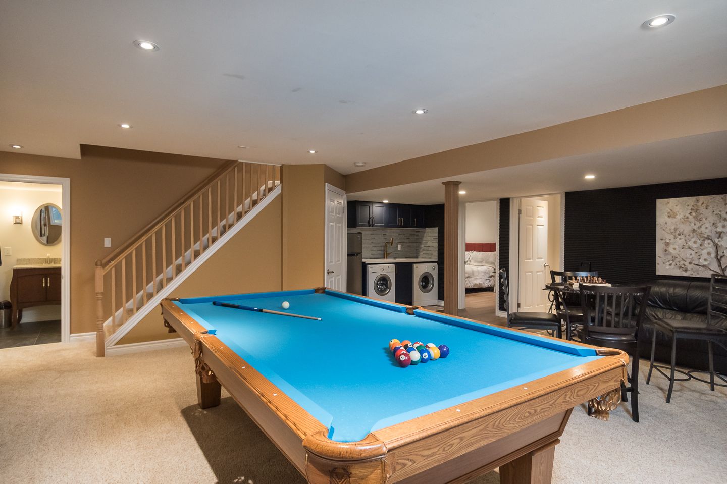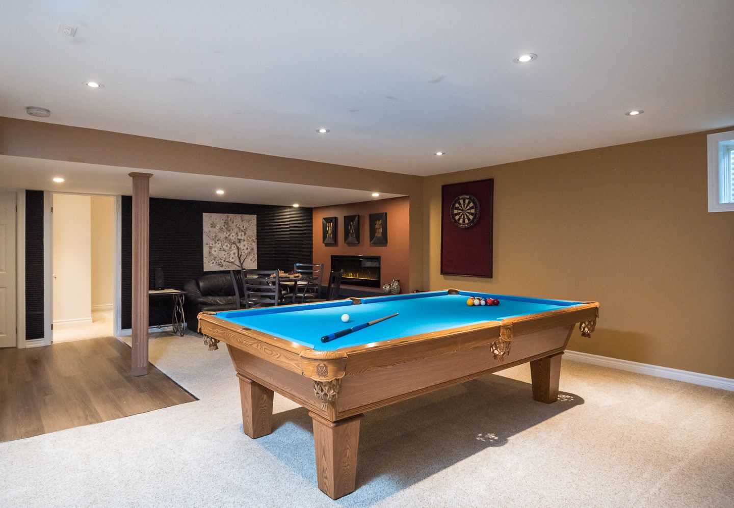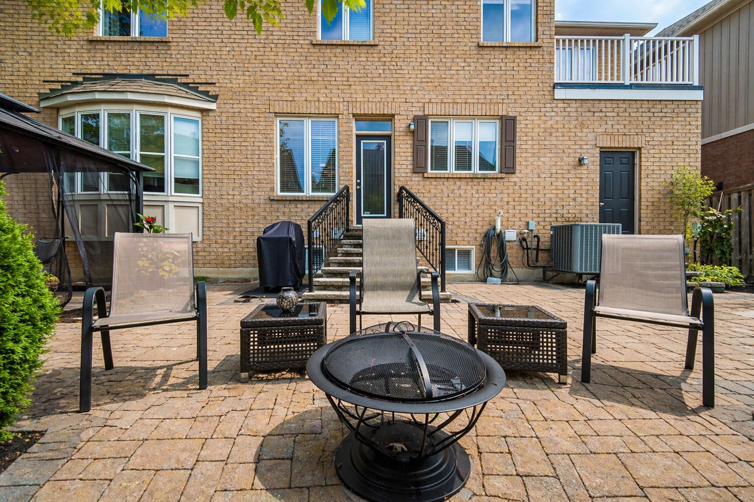 • Finished basement offers extra living space with a wet bar and fireplace.