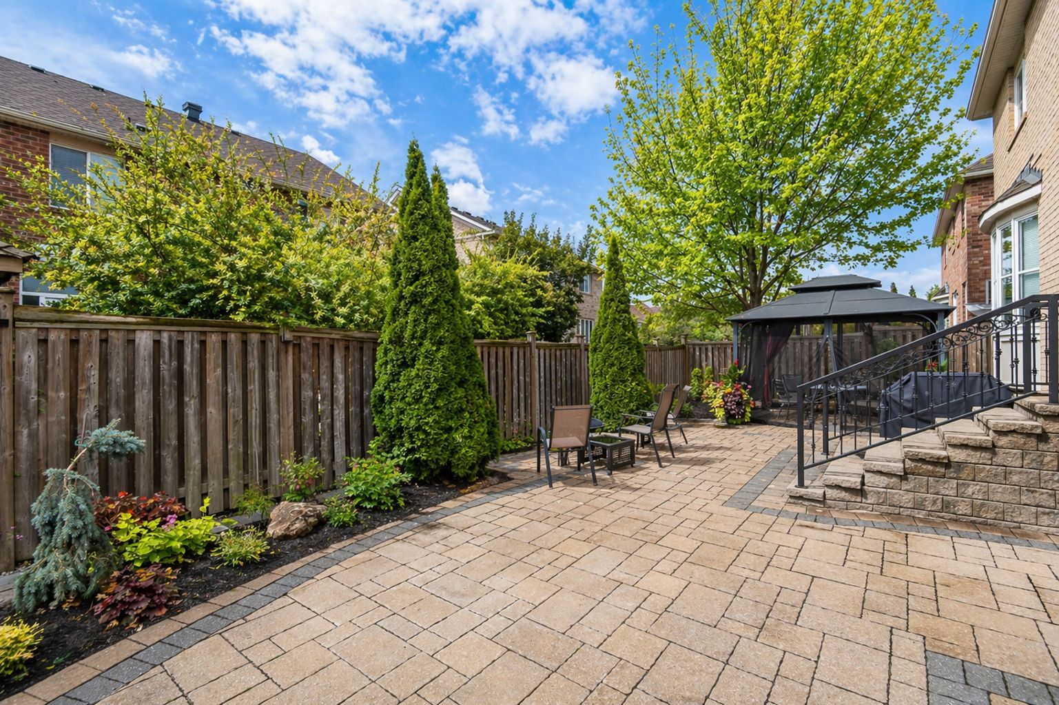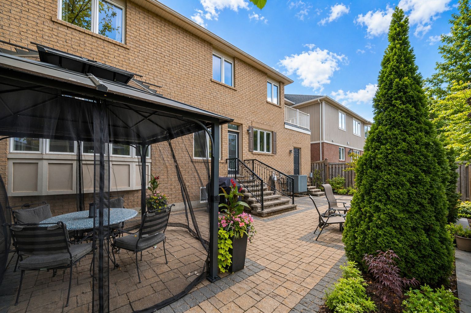 • Private backyard with hardscaping and gardens perfect for entertaining.