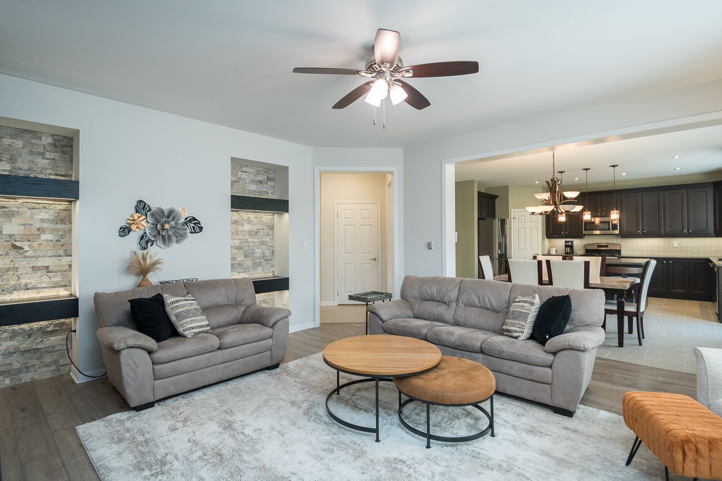 Welcome to this stunning detached 5+2 bedroom, 5-bathroom home located in the highly desirable coates neighbourhood, known for its excellent schools, family-friendly parks, and easy access to amenities. Boasting parking for up to 7 vehicles (4 in the driveway and 3 in the garage), this home features a welcoming covered porch and a grand front foyer that sets the tone for the spacious layout throughout. The wide, private backyard is perfect for entertaining with hardscaping and beautiful perennial gardens, plus convenient garage access to both the mudroom and yard. The bright eat-in kitchen offers a large island with seating, rich dark cabinetry, a walk-in pantry, stainless steel appliances, and a gas cooktop, all overlooking the open-concept family room with custom built-in shelving. The formal living and dining rooms showcase luxury vinyl flooring, elegant wall features, and recessed lighting. Upstairs, find five comfortable bedrooms, including a primary suite retreat with a private balcony, 5-piece ensuite, and dual walk-in closets, along with jack-and-jill bathrooms, a powder room on the main floor, and convenient upper-level laundry. The finished basement expands the living space with two additional bedrooms, a 3-piece bath, a cozy sitting area with an electric fireplace, a wet bar, and extra laundry facilities-ideal for extended family or guests. This exceptional home blends functionality, comfort, and style in one perfect package. Roof - 2026