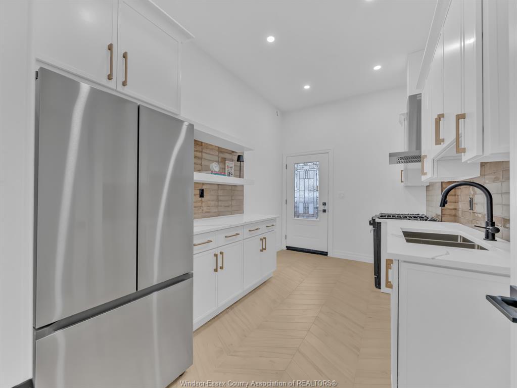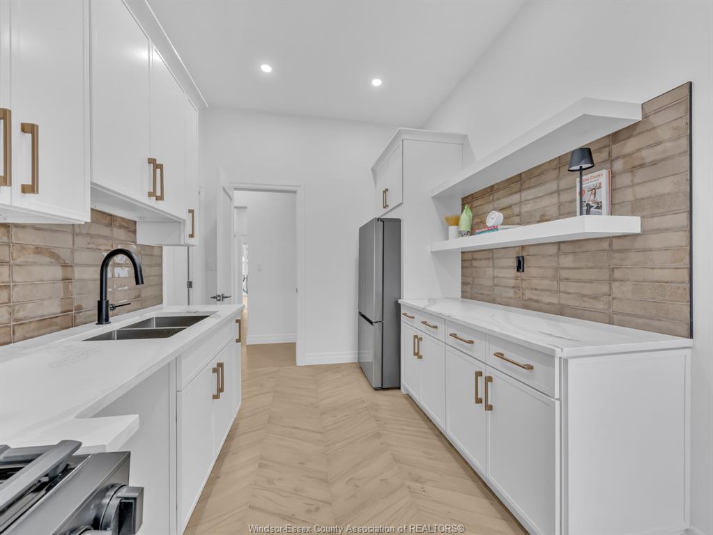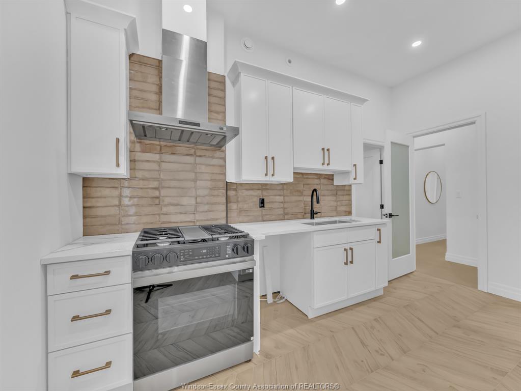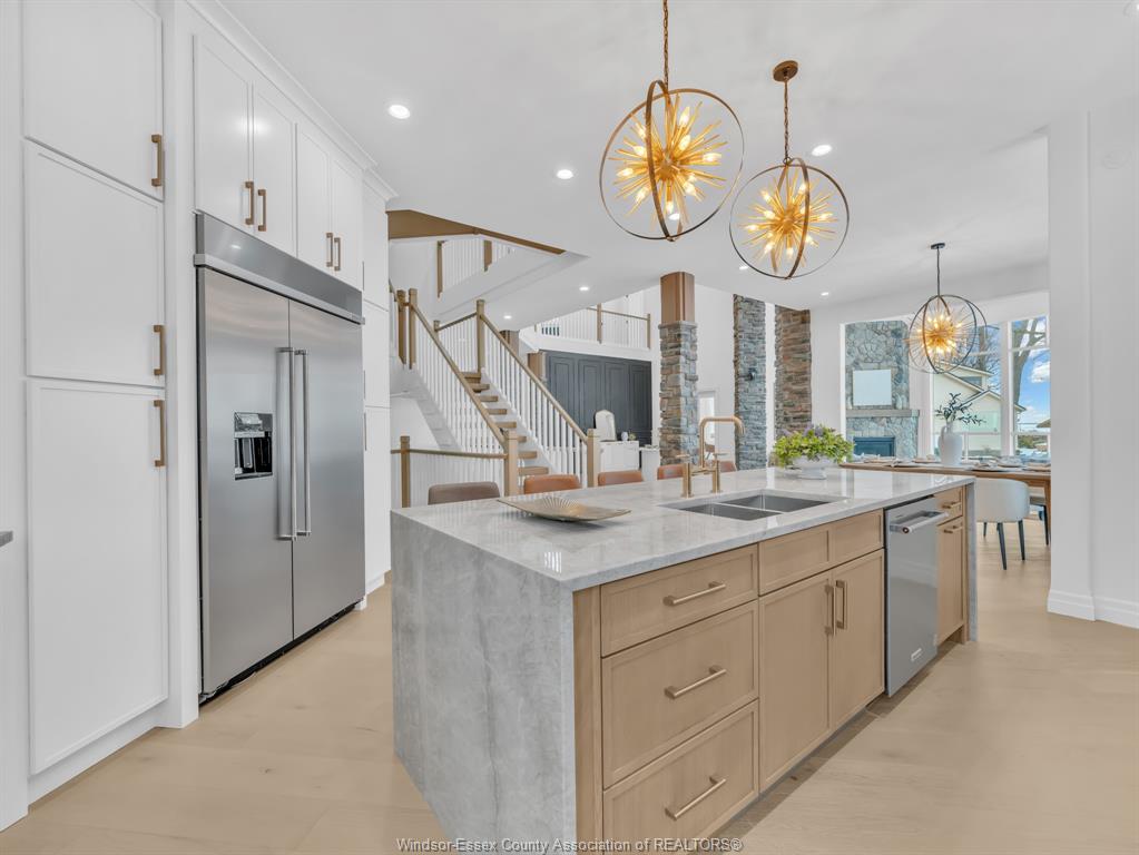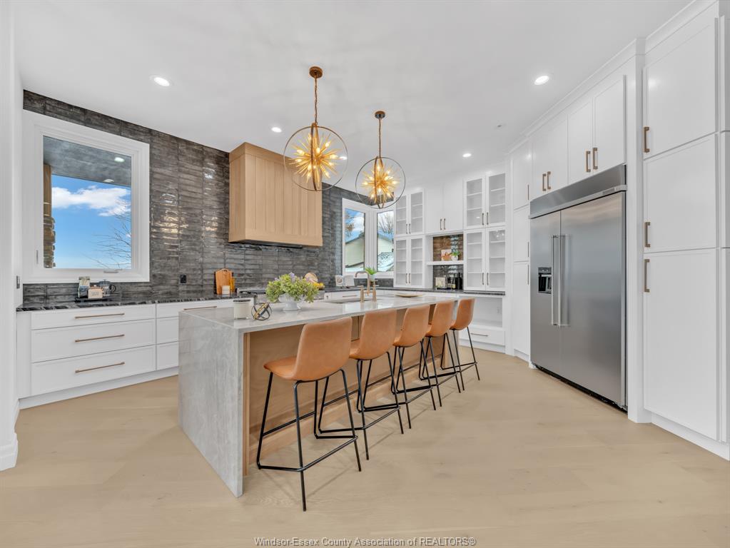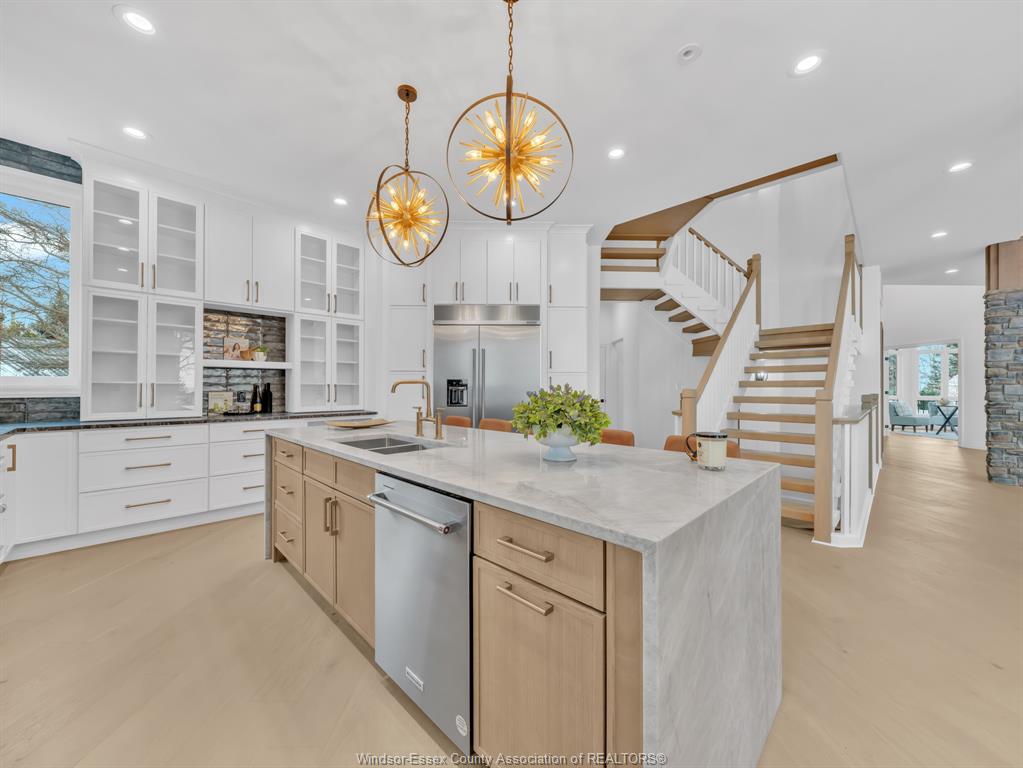 • Impressive chef's kitchen with high-end finishes and abundant lighting.