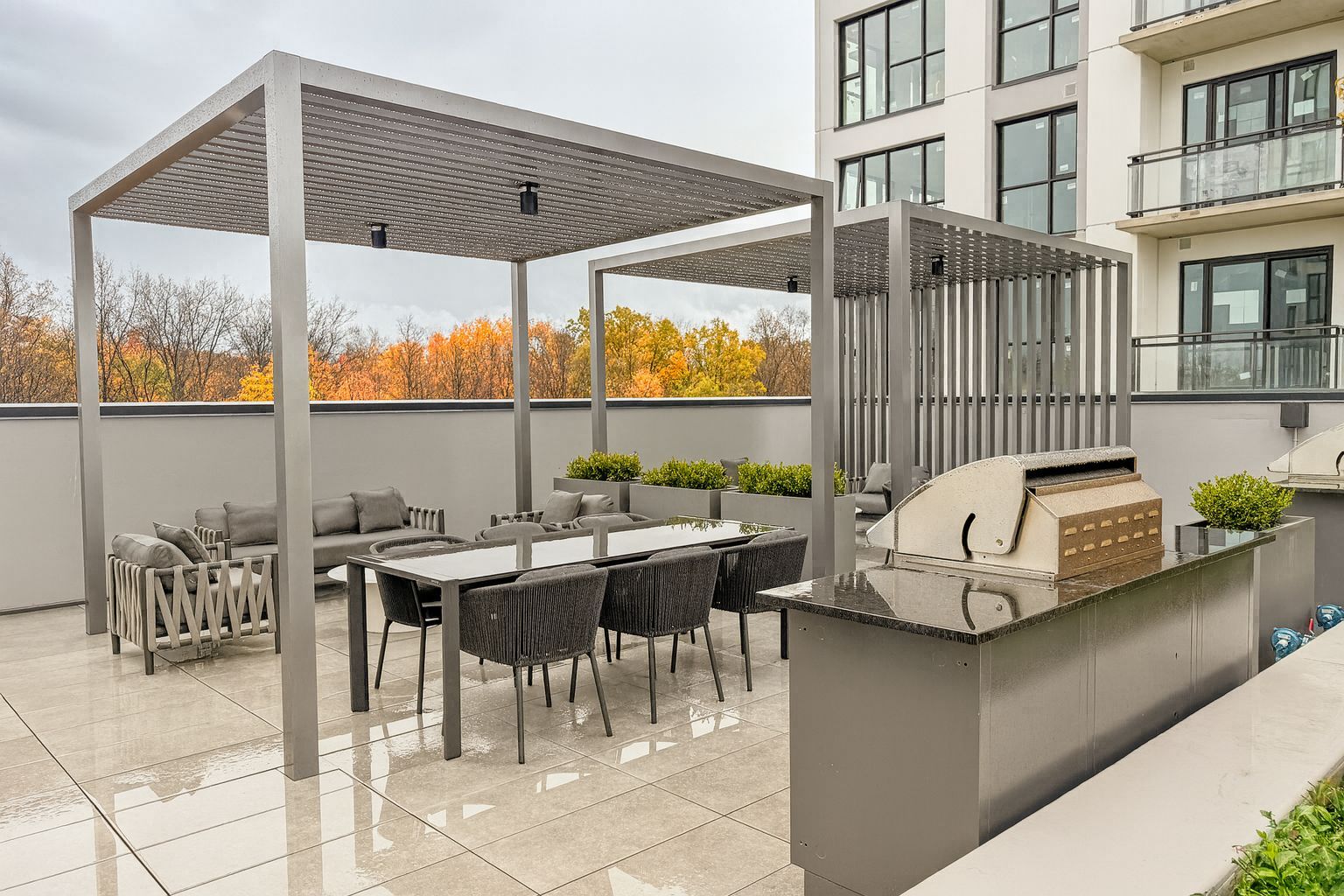 Experience upscale living - a modern haven designed for comfort and style! Enjoy bright, airy interiors with soaring 9' smooth ceilings, high-efficiency windows with roller shades, and sleek single-plank laminate floors throughout. The gourmet kitchen boasts quartz countertops, stainless steel appliances, and elegant finishes, while the spa-inspired bathroom offers porcelain tile and modern fixtures. Step out to your private balcony or terrace for fresh air and relaxation, and enjoy the convenience of in-suite laundry, smart thermostat climate control, and included parking and locker. Perfect for those seeking luxury, functionality, and a touch of sophistication in one of milton's most desirable communities!